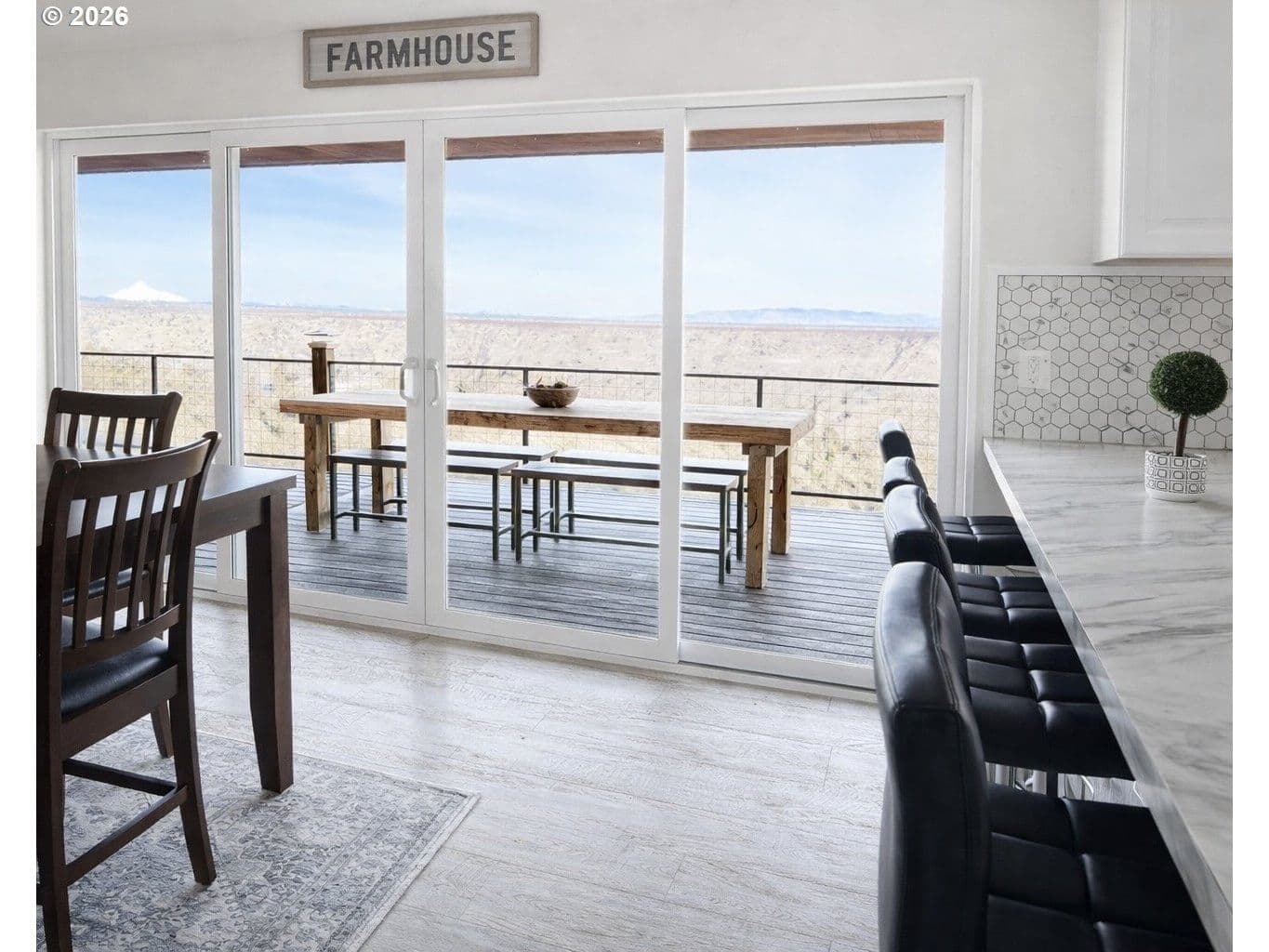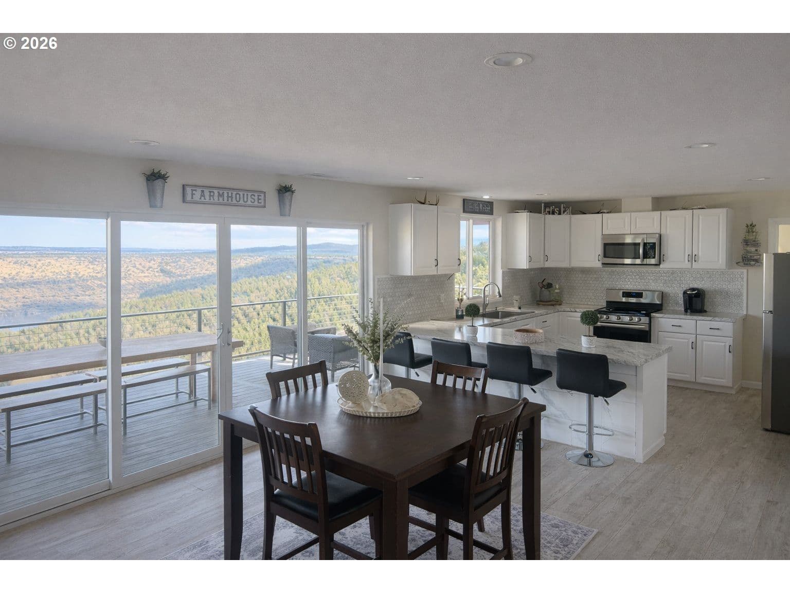 Rare and amazing Lake Billy Chinook views in this custom built home + Cascade Mtn. views as well. Main bldg. is a 50X64 = 3200sf full footprint w/2 full levels = 2700+sf living space. Home boasts 5 bedrooms, a great room, 2 full baths, (1 main floor & 1 upper floor), a flex room, an office, a huge home theater, spacious exercise/work-out room, laundry, enclosed storage, and mechanical room. Main floor has 12X40 covered concrete patio w/full mtn. & Lake views, upper level also has 12X40 covered deck w/custom railing & full expansive mtn. & Lake views. This truly unique property is gated w/a custom, steel gate system w/automatic open & close feature. Upper entry level of the property also has the original 30X30 pole barn w/ 2-roll-up doors, a man door, window & work bench plus a separate carport plus Mt. Jefferson views. This entry leads down to the lower level where the main building/living space home is located. Corral also has a state-of-the-art complete 48 volt solar system.The attached Amenities Sheets and actual MLS listing gives further info and room dimensions. This rare opportunity is totally move-in ready so contact your favorite real estate agent to make an appointment to view this one-of-a-kind opportunity.