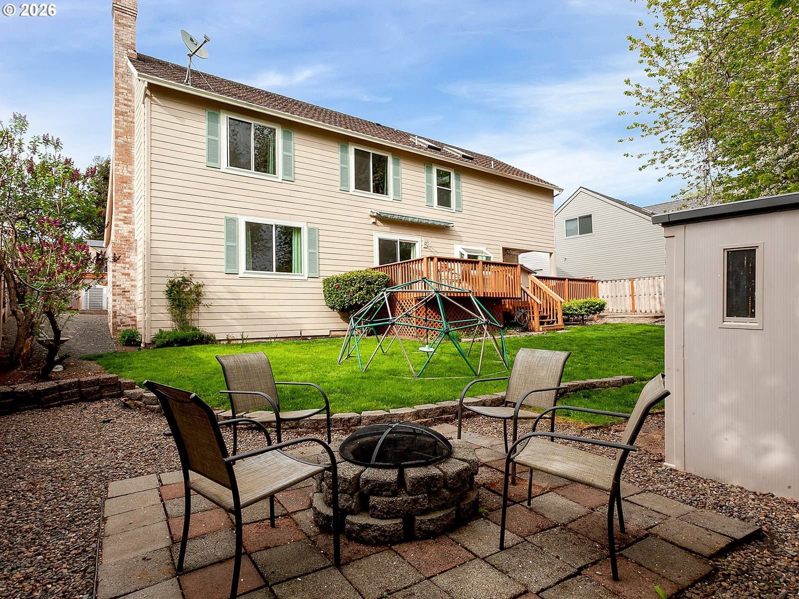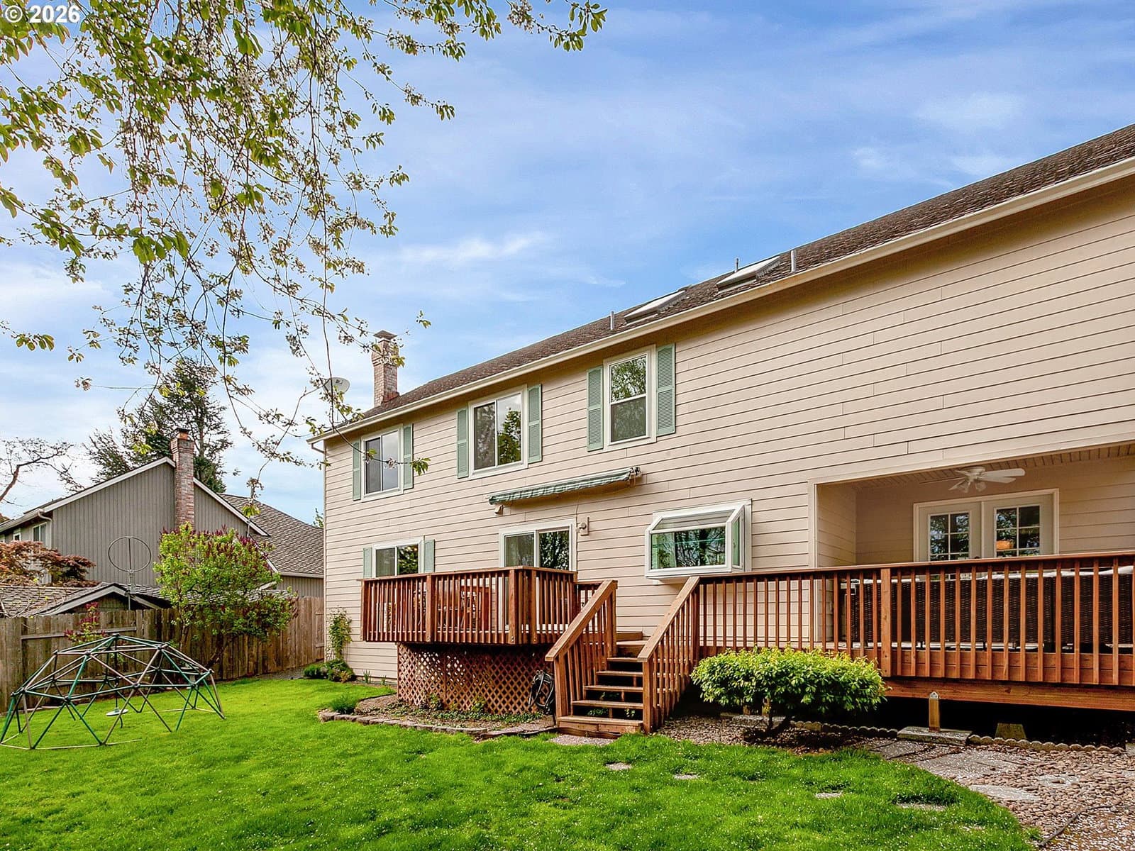 This spacious and light-filled home in West Linn’s Hidden Springs Ranch neighborhood offers more than 3,000 square feet of functional living space and an exceptional backyard setting with room to play, relax, and entertain. A dramatic two-story entry and vaulted ceilings create an open, welcoming feel, while multiple living areas provide flexibility for everyday living, gatherings, or working from home. The kitchen features an island, walk-in pantry, coffee bar, and a bright breakfast nook with a slider that opens to a large deck and fully fenced, usable backyard, creating a seamless connection to outdoor living. The primary suite offers generous space, a walk-in closet, and an ensuite bath with soaking tub, skylight, double sinks, and updated flooring. Positioned on one side of the home for added separation, the additional bedrooms are located down a long hallway on the opposite side, offering privacy and flexibility. A fourth bedroom or large bonus room provides ideal space for a media room, playroom, or guest suite. Abundant storage includes a walk-in storage room upstairs, a backyard shed, and ample closet space throughout. Optional membership to Hidden Springs Recreation Association offers access to a neighborhood pool and tennis courts. Located within the highly regarded West Linn-Wilsonville School District with convenient access to parks, trails, shopping, and dining. Optional membership available to Hidden Springs Recreation Association, offering access to community pool and tennis courts. Membership is separate from property ownership, subject to availability, and buyer to verify.