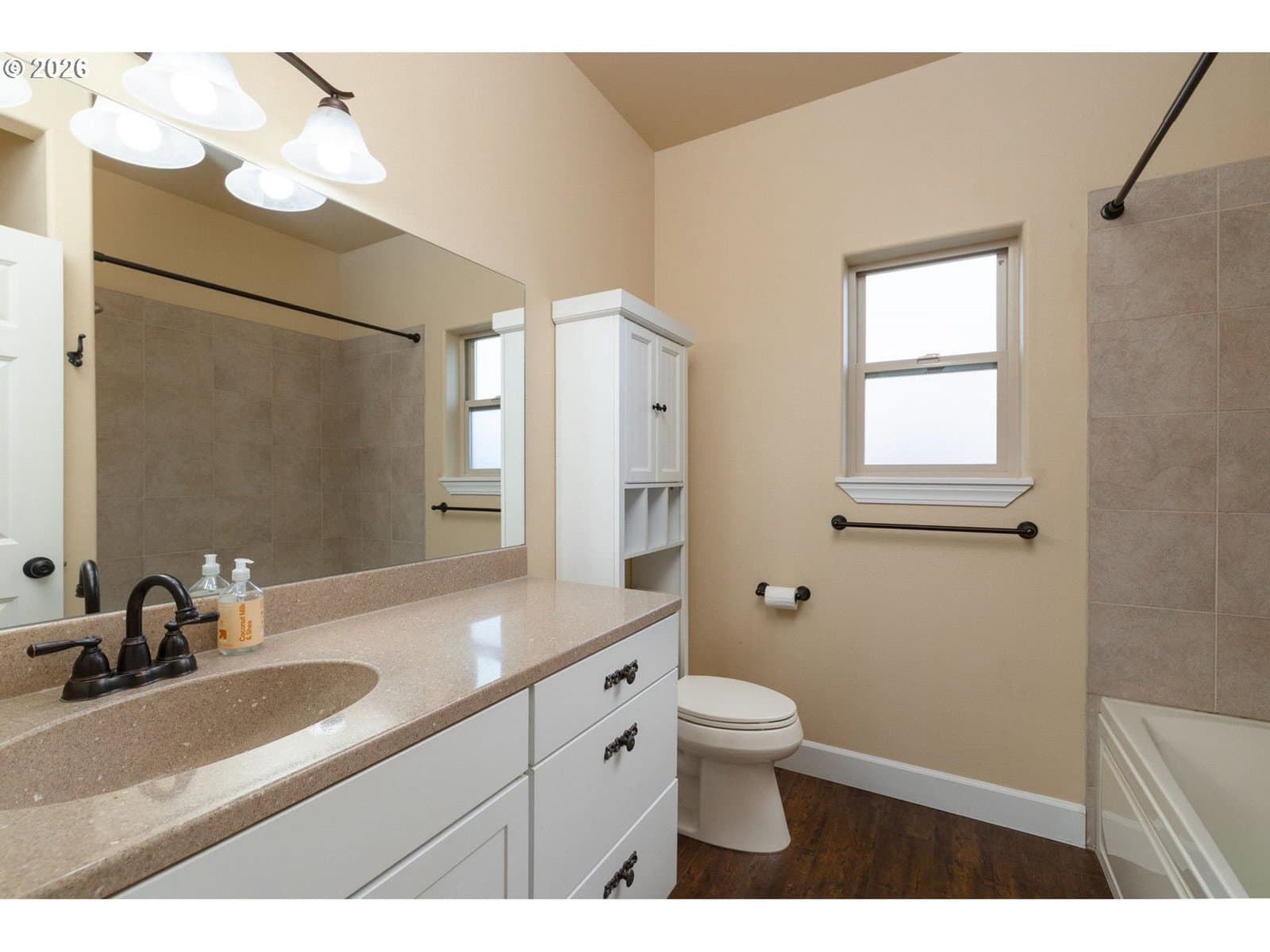 This thoughtfully updated single-level home sits on a generous half-acre in desirable SE Bend and truly checks every box. The open floor plan includes a great room that is airy and welcoming, with vaulted ceilings, a river-rock gas fireplace, gorgeous luxury laminate floors, and French doors that open to the back deck for easy indoor-outdoor living. The gourmet kitchen features a large island with a breakfast bar, farmhouse sink, beautiful custom cabinetry, built-in pantry, soft-close drawers and doors, stainless appliances and Silestone slab countertops. There's a versatile bonus room that's perfect for entertaining, working from home, or a guest room. The spacious primary suite is a relaxing retreat with dual vanities, slate walk-in shower, soaking tub, a walk-in closet and a private door to the deck. Two more bedrooms, a full guest bath, half bath and laundry room with sink complete the interior. Outside, enjoy the private backyard complete with a large deck, mature landscaping, and a fully fenced yard. The property also offers RV and boat parking with 30-amp power and sewer hookup, room for a future shop or potential ADU, and a 3-car attached garage. Recent upgrades include a new roof, exterior paint and lighting, new carpet and fresh paint in bedrooms and office, updated ceiling fixtures, a refreshed half bath vanity, mirror and lighting, a new front door and storm door, and even a custom outdoor catio. All of this in a convenient location close to schools, parks, shopping, dining, and endless recreation. [Home Energy Score = 5. HES Report at https://rpt.greenbuildingregistry.com/hes/OR10245084]