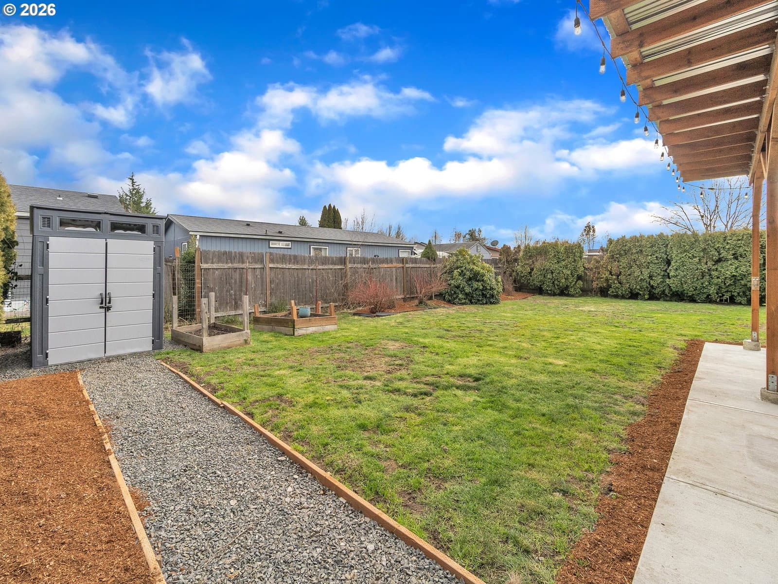 This fresh and inviting one-level home offers easy, comfortable living, with mornings spent on the new covered back patio, working in the raised garden beds, or gathering with friends in the spacious backyard, where there is room to relax, play, or expand. Fresh interior and exterior paint, painted white cabinets, updated lighting, and all-new appliances give the home a bright, move-in-ready feel. A large utility room provides great functionality with a full-sized pantry, plenty of storage, and an included washer/dryer. The oversized bathroom with a step-in shower also includes extra built-in storage. Perfectly located in McMinnville, a community known for its friendly feel and lively downtown, you can enjoy twinkle-lit evenings on 3rd Street, farm-to-table dining, local shops, and nearby parks. Located just blocks from two of McMinnville’s best parks and minutes from Linfield University, the surrounding area offers a great mix of convenience and comfort. A great opportunity for investors, first-time buyers, or anyone seeking easy, low-maintenance living. With strong rental potential and an affordable price of $399,500, this home is move-in ready.