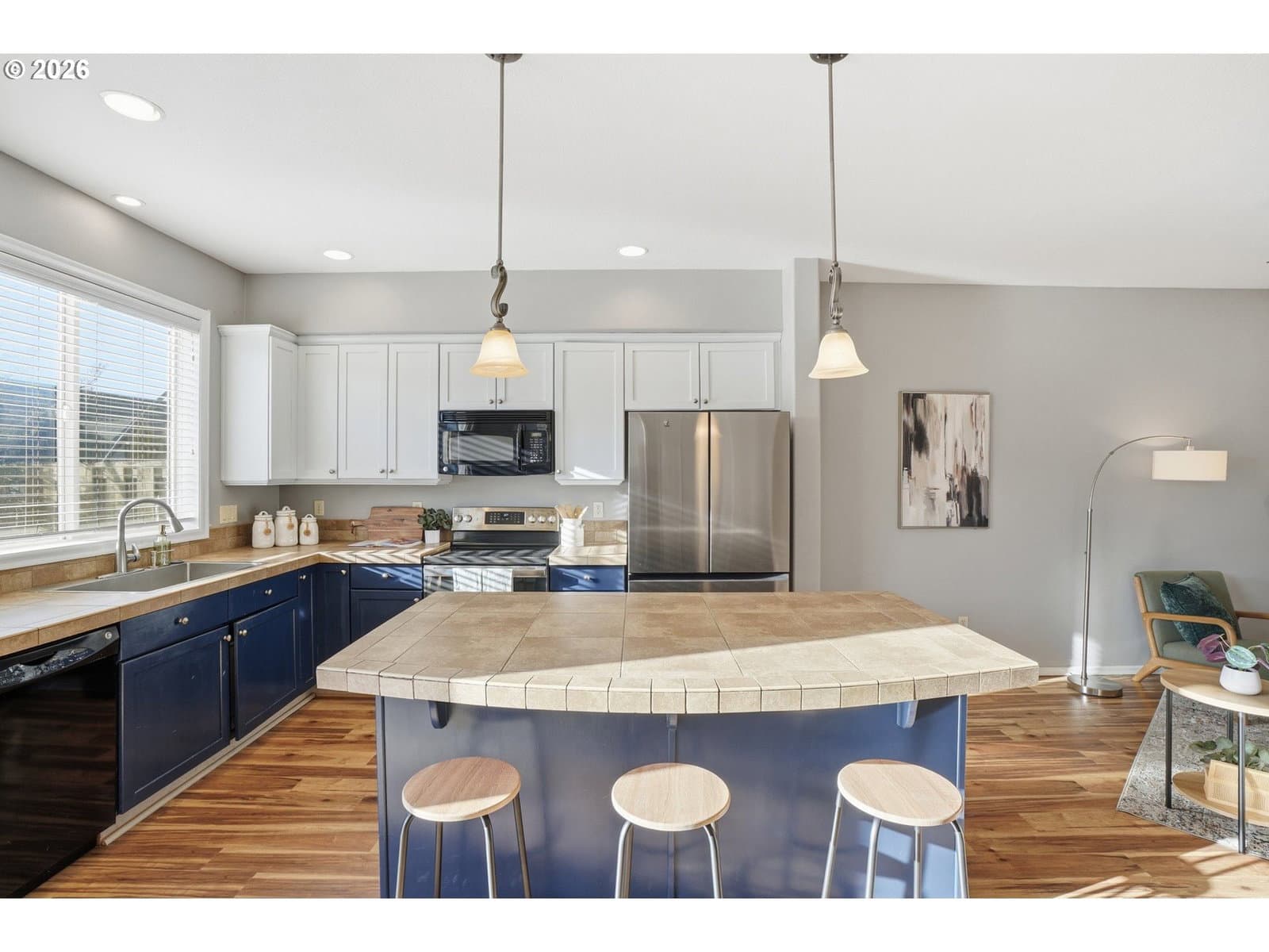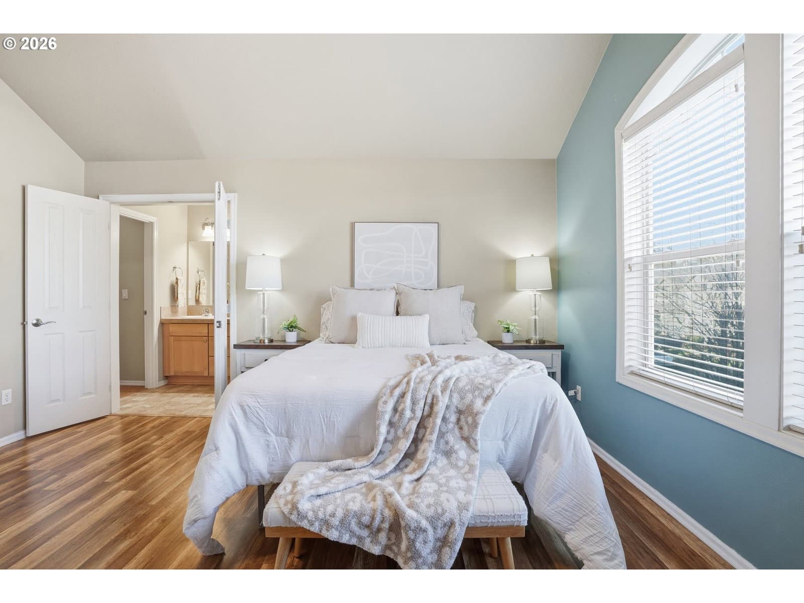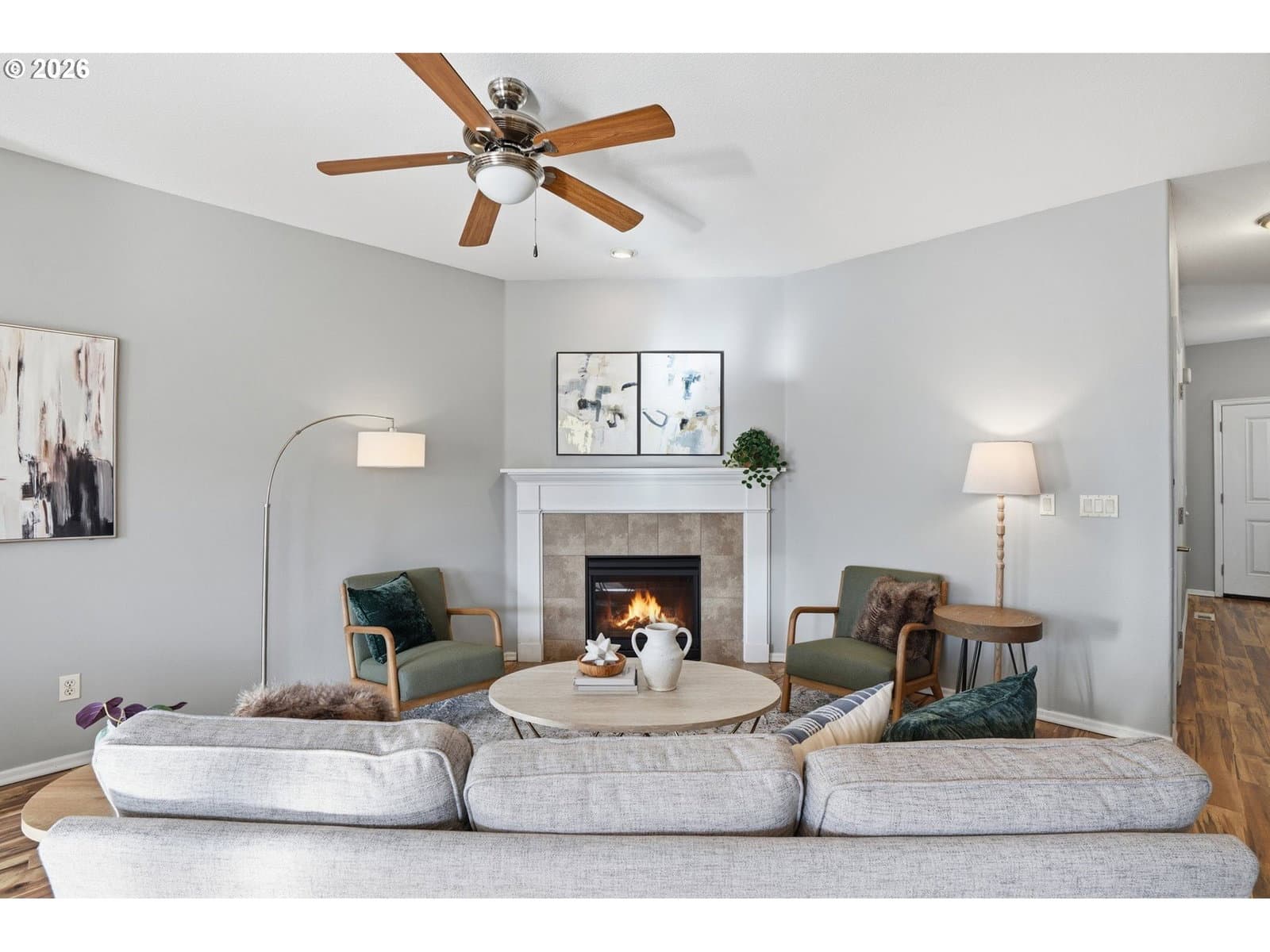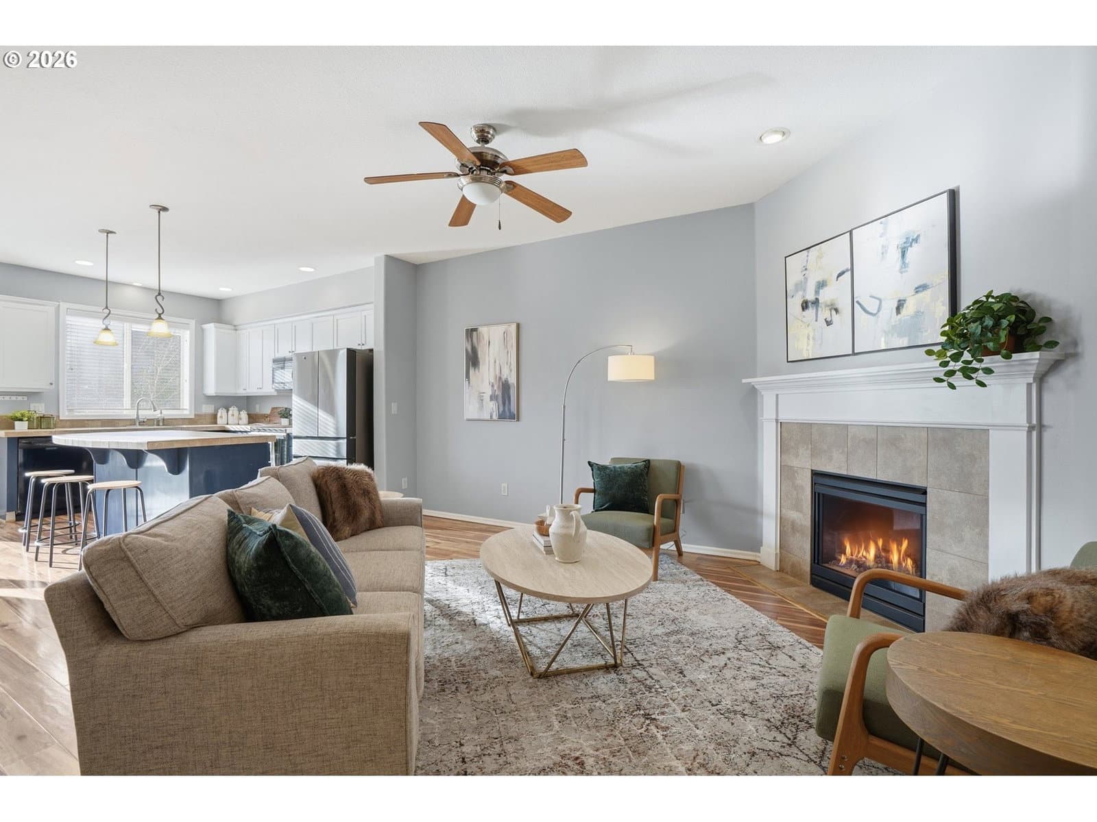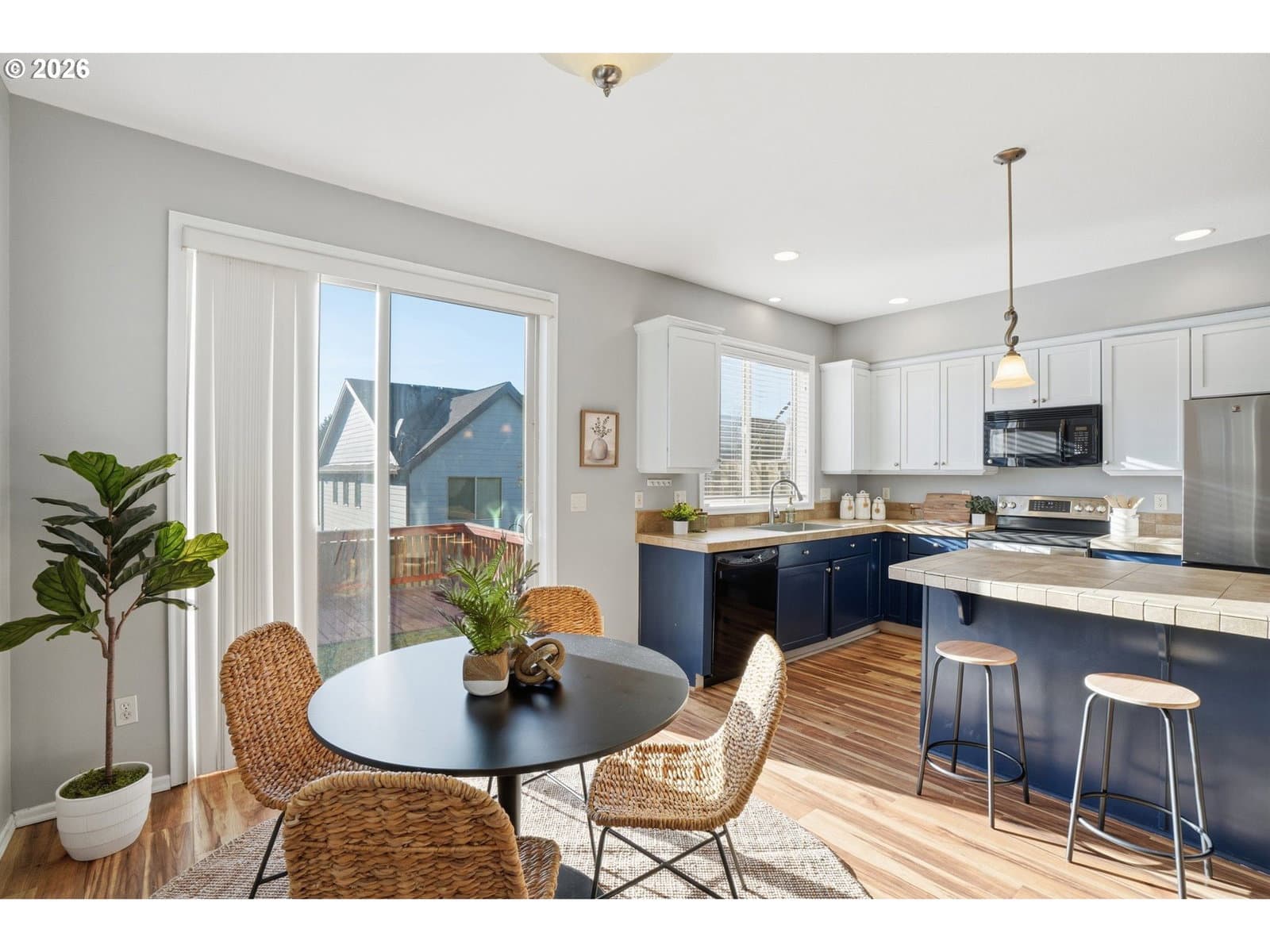 Beautifully updated end-unit townhome in the desirable Windswept Waters neighborhood.This light-filled home features an open-concept layout with soaring ceilings, a spacious living room with a cozy gas fireplace, and an open kitchen complete with an eat-in bar and sunny breakfast nook; perfect for everyday living and entertaining.Upstairs, you’ll find a generous primary suite with an ensuite full bathroom and walk-in closet, two additional bedrooms, and a convenient same-floor laundry room.Step outside to a large deck, cozy outdoor fire pit, and turf grass for the ultimate in low-maintenance, high-function outdoor living. Enjoy neighborhood amenities including a dog park, plus an HOA that covers exterior maintenance, front yard care, and more.