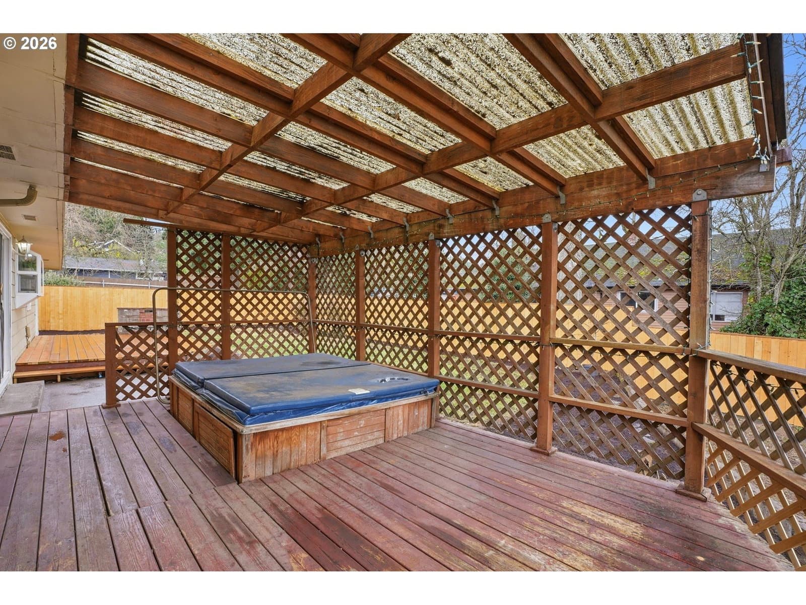 Well-maintained home with a functional layout and modern updates throughout. The living room features a wood-burning fireplace and bamboo floors that continue through the home. Fresh interior paint and double-pane vinyl windows provide a bright, clean feel with ample natural light.The kitchen includes stainless steel appliances, a garden window over the sink, and a dining nook just off the kitchen. The primary bedroom has sliding doors to one of the backyard decks with a built-in hot tub. Full bathroom includes a tub and tiled shower, plus an additional half bath is located off the laundry room.The brand-new backyard deck features a built-in grill, and the fully fenced yard is ideal for pets. Additional highlights include an attached two-car garage and an incredibly convenient location just 0.3 miles from McLoughlin Blvd with easy access to restaurants, bars, grocery stores, and big-box retailers.