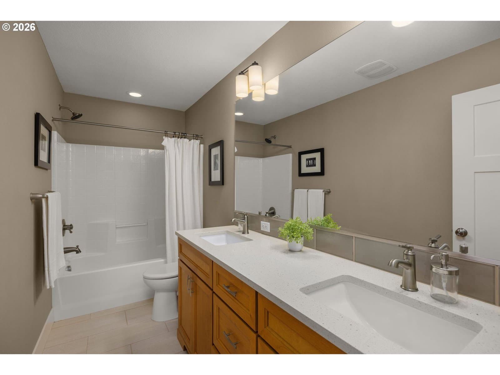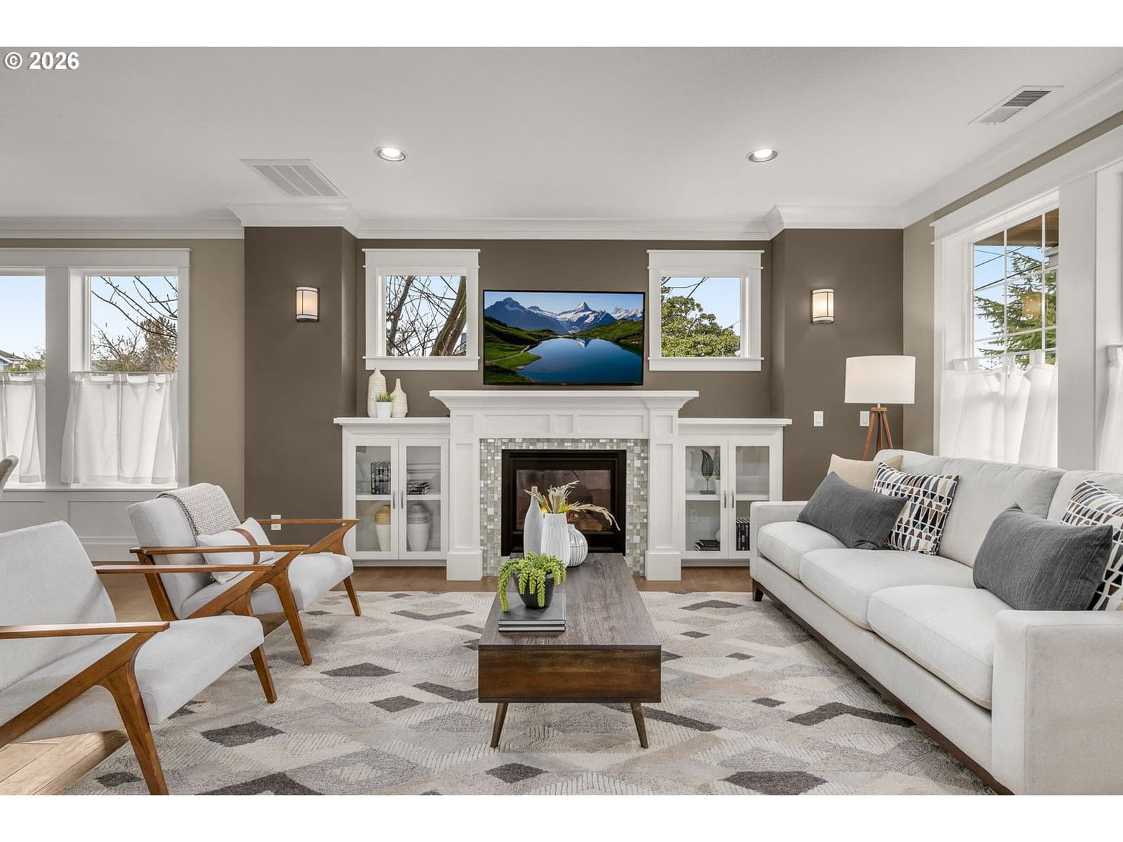 Every detail is perfect in this like-new Craftsman by Royal Custom Homes. Designer paint and lots of light from three exposures in the great room, with gas fireplace, wide-plank birch floors, built-in cabinets, crown moldings and dining space with slider to deck. Custom kitchen features quartz countertops, beautiful tile backsplash, eating bar island and top- tier stainless steel appliances, including built-in microwave and Bosch gas range. Separate laundry room with pantry. Vaulted primary suite features cozy electric fireplace, segmented bath with double vanity and walk-in closet. Home energy score is 10 out of 10! Tankless gas hot water heater in addition to solar panels (owned, not financed). No common wall! One-inch of air space between properties and two 2x6 walls with insulation, two layers of drywall and one layer of plywood on each side for sound barrier and fire protection. This home is on a desirable corner lot and includes an oversized single garage and off-street parking, covered front porch and fully-fenced yard with covered patio and deck. Quiet, walkable neighborhood and a 99 bike score. Only one block to Northgate Park. [Home Energy Score = 10. HES Report at https://rpt.greenbuildingregistry.com/hes/OR10245114]