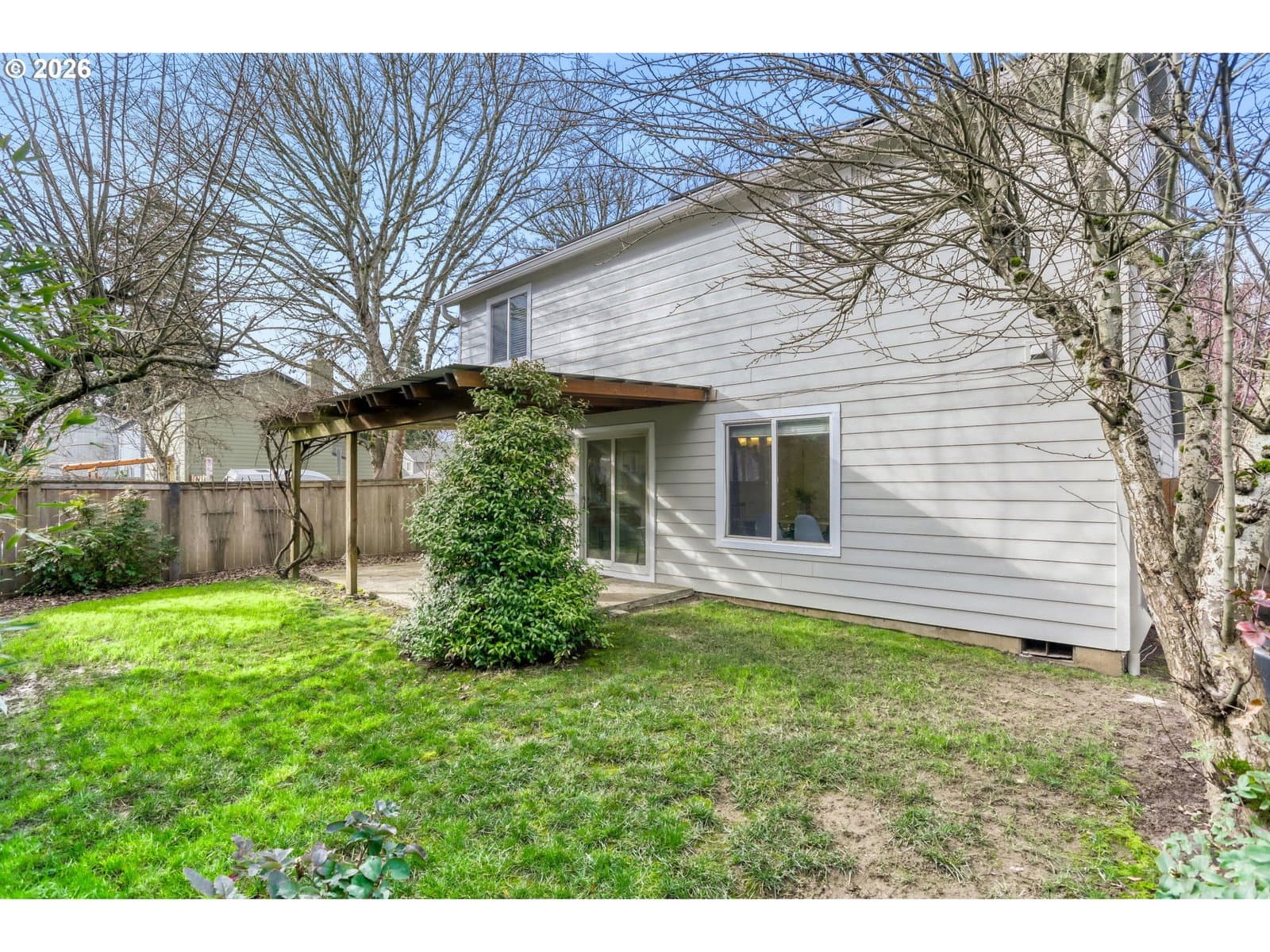 Welcome home to this charming, move-in ready, 2-story house situated on an expansive, treed corner lot in a quiet neighborhood. Thoughtfully updated and fresh interior and exterior paint throughout. Step through the welcoming entry way which opens to a light, spacious living area featuring a cozy, wood burning fireplace. The bright kitchen comes fully equipped (fridge included), and features a convenient eat-in bar. The kitchen area flows directly into the large dining room. This home is designed for easy indoor/outdoor entertaining with a slider from the dining room leading to the backyard. Upstairs, you’ll find the over-sized primary suite, perfectly designed for calm and relaxation with vaulted ceilings, extra seating area for a reading nook or desk space, large walk in closet and en suite bathroom complete with double sinks.There are two additional bedrooms upstairs along with a second full bathroom with lovely updates. In spring and summertime, the backyard truly blossoms. The large covered back patio provides a fun and private outdoor space ideal for relaxing, or entertaining year round! The fully fenced backyard is your oasis retreat, with its beautiful fruit trees (Asian pears and apple), planters with bamboo and the patio grape vine that provides welcome shade and delicious grapes during the summer months. You will love the tasteful updates and special features of this home, including luxury vinyl flooring (for a modern, clean look), air conditioning, energy efficient solar panels (owned), and a Tesla charger. Come see this wonderful home in person to truly appreciate all that it has to offer!