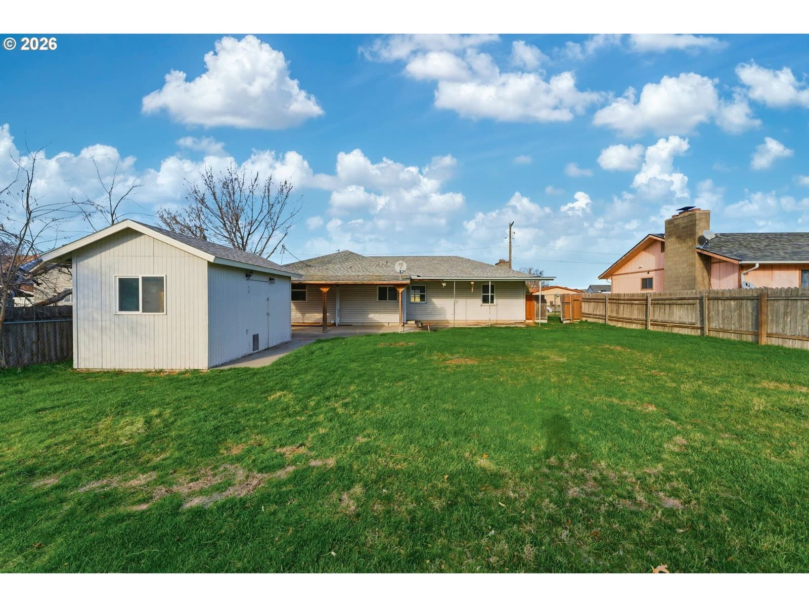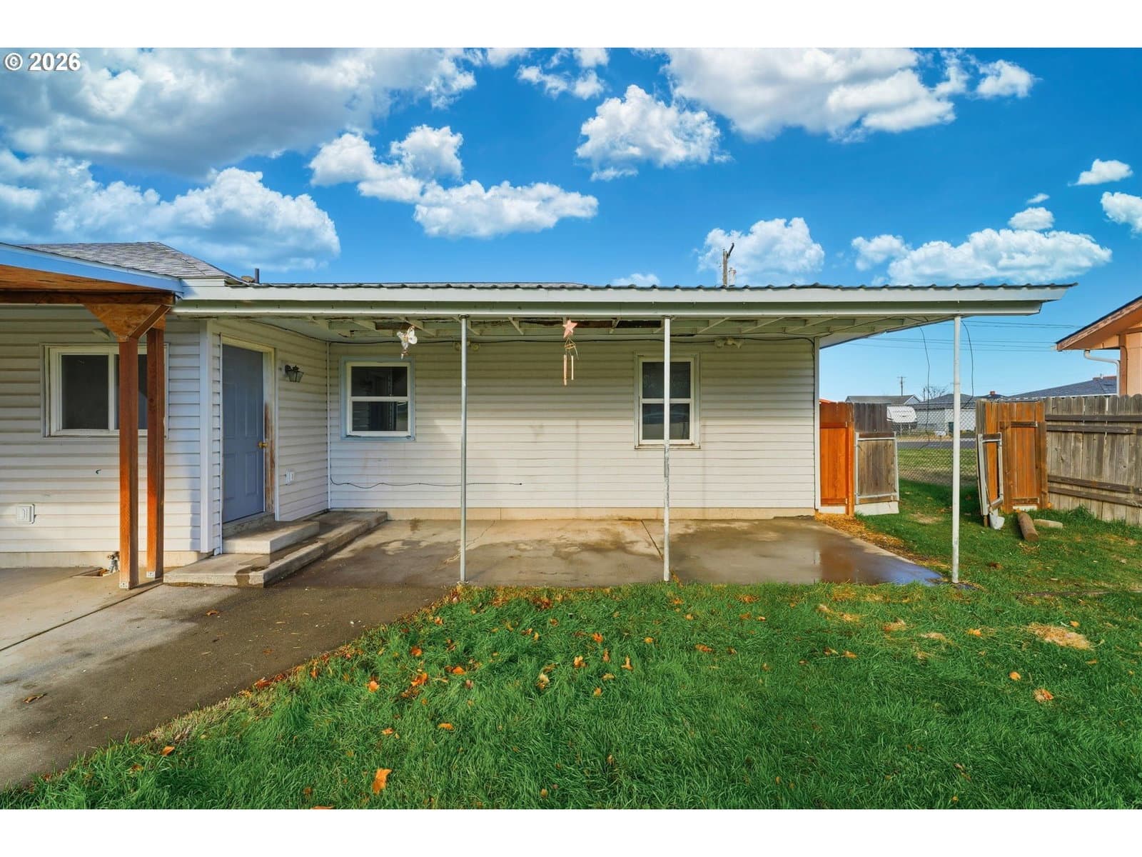 Spacious 3 bedroom home on a large fenced lot in the heart of Milton-Freewater. Totally refreshed with new interior paint, new carpet and vinyl plank flooring and a new bathroom. This sweet, cozy home is on a large fenced lot on a quiet street. All appliances included. This large lot allows room for gardening, play and entertainment. The two covered patios provide plenty of shade on our hot summer days. The outbuilding gives extra room for storage, woodworking or crafts. Close to schools, parks and shopping. Easy drive to Walla Walla or Pendleton.