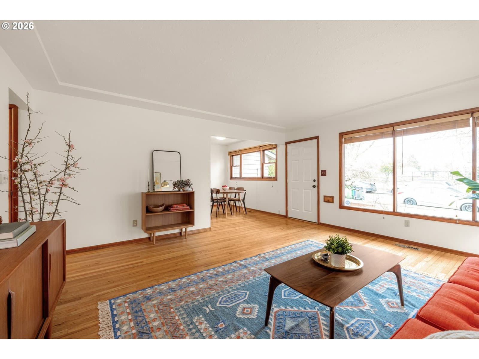 Spring is about to burst at this fabulous single level 3 bed + 1 bath mid century gem in desirable Montavilla. With large south facing windows, the living area is flooded with light. Hardwood floors, fresh interior paint and mid century details shine throughout. The kitchen, with charming original cabinetry, is open to the dining area, ready for entertaining. All appliances included. Three spacious bedrooms, all with double closets and new light fixtures. The attached garage is bursting with storage, with off street parking in the driveway. Oversized lot with fully fenced private backyard and large covered patio. Updates include gas furnace 2014, sewer 2017, panel 2018. Great rental opportunity - previously rented for $2,950. Bridger K-8 & Franklin High schools. Blocks away from Mt.Tabor park, Division St eateries, PCC, transit & more. Move in just in time to see the dogwood bloom. OPEN HOUSE Sat 3/7 11-1. [Home Energy Score = 3. HES Report at https://rpt.greenbuildingregistry.com/hes/OR10244306]