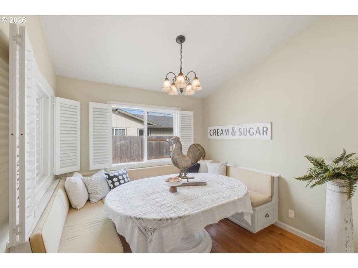 Beautiful remodeled 3 bd, 2 bath home, vaulted ceilings,oak hardwood floor throughout;kitchen features coffered ceiling w/copper tiles&pendulum lighting,Thor brand gas cooktop, built-in oven & micro,roomy dining knook. Beautiful irrigated landscaping w/cherry,apple,peach trees,roses,blueberries,strawgerries,2000 bulbs.Front yard,fenced w/front porch. Backyard features courtyard w/raised planters,arbor w/swing,composite decking surrounding hot tub,concrete RV parking w/water&power. Kennel area w/metal shed.