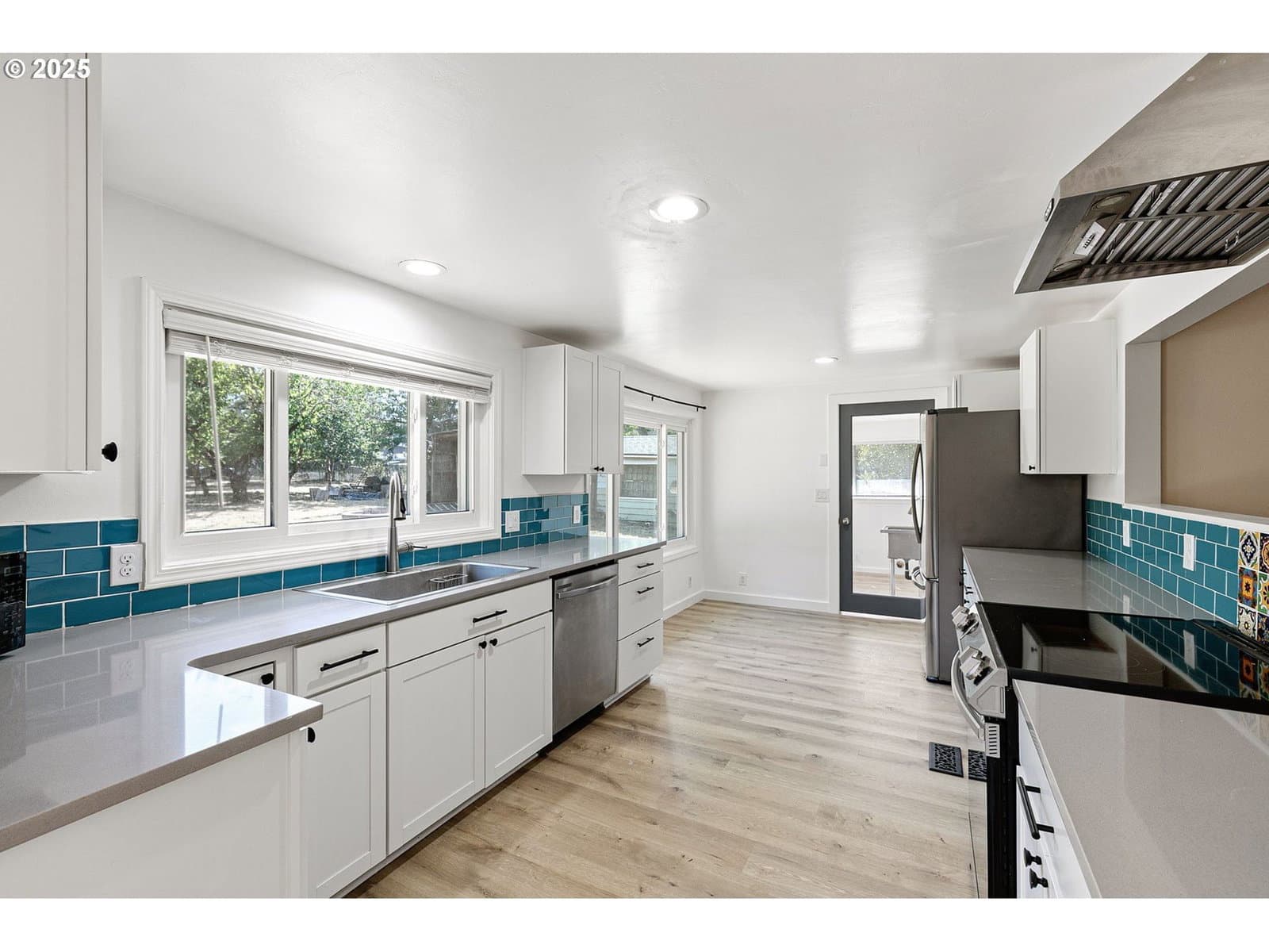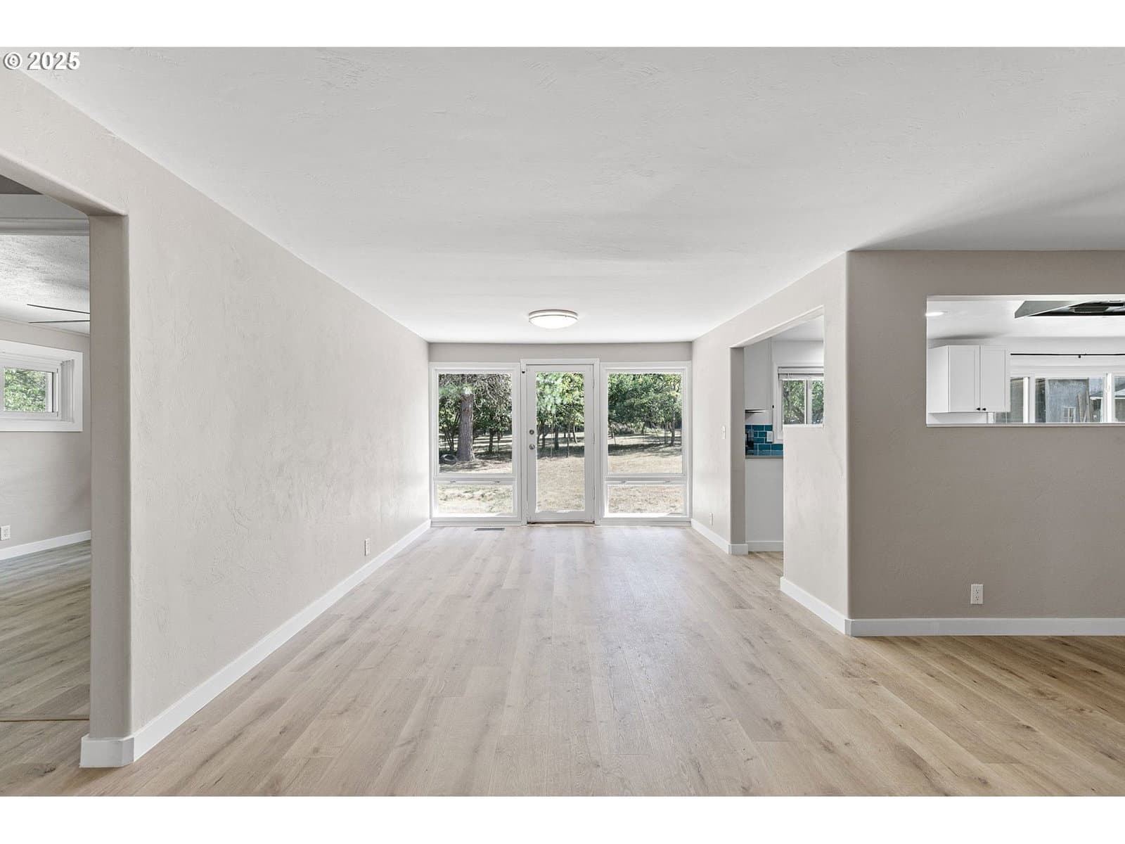 Back on market, no fault to home! Here is your chance to purchase this beautifully updated country retreat on a fully fenced and peaceful 2.48-acre lot. A brand-new front deck welcomes you to this charming 3-bedroom, 1-bath home, offering 1,880 sq ft of thoughtfully designed living space. Fresh paint, brand-new flooring, and new baseboards throughout create a bright and clean aesthetic from the moment you enter. The spacious living room has a cozy fireplace & opens seamlessly into the fully updated kitchen. Quartz countertops, sleek white cabinetry, stainless steel appliances, a deep stainless sink, and a bold blue tile backsplash create a modern yet warm space, rounded out with a pantry next to the refrigerator and views of the surrounding trees. Down the hall, you’ll find three comfortable bedrooms, each with ceiling fans and ample natural light streaming through vinyl windows. The bathroom features custom tile work, updated fixtures, and a stylish round mirror above a ceramic-tiled vanity. A large utility room includes a utility sink, space for laundry, and plenty of storage. The dining room features picturesque windows and access to your backyard. Step outside to enjoy everything this unique property has to offer. The acreage features a diverse orchard with apple, pear, plum, cherry, and fig trees. This land is perfect for gardening, harvesting, or simply enjoying the changing seasons. There is ample space for RV, boat, or vehicle parking, and a fire pit in the backyard makes for cozy gatherings under the stars. The partially converted garage is already plumbed for a bathroom, offering future potential or simply convert the space back in to a garage. The property is sub-dividable. Additional upgrades include a newer 1,000-gallon septic tank, newer well pump, updated plumbing, newer gutters & new roof. Solar panels help cut electrical costs to a minimum, and there is also a leased propane tank. Come view this turnkey property that is ready for its new owner!