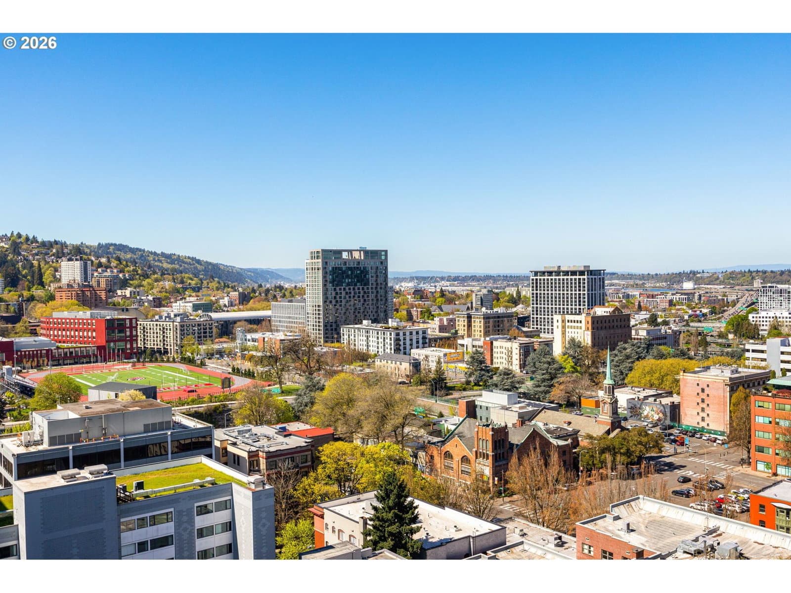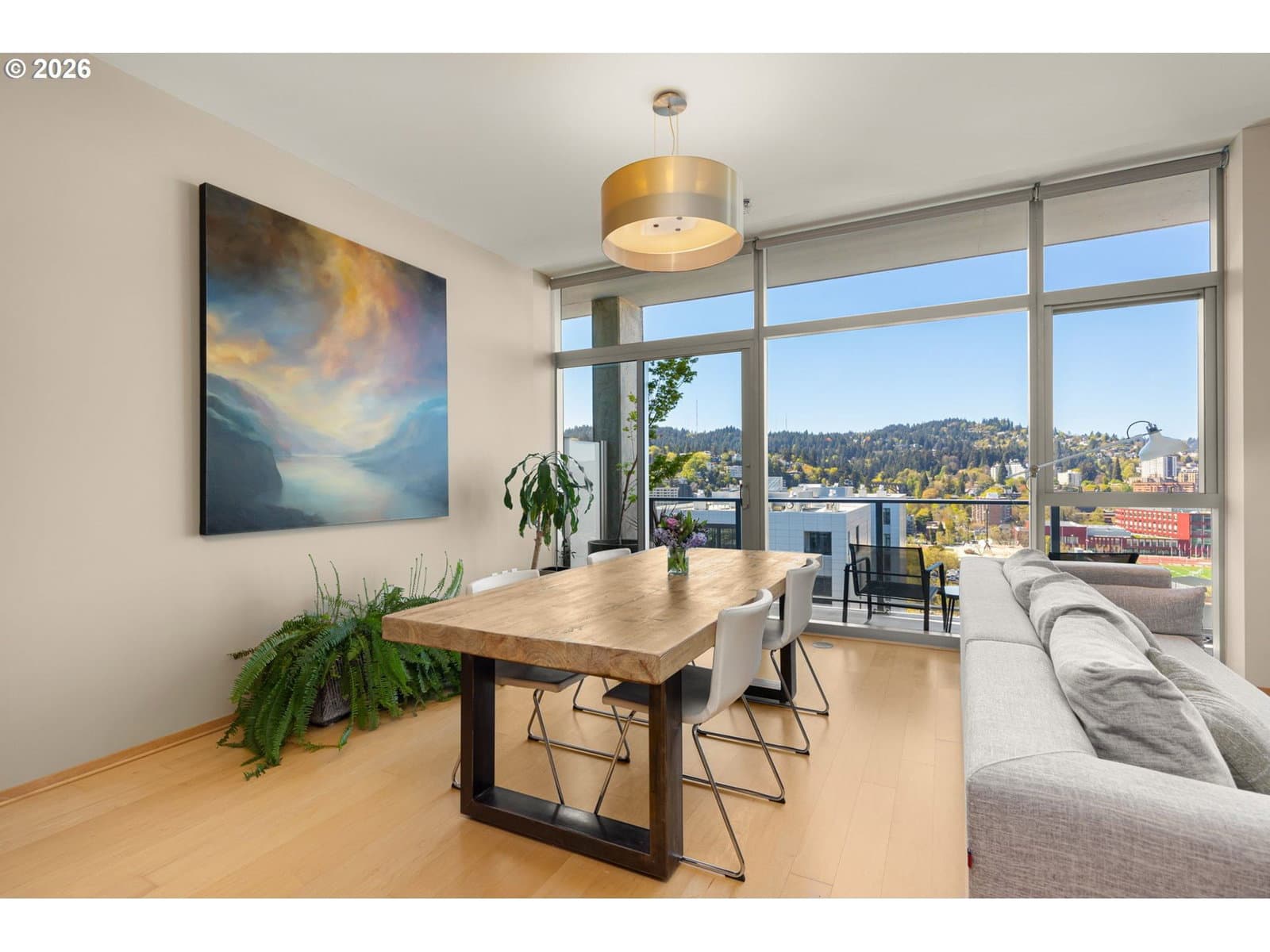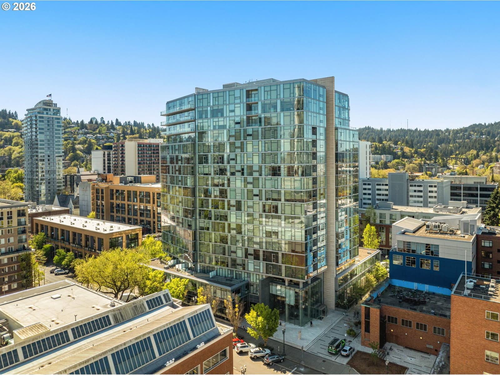 Enjoy spectacular views from Eliot 1706 - your own west facing penthouse in the sky. This home offers the ultimate in floorplan flexibility. It has a beautiful primary bedroom suite, and two additional bonus rooms that could be used as offices, or additional sleeping areas. The open concept floorplan features extra high ceilings, impressive walls of glass, and a 144sf covered patio with views of the city and west hills beyond. The kitchen has lots of storage, top of the line appliances, beautiful slab countertops with bar seating. Unmatched storage space in the unit, too, that makes downsizing easy! Top notch building amenities including a full time concierge, gym, library, meeting room, and community room / outdoor party space. A beautiful home in an ultimately convenient building - the park blocks, seasonal farmer's market, museum, and theaters are all nearby. Includes 2 parking spaces and 1 storage unit.