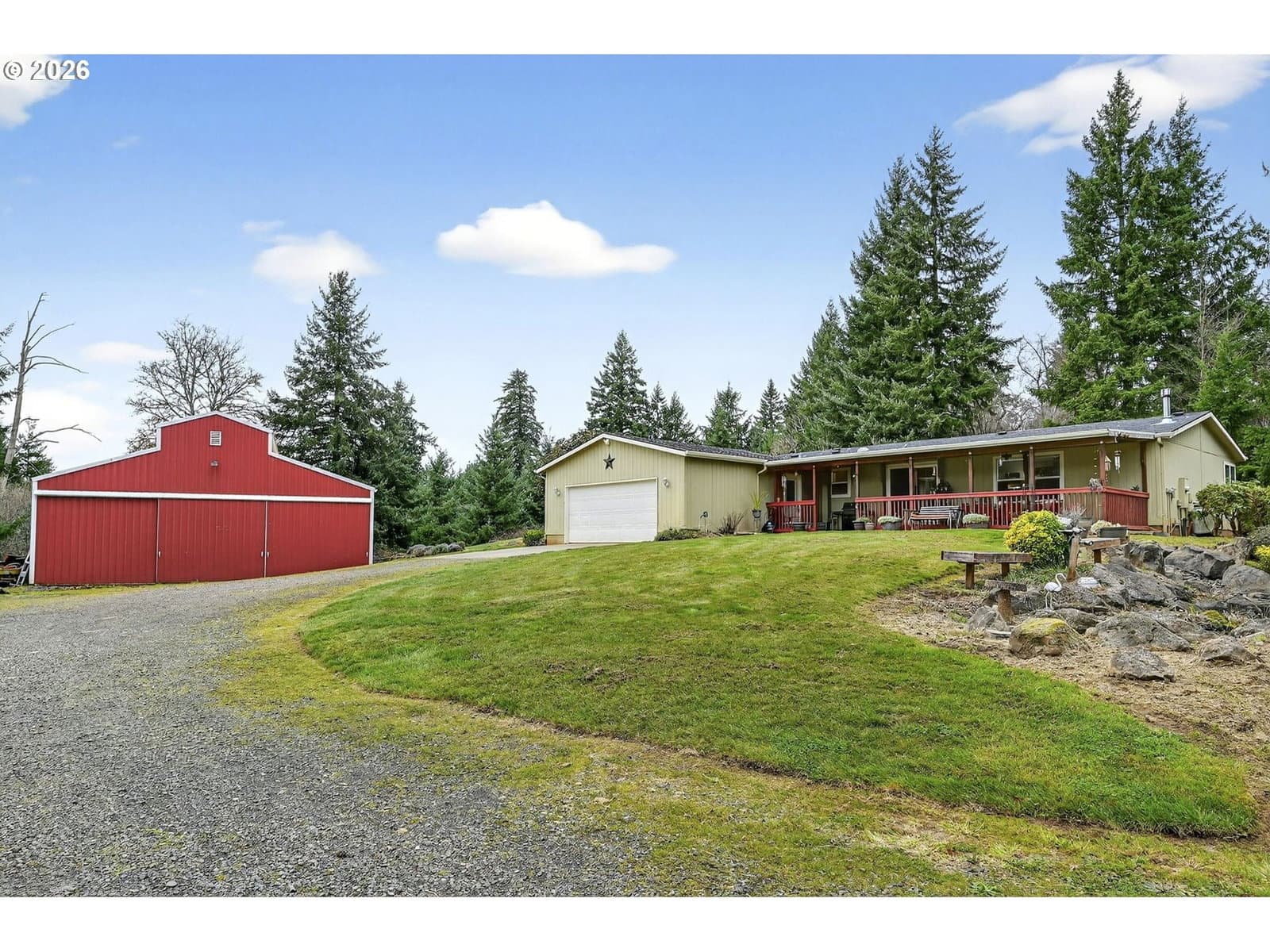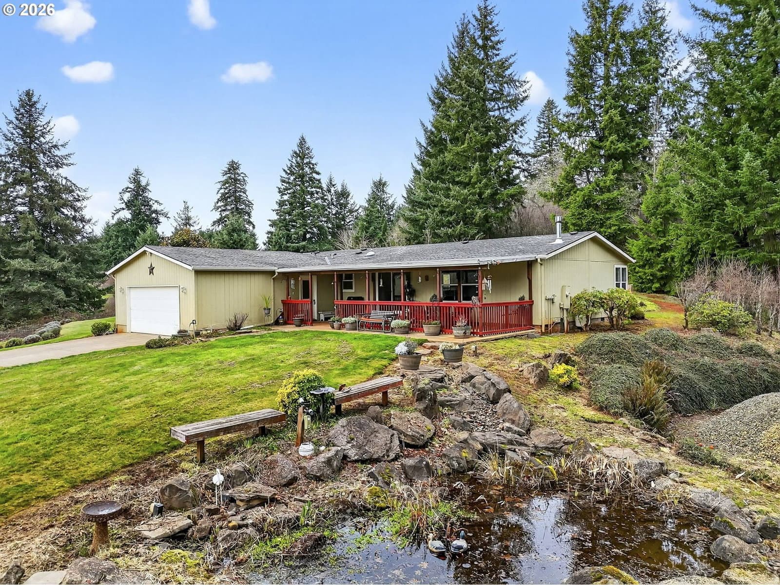 Looking for peaceful private location on a dead-end road? This is it! Just under 3 acres this very comfortable home has all you need. Roof, furnace and heat pump were done in 2016. Backup generator hookup set up and easy to use. 36x36 shop/barn is absolutely perfect with potential for many uses. Fenced pasture with natural spring, small additional barn ready for your animals. Room for RV/Boat/Toys. Inside the house is spacious with cozy fireplace and vaulted ceilings, all very well maintained and comfortable. Front and back covered porches make it easy to enjoy the peaceful setting and the pond with water feature will really shine in the summertime. This one is truly a gem!