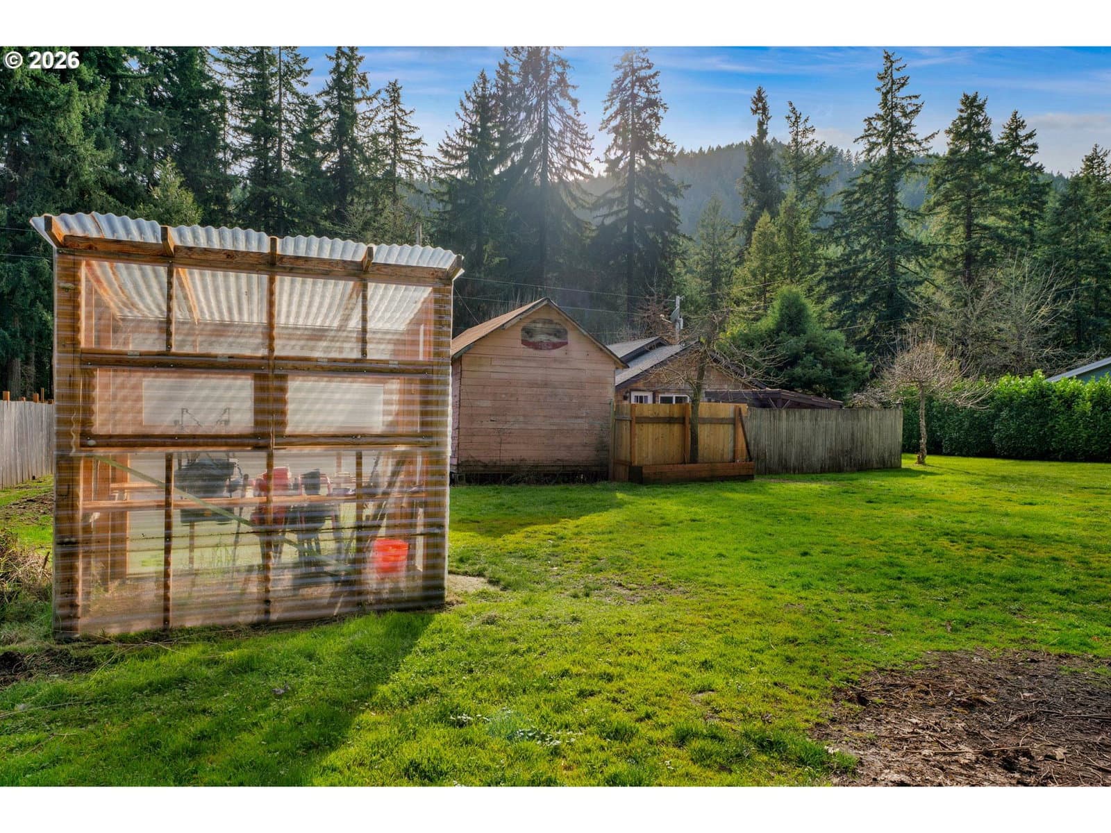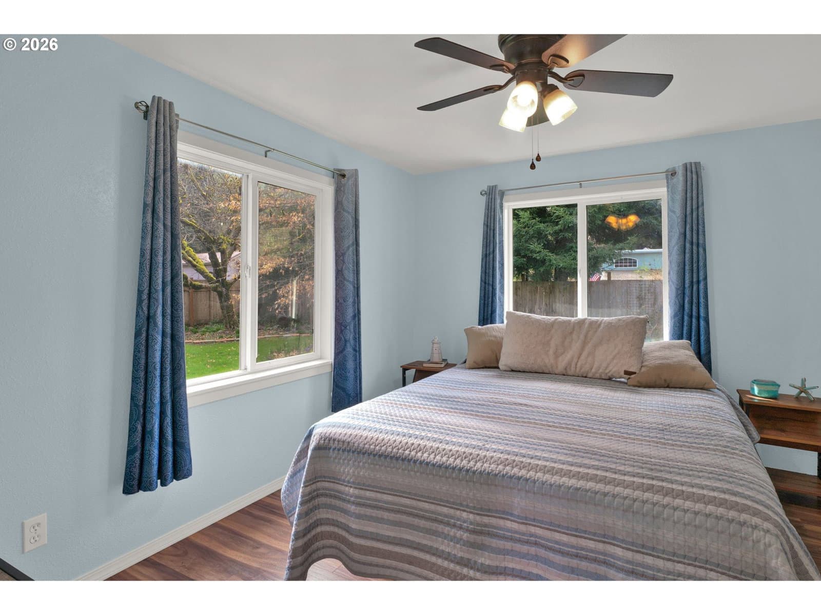 Enjoy this charming property along scenic Row River Rd, where peaceful surroundings and beautiful outdoor space create a truly inviting place to call home. Set on nearly half an acre, this well-maintained cottage offers comfortable living with a wonderful balance of indoor warmth and outdoor enjoyment. Step inside to a thoughtfully arranged living space featuring updated flooring, abundant natural light, and a welcoming layout that feels both open and cozy. The kitchen offers generous cabinet storage, ample counter space, and newer appliances including a stove range and refrigerator, making everyday cooking and entertaining both convenient and enjoyable while remaining connected to the main living area.The living room provides a comfortable gathering space, highlighted by a newer pellet stove that adds warmth and charm during the cooler seasons. Along with a ductless split system provides efficient year-round comfort in the warmer seasons. Two bedrooms and two bathrooms offer flexibility for everyday living, guests, or your home office needs.Several improvements for peace of mind, include a 2-year-old roof and updated hot water heater.Outside, the property truly shines. The spacious yard features mature landscaping and a wonderful variety of fruit trees including cherry, apple, plum, fig, mulberry, and walnut, along with blueberry plants. Garden beds and a greenhouse provide excellent opportunities for gardening, while open lawn areas offer space to relax, entertain, or expand outdoor living.Additional highlights include multiple outbuildings, RV parking, and a fenced yard offering privacy and versatility. Located just steps from the Row River Bike Trail, the property provides a peaceful setting while remaining a bike ride away to Dorena Lake and the convenient amenities in Cottage Grove, all a scenic drive away. Buyer to verify any and all information