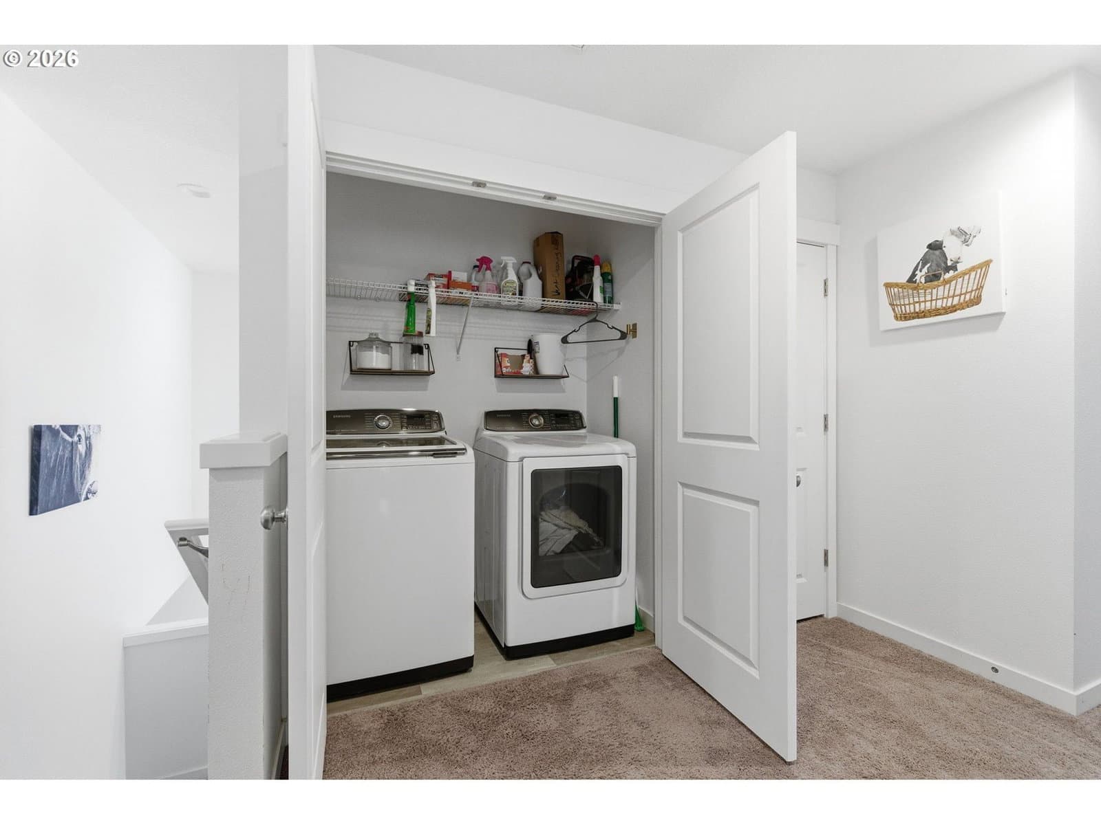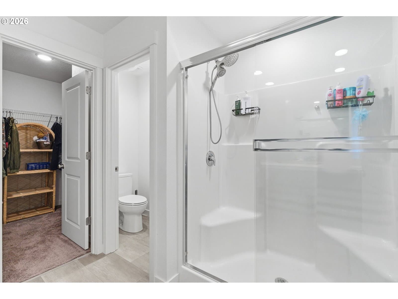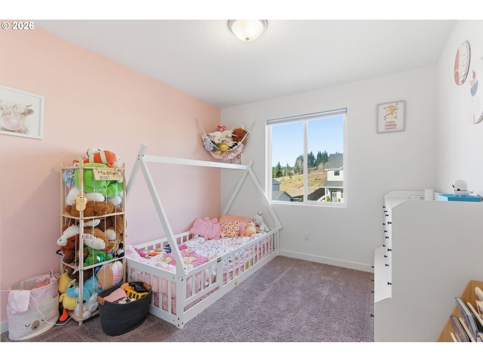 Contemporary 2023 gem in peaceful neighborhood. Open layout with electric fireplace accent wall, chefs kitchen, and private deck with forest views. Upstairs features a spacious primary suite with dual vanities and walk-in closet, alongside two additional bedrooms.