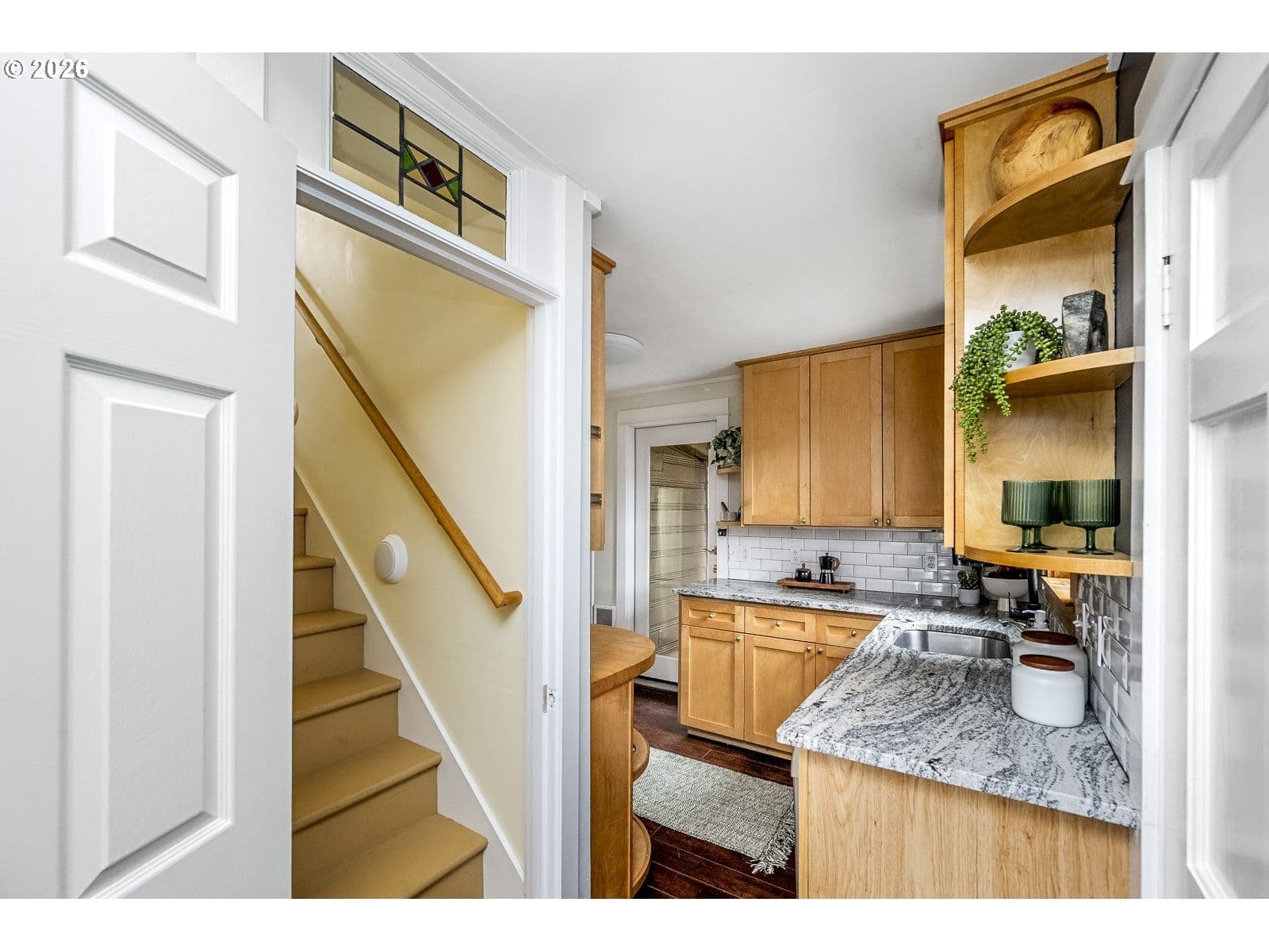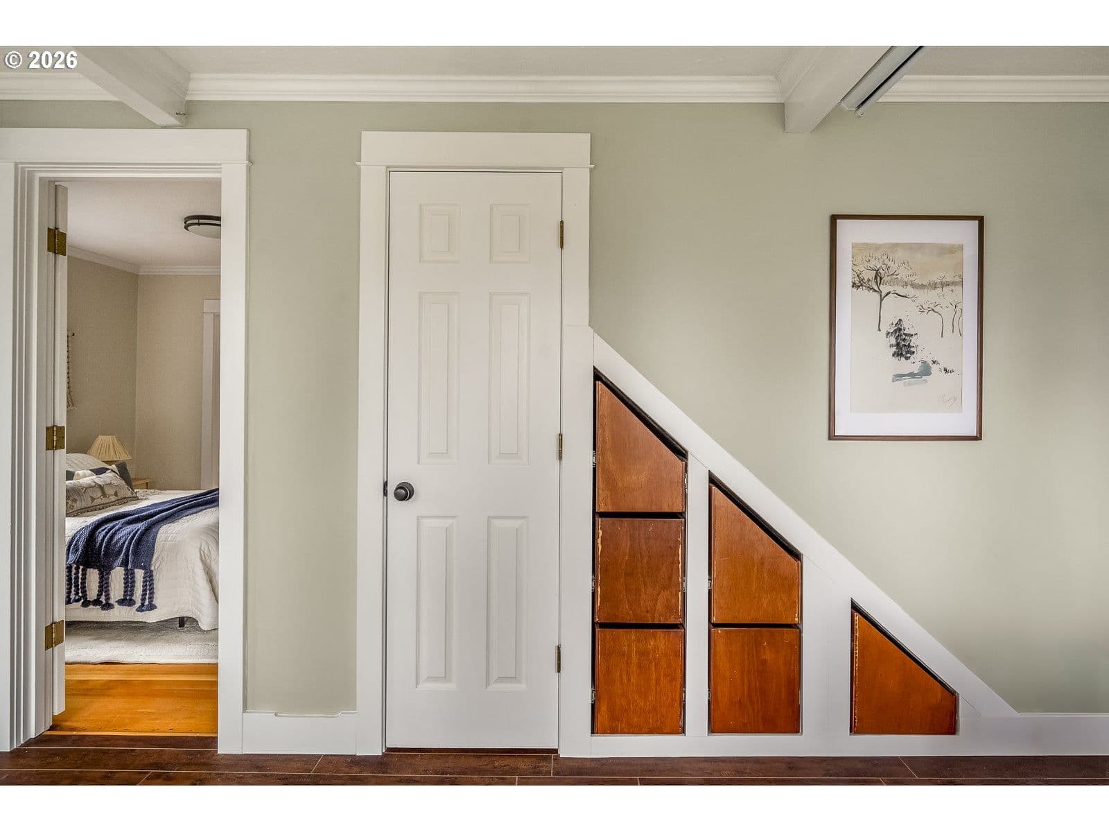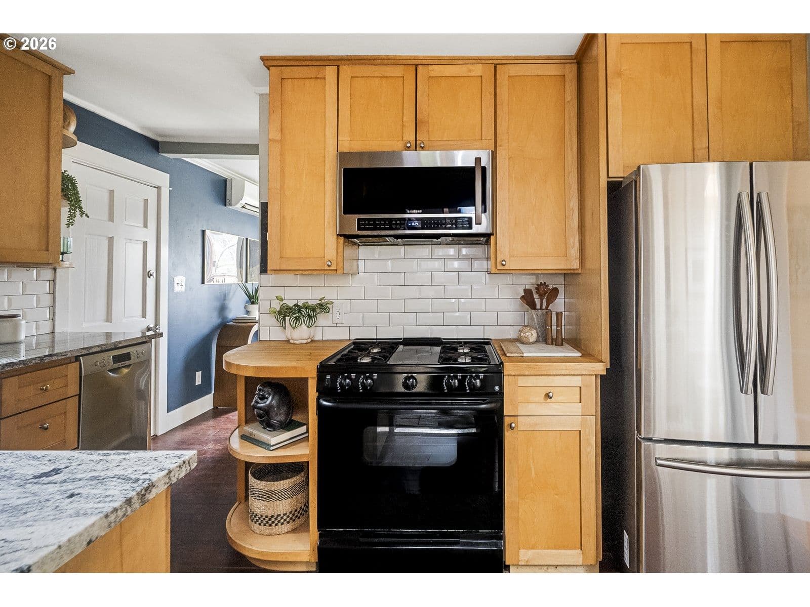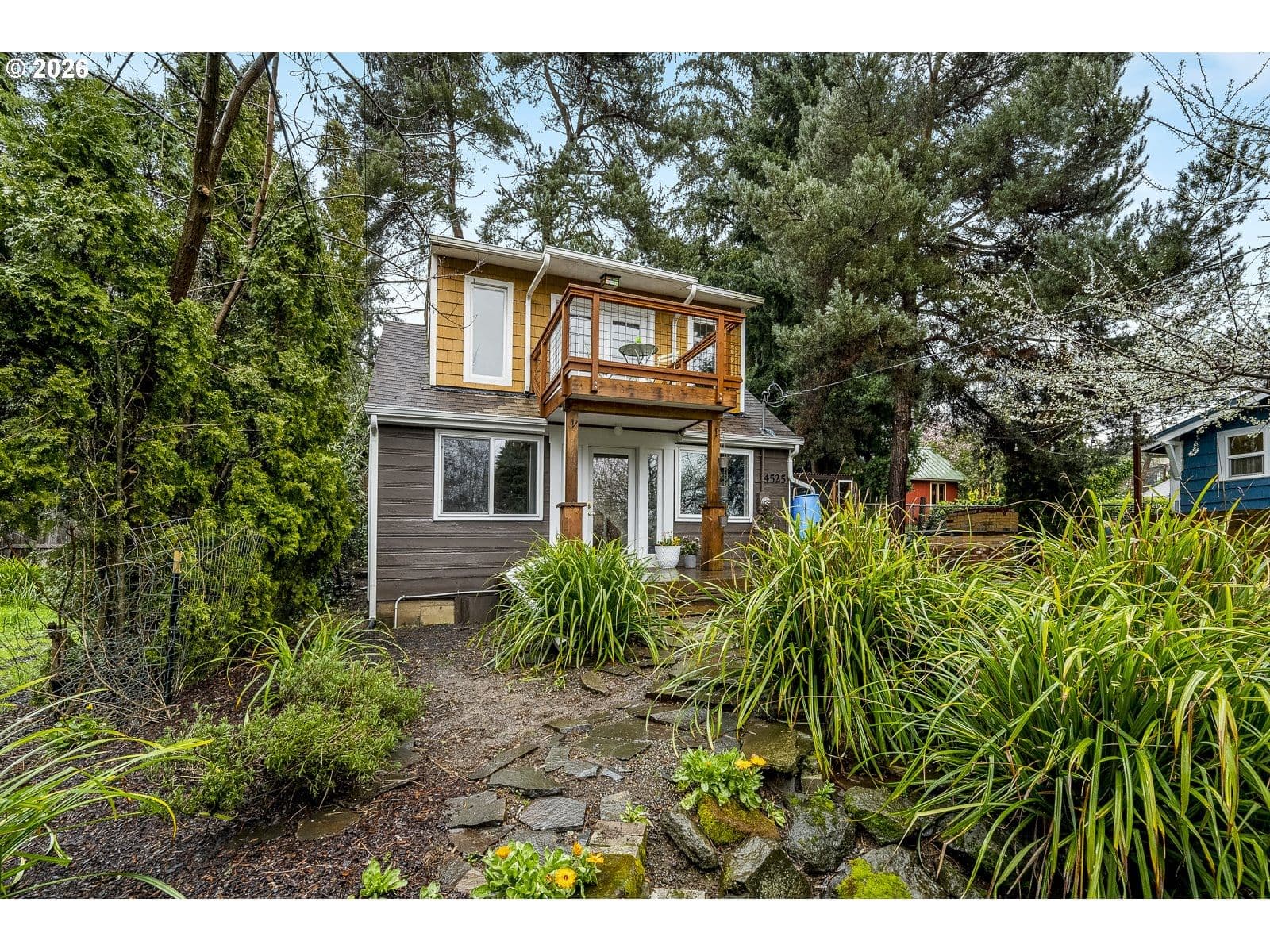 Looking for a private retreat with expansive outdoor spaces located close-in Southeast Portland? Welcome to this charming 1947 cottage set at the back of this long lot where Eastmoreland meets Errol Heights. From the spacious front porch, step into a sweet sitting room and beautiful dining room full of large windows. Newly updated kitchen features new stainless appliances, gas range, maple cabinets, and new granite countertops. Main level bedroom has hardwood floors & walk-in closet and the bathroom features tongue & groove ceiling with skylight. Upstairs primary bedroom has tons of storage, curved ceilings, and gorgeous natural light. Step out onto a newly rebuilt balcony that overlooks the tiered gardens and front yard. Mini splits keep the home cozy and cool as needed, with an energy score of 9! This sanctuary boasts mature trees, raised planter beds, a garden shed, plum & fig trees, a great paver patio with outdoor pizza oven, perfect for entertaining, and a very cool potting cabin. Add a hammock to the large front porch, bask in the sunshine on the flagstone pavers, host outdoor parties throughout the seasons, all within a yard safe for pets and play. Extra-long driveway allows for large vehicle or boat storage. Find the amenities of the newly developed Errol Heights Park and Woodstock’s local shops, New Seasons, and more just a few blocks away. Come discover the charm and comforts of this inspiring property at one of our open houses on Saturday and Sunday! [Home Energy Score = 9. HES Report at https://rpt.greenbuildingregistry.com/hes/OR10034357]