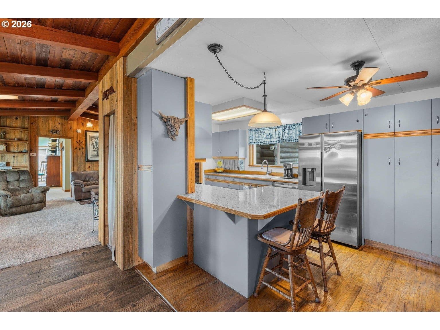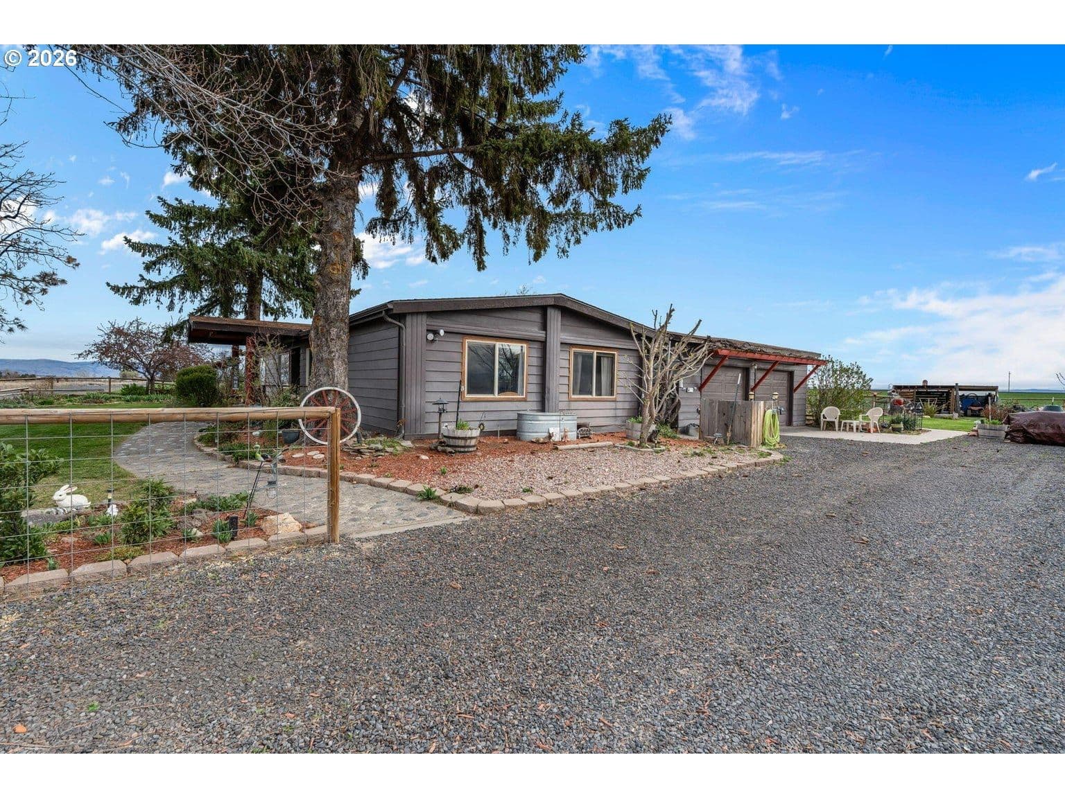 Wide open spaces & Cascade Mtn Views -- this remodeled mobile w/log addition boasting hardwood floors, vaulted ceilings & and an open floorplan. Paved pathway leads to the covered front entry. Large picturesque windows throughout offer an abundance of natural light & mountain/property views. Cozy wood burning stove w/hearth anchors the well appointed main living area. Kitchen ftrs brkfst bar seating, an abundance of cabinetry & prep space, plus dedicated eating area. Additional family room/living space w/loft above. Spacious primary suite ftrs wrap around windows to take in the view + full bath & walk-in closet. Two add'l bedrooms also share a full bath. Laundry w/sink & storage. Massive deck for entertaining yr-round, firepit, RV Parking, sheds/storage/workshop & plenty of room for all your critters & toys. Property is mins to Lake Billy Chinook, Cove Palisades State Park, hiking, boating, fishing & all that the Central Oregon outdoors has to offer. Country feel w/o all the work!