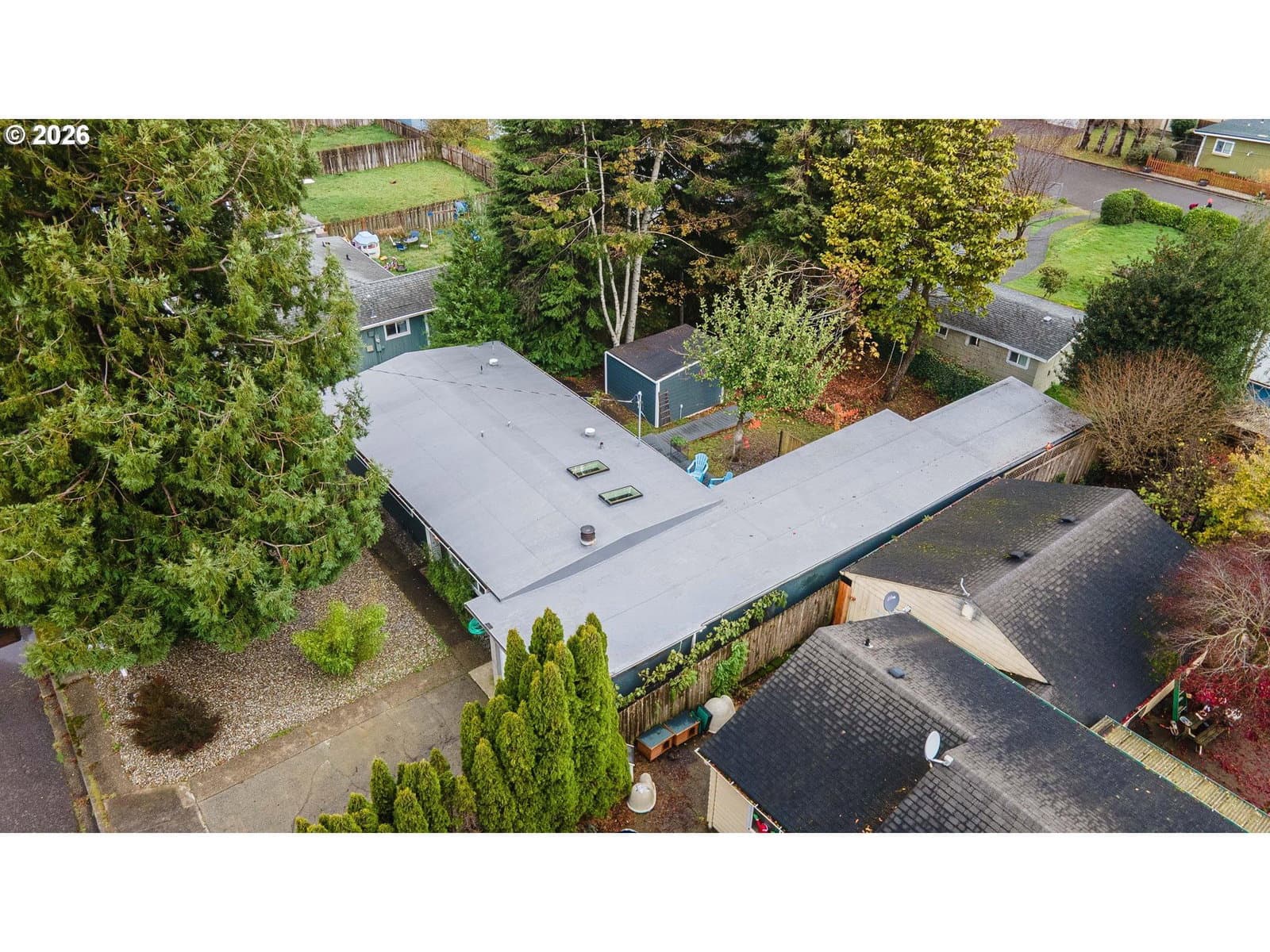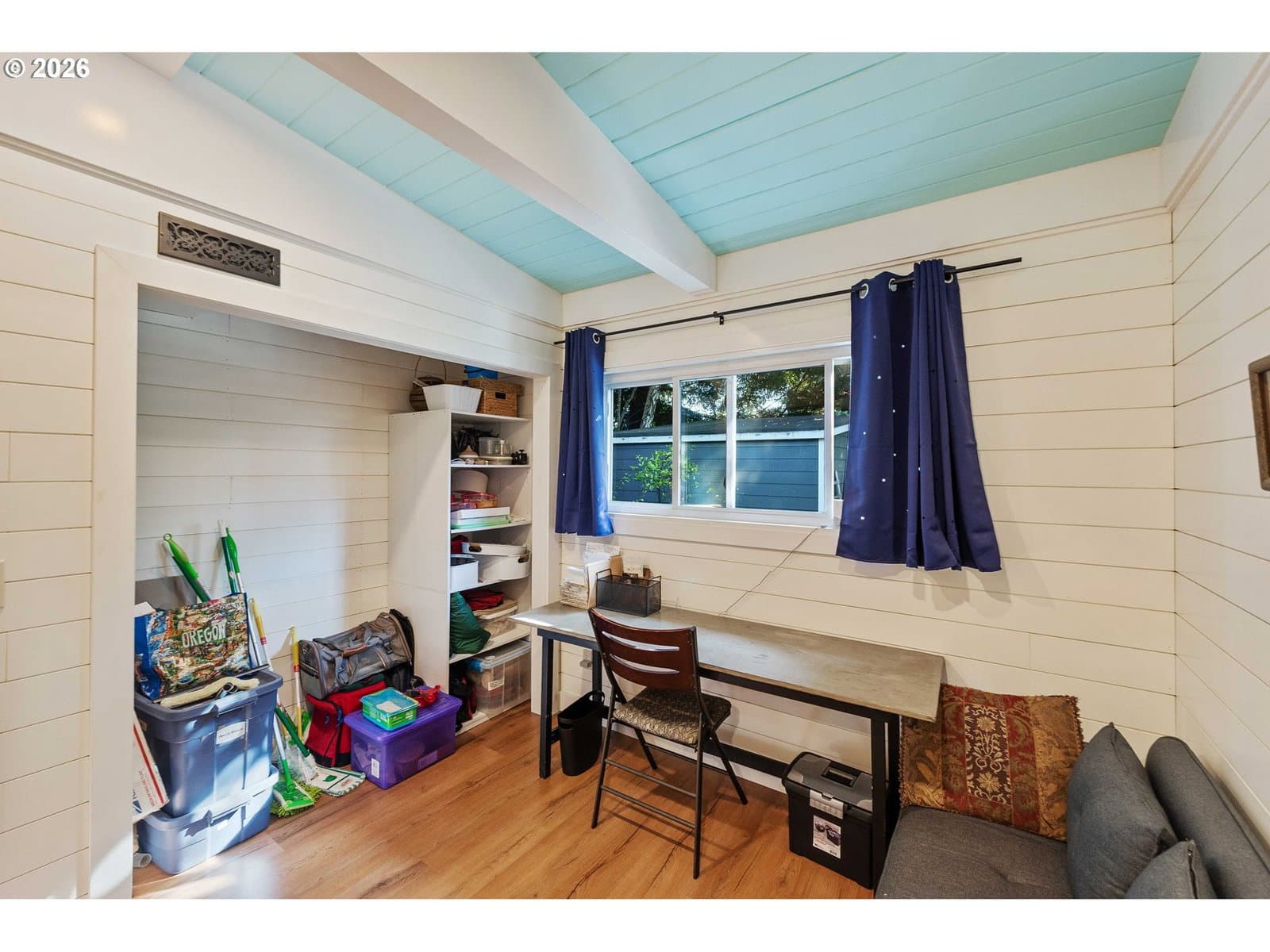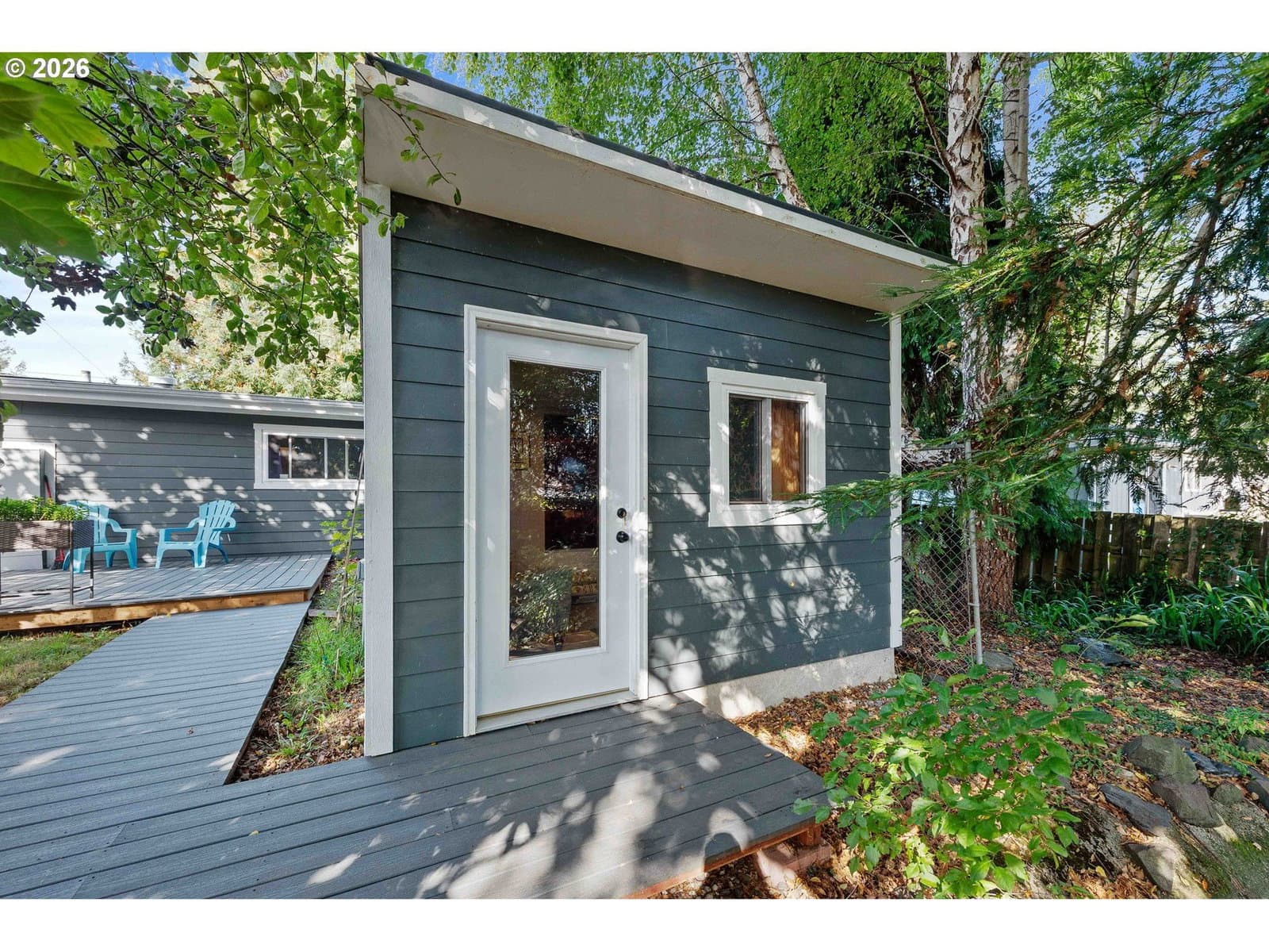 Looking for the “after” home from your favorite renovation show? This light-filled, fully remodeled, move-in-ready home delivers, with a 90 foot tandem garage and detached Sanctuary Studio that make the usable footprint feel larger than the official square footage.Completely renovated inside and out, this 3-bedroom, 2-bath home features continuous shiplap walls throughout the living room, hallway, and bedrooms. Skylights bring in natural light, and a mini-split system with electric furnace provides year-round comfort.The kitchen offers new cabinetry and stainless-steel appliances. Both bathrooms include hand-applied lime plaster finishes, heated floors, and new vanities. The primary suite features a walk-in shower and a spacious walk-in closet with in-room laundry.The 90 foot by 13 foot tandem garage includes a custom-built workshop with extensive cabinetry and sliding glass doors opening to the wooded backyard, plus additional organized storage and plumbing rough-in for a future bathroom.Outside, Trex decking and a private, tree-lined yard offer peaceful outdoor living. Located next to the Boys and Girls Club in a quiet, friendly neighborhood, this home is ready to live in and love.
