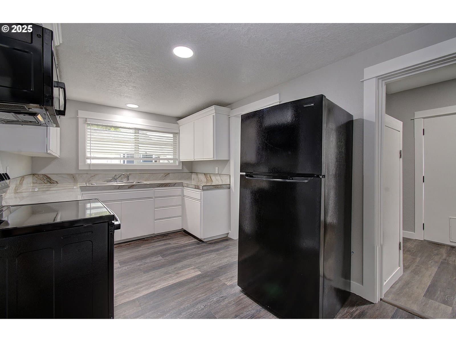 Price Drop!! Fresh and Ready! New flooring, new paint, new kitchen, new bathroom! Primary on main floor, small bedroom/office/ on main 2 other bedrooms up, must walk thru one to get to second, easy to make this floor plan work. You will love the pellet stove in the living room, imagine the money you will save on heating. Detached garage is finished inside, fenced yard, deck and off street parking.