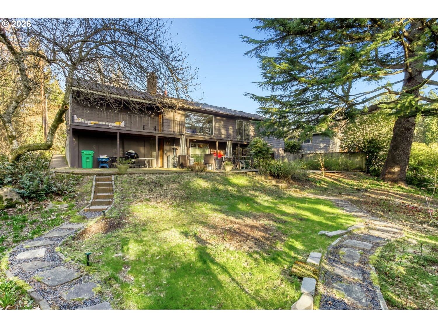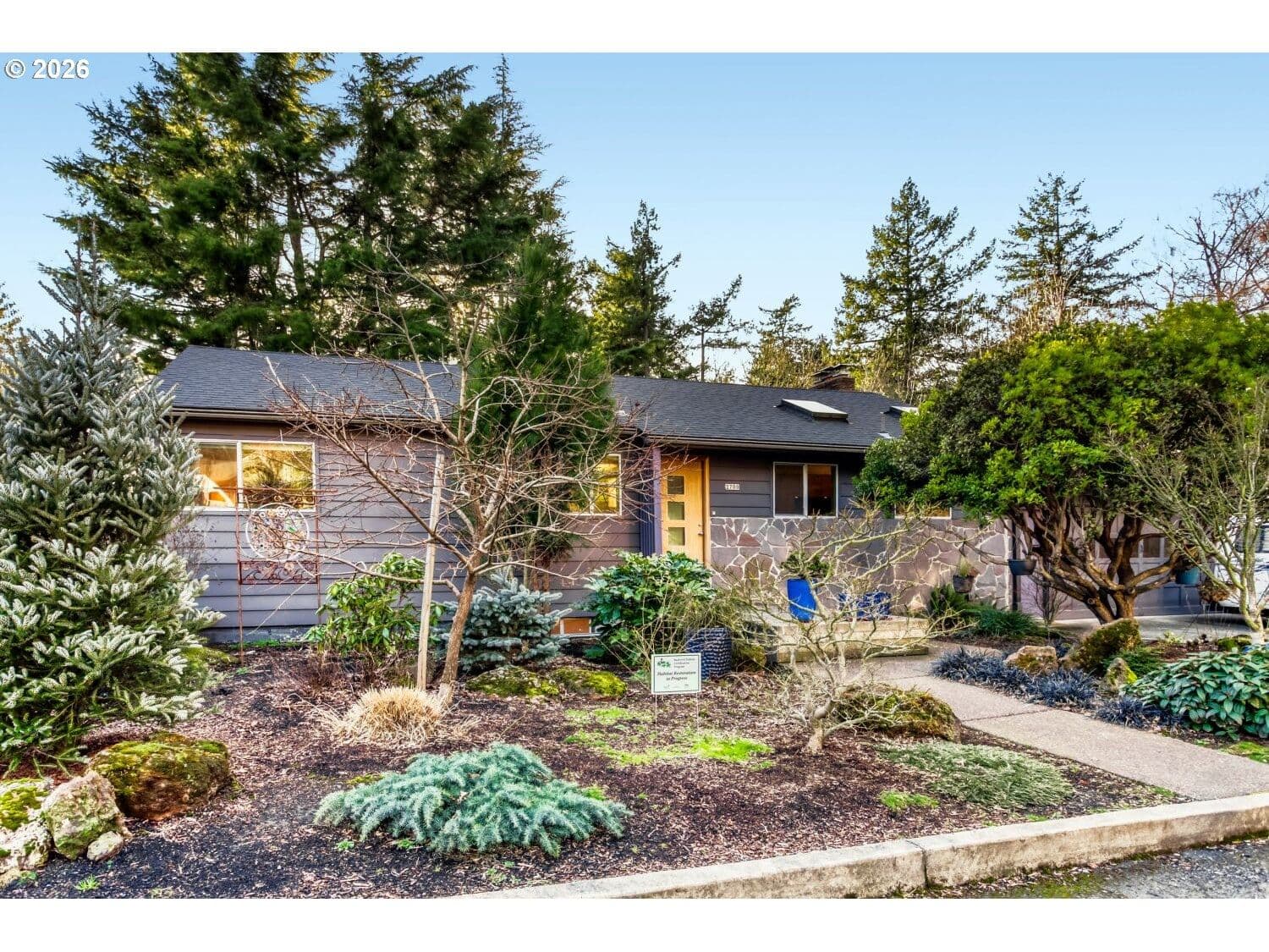 A must-see opportunity in coveted Hillsdale. This 3-bedroom, 2-bath mid-century daylight ranch offers a rare sense of privacy and calm — your own sanctuary in the city. As only the second owner in 70 years, this home has been thoughtfully preserved and tastefully updated, blending original character with modern comfort. Highlights include George Nelson and Louis Poulsen lighting, oak hardwood and travertine floors, Roman brick fireplaces (both with rebuilt fireboxes), an original vintage wet bar, and a well-appointed kitchen featuring quartz countertops, Wolf induction range, and Asko dishwasher. Major system updates were completed in 2019, including the roof, sewer line, and plumbing. Additional intentional improvements include an HVAC system with a Trane heat pump and Thermo-Pride biodiesel furnace for colder days, double-paned aluminum-framed windows that maintain the home’s original aesthetic, and foam-injected insulation throughout. Surrounded by Douglas-Fir and Cedars, the property borders a lush greenbelt teeming with wildlife, and will qualify for Platinum status with the Certified Backyard Habitat program. The outdoor space is truly special, with a spacious patio ideal for entertaining or relaxing, plus a truly unique “secret” deck built around trees. A rare blend of character, comfort, and quiet in desirable SW Portland, this is an extraordinary place to call home. Seller is a licensed real estate broker in Oregon. [Home Energy Score = 3. HES Report at https://rpt.greenbuildingregistry.com/hes/OR10038278]