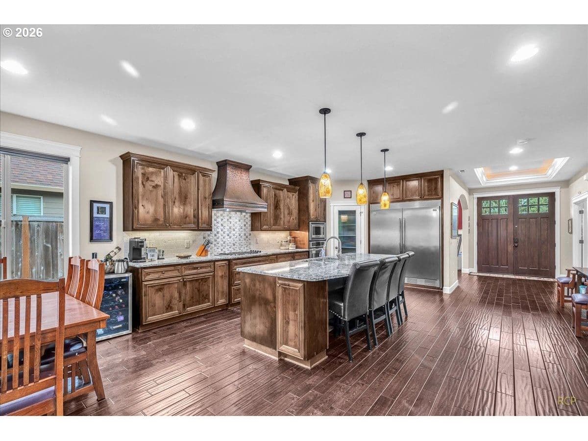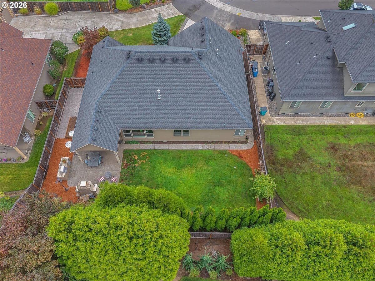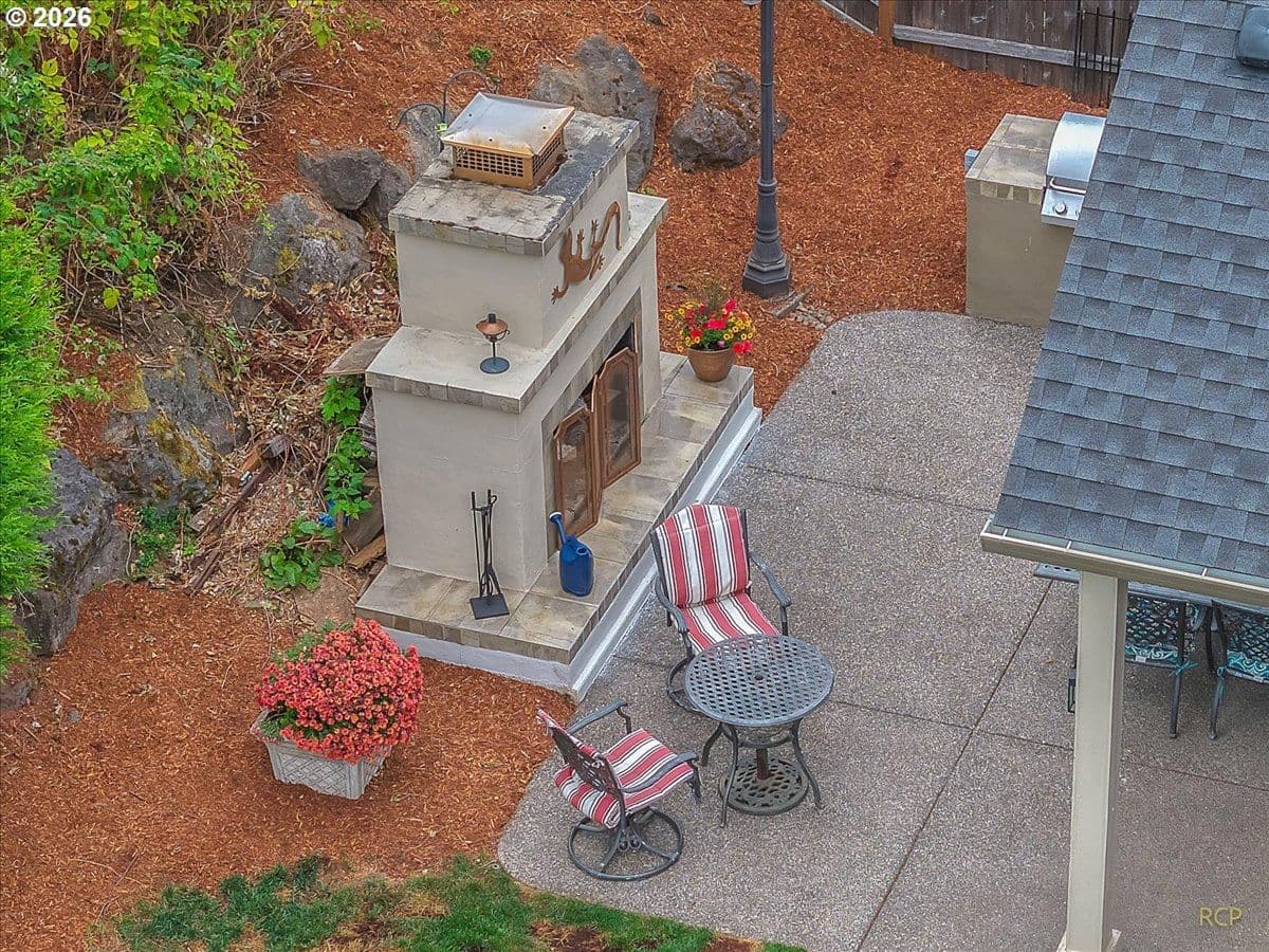 Beautifully-crafted single-level Bella Villa Homes 3 bed, 2 bath open-concept home on large lot offering timeless design and high-quality finishes throughout. You will love the wide hallways, 9’ ceilings, gorgeous hardwood floors, ceiling fans, and excellent natural light. The great room includes custom wood built-ins, a floor-to-ceiling stone fireplace, and a wall of windows overlooking the private backyard. The kitchen is both elegant and functional with granite countertops, stainless appliances, gas range w/ copper hood, built-in oven & microwave, Frigidaire Pro refrigerator, travertine backsplash, oversized island, and walk-in pantry. A formal dining room with wainscoting and fresh paint offers flexibility for a home office or den. The primary suite is a true retreat with heated travertine floors, updated shower with heated floors, and custom closet with massive custom shoe caddy. Outdoor living shines with the Custom outdoor masonry fireplace with stone detailing & metal fire screen, creating a striking focal point for the covered patio and the new built-in BBQ with stone surround, extending outdoor use well into cooler seasons for outdoor entertaining. Large private yard has raised beds, raspberries, grapevines and mature landscaping. Convenient location near shopping, restaurants and transportation. Rare single-level living on quiet cul-de-sac with enduring quality and comfort is a must see!