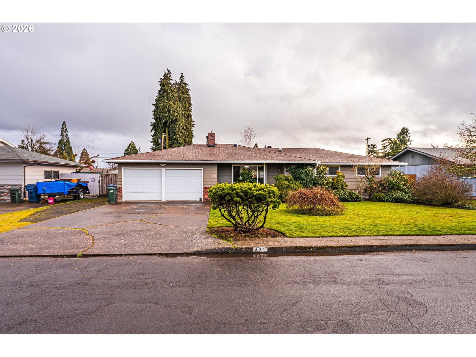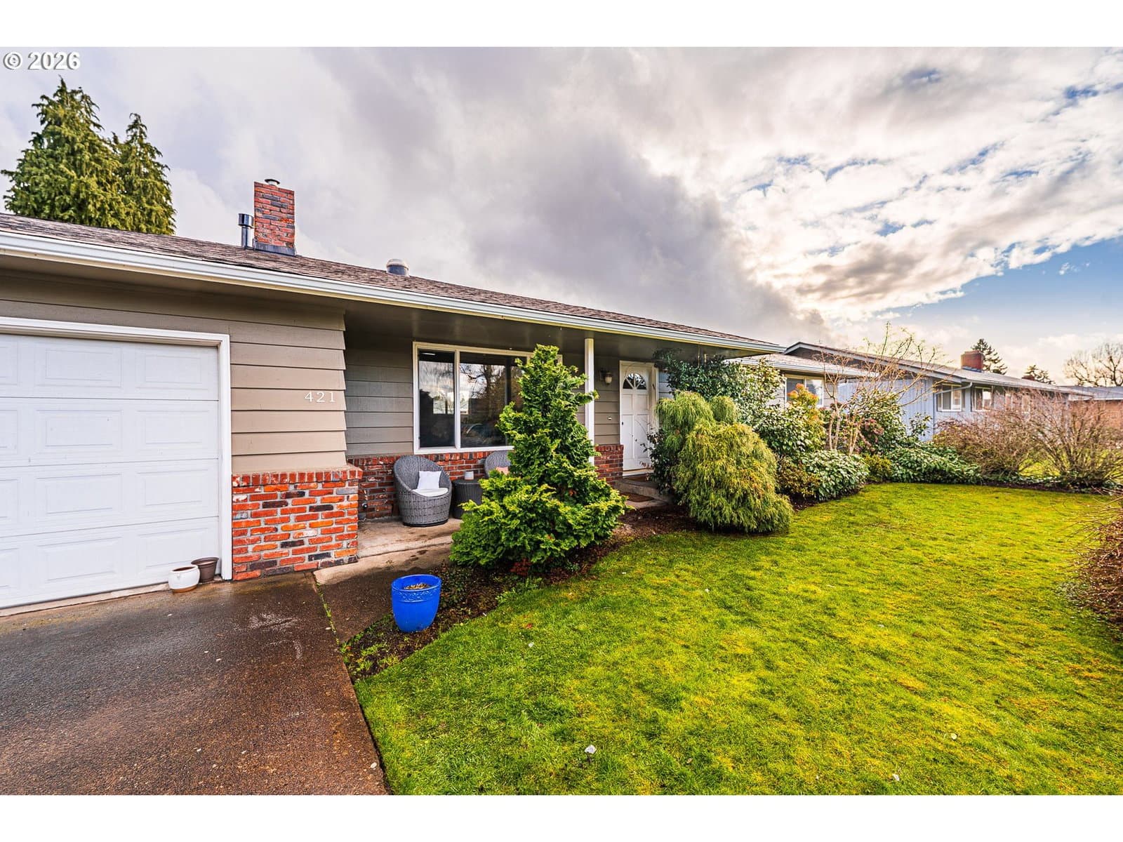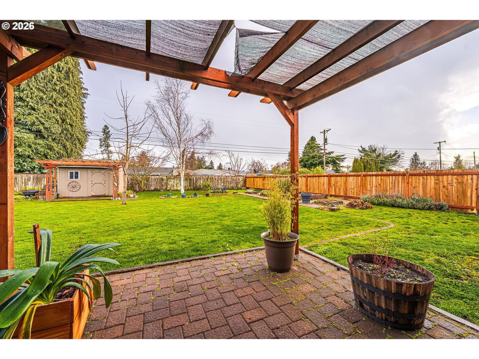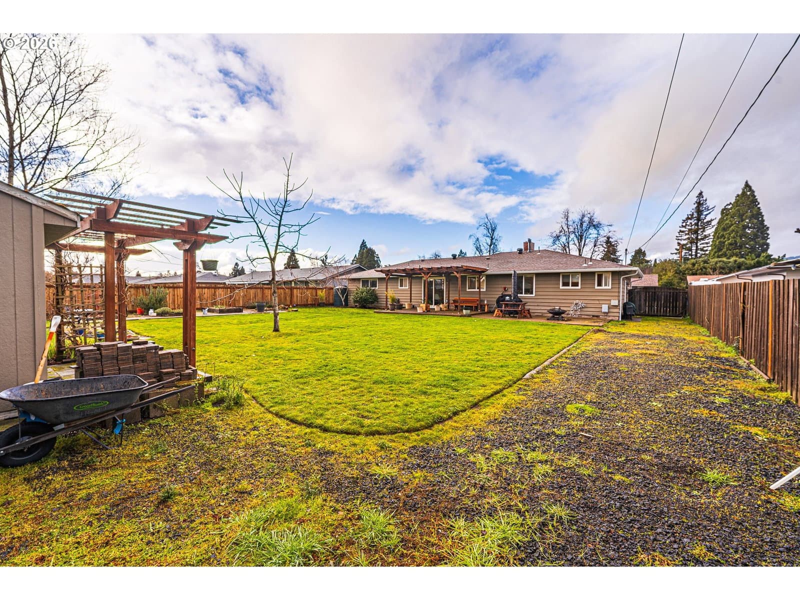 This thoughtfully updated 3-bedroom, 2-bath rancher blends classic comfort with modern refinement. A brand-new roof, gutters, and HVAC system provide peace of mind, while real hardwood floors—complemented by LVP and tile—add warmth and durability throughout. The gas fireplace anchors the living space, creating an inviting place to unwind. The spacious galley kitchen features tasteful updates and is enhanced by a bonus flex space—ideal for a home office, dedicated meal prep area, or additional storage—adding both functionality and versatility to the home. Vinyl windows and updated fixtures throughout reflect a property that’s been carefully maintained, not merely refreshed. Step outside to a generously sized yard designed to be enjoyed. The fully fenced backyard includes mature landscaping, fruit trees, garden beds with a drip irrigation system hooked up to both city water and a rainwater catchment system, a tool shed, and a covered paved patio that effortlessly extends the living space outdoors—perfect for entertaining or quiet moments at home.Smart updates, timeless finishes, and meticulous care come together in a home that truly delivers on comfort, quality, and livability.