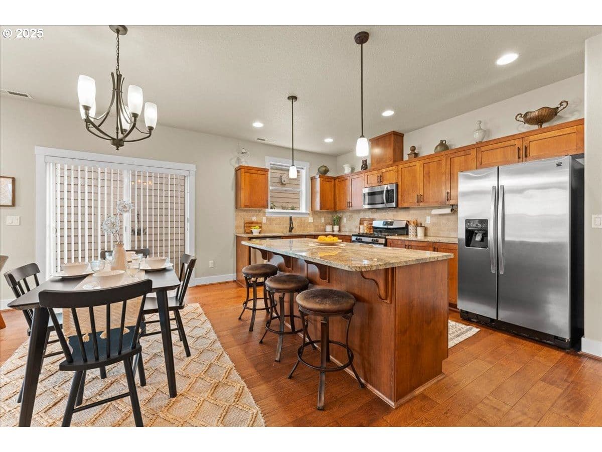 You won’t want to miss this well-designed Polygon build 4 bedroom, 2.1 bath home on a quiet street in the popular Baseline Woods neighborhood. A sturdy birch tree, classic shutters + a covered porch with stone detail all add the architectural flair & curb appeal that welcomes you into this 2013 modern home. Step into the spacious open-concept great room w/a cozy gas fireplace and warm engineered flooring, setting the perfect mood for relaxing evenings or festive gatherings. The living room flows into the dining room w/a slider to the private, fenced, low-maintenance deck. The modern open kitchen features stainless steel & gas appliances, granite countertops & a huge island w/seating for 3 at the bar. The step-in pantry is a favorite feature w/plentiful storage. Upstairs the 8x9’ landing can flex as an office or exercise area. Need a private retreat? The light & bright primary ensuite provides just that w/coved ceiling, walk-in shower, dual vanities, built-in shelving, tons of storage + a spacious walk-in closet. With 3 additional bedrooms, a full hallway bath, laundry room + a 2-car garage, this dialed-in home is move-in ready! Bedroom #4 is great flex space for a play or craft room or whatever suits your lifestyle. The Kenmore refrigerator & washer & dryer are included! 2025 Updates include: Fresh interior paint on the entire main level & partial upper level + new carpeting & dishwasher. Conveniently located to Highway 26 & the dining, entertainment & cultural opportunities proximity to Portland affords + Sunset Corridor high tech industry, Nike, Apple, Intel, Tektronix. Super convenient public transit, parks, trails & shopping are also right in the neighborhood, with all kinds of amenities from Costco to major medical to The Streets of Tanasbourne. An ideal home base w/rare low HOA fees for a lock-and-go lifestyle, future rental, rightsize or first home! Comfort, style, & convenience blend perfectly together in this must see home! HOA maintains front yard landscape, common areas, and alleys.