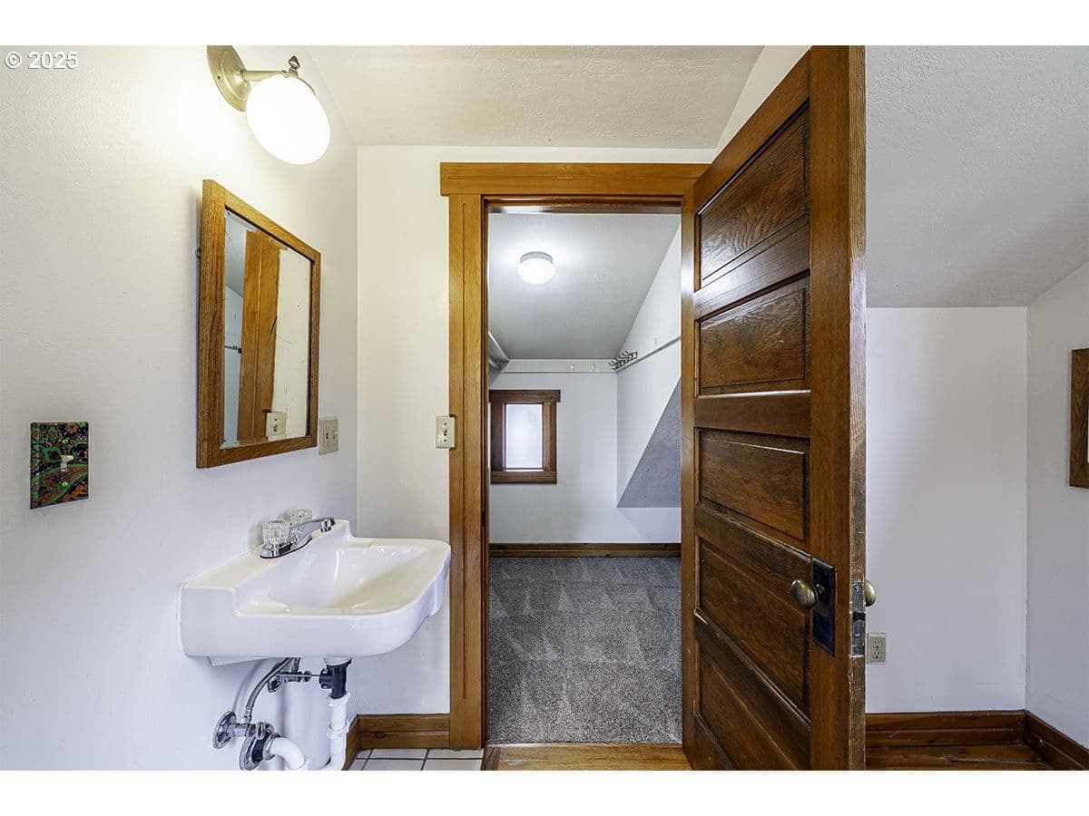 Great location at corner of Rock & Nursery streets. This charming circa 1916 built 2-story home is situated on a spacious, wide R2 zoned lot with alley access & potential room for 2 additional ADUs. 1808 sf, spacious living areas, 4 bedrooms & 2 baths on .18-acre lot. Wonderful natural light, rich hardwood floors, skylights, & a wood-burning fireplace create an inviting interior. Main level offers open living room with warm woodwork & cozy FP. Large kitchen area with dining area. Gas range, vintage tile counters, dishwasher, fridge, dining nook plus a laundry closet. 2 bedrooms on the main level & a full bath with large vanity. 2 additional bedrooms upstairs each include their own sink, with a 2nd full bath. Features include walk-in closets, French doors to a small deck, covered front porch, detached one-car garage with storage, and 4 rear parking spaces. Large yard with sprinklers, mature landscaping, & R-2 zoning. Home has vintage lighting, mostly wood windows, & knotty pine accents.