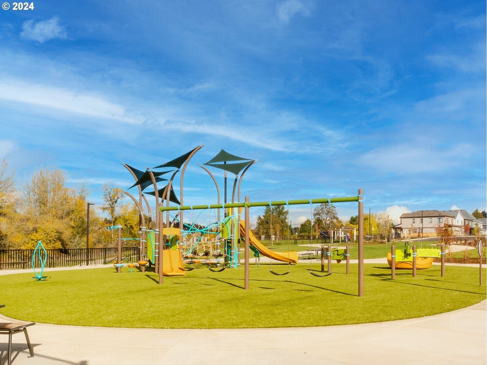 Move-in Ready. Ask about our awesome fixed rate promotion! Pictures of exterior are the actual home located at right. This a TRUE Corner location. Tons of windows (see photos) offer excessive natural light! Beautifully designed three-level townhome boasting 9ft ceilings on main floor, 3 bedrooms and 2.5 bathrooms, with an open-concept main level that seamlessly blends the living, dining, and kitchen areas. Did I mention a ton of windows? The kitchen features quartz countertops, a spacious island, and opens to a covered balcony—perfect for morning coffee or evening relaxation. A cozy fireplace anchors the living room, creating a warm and inviting atmosphere. The home also includes a two-car extra-deep garage for added storage and flexibility. Side-by-side driveway and parking in front! Located in a vibrant community with parks, walking trails, and pickleball courts, and just minutes from the new Art Rutkin Elementary and Progress Ridge shopping center. By appointment only—don’t miss your chance to see this exceptional home! Interior Photos are of similar model home with the same finishes as this home! Pickleball, Fenced Dog Parks, Future Retail, Walking Trails, Play structure - Its all HERE!