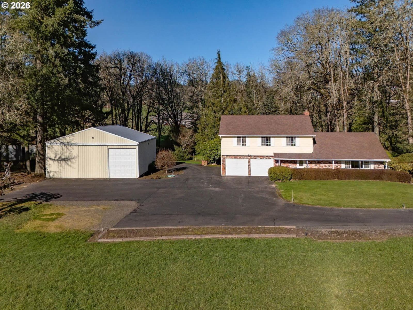 This classic Helvetia home sits on 2 acres of level land with a small stream and plenty of room for gardening and animals, plus a large shop. The home was custom-built and has been meticulously maintained by the current family for over 50 years. Thoughtful features throughout, such as 2-HVAC/heat pump systems, one for each floor, which provide even heat and cooling throughout the house, wired for a backup generator, and a large primary suite with a full bath and walk-in closet. This original owner home has been meticulously maintained, and it shows inside and out, from the rich, solid wood cabinets in the kitchen and family room to the stunning grounds with lush lawns, majestic trees, and a pleasant stream. The massive 40X36 shop has high doors and is ideal for RV storage, plus you have an additional workshop area, tool storage, and wood storage on the back of the shop building. This is a rare find with small, usable acreage, a well-cared-for house with a shop, and just 7 mins to Hwy 26 and shopping. Subject to the completion of the county-approved lot line adjustment. Acreage size is approximate and will be finalized once the lot line adjustment is finalized. An adjacent 2-acre buildable parcel of land is for sale. See ML#124616951.