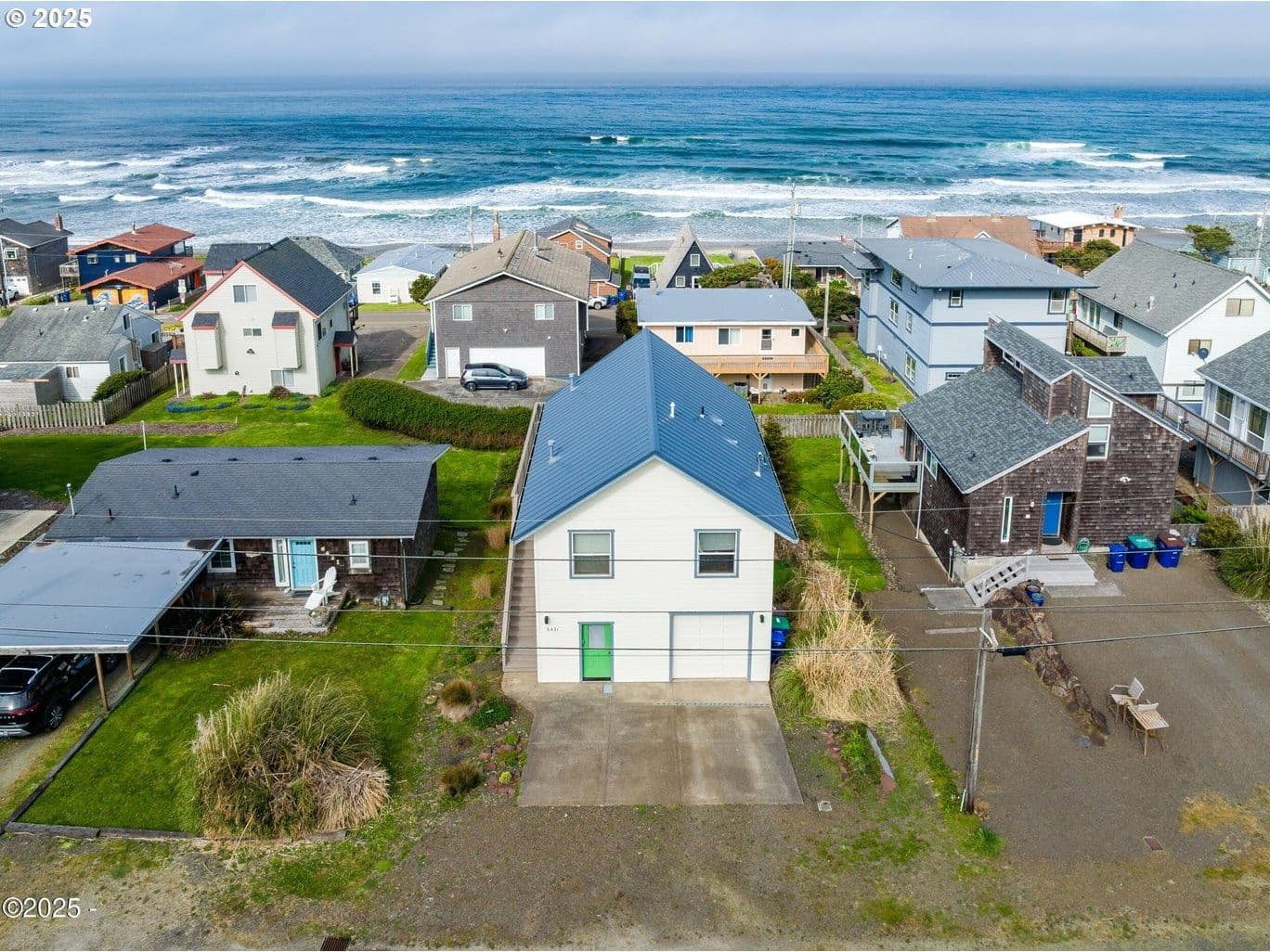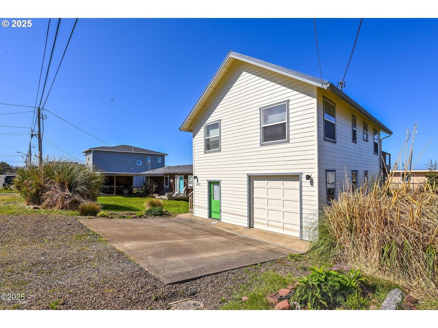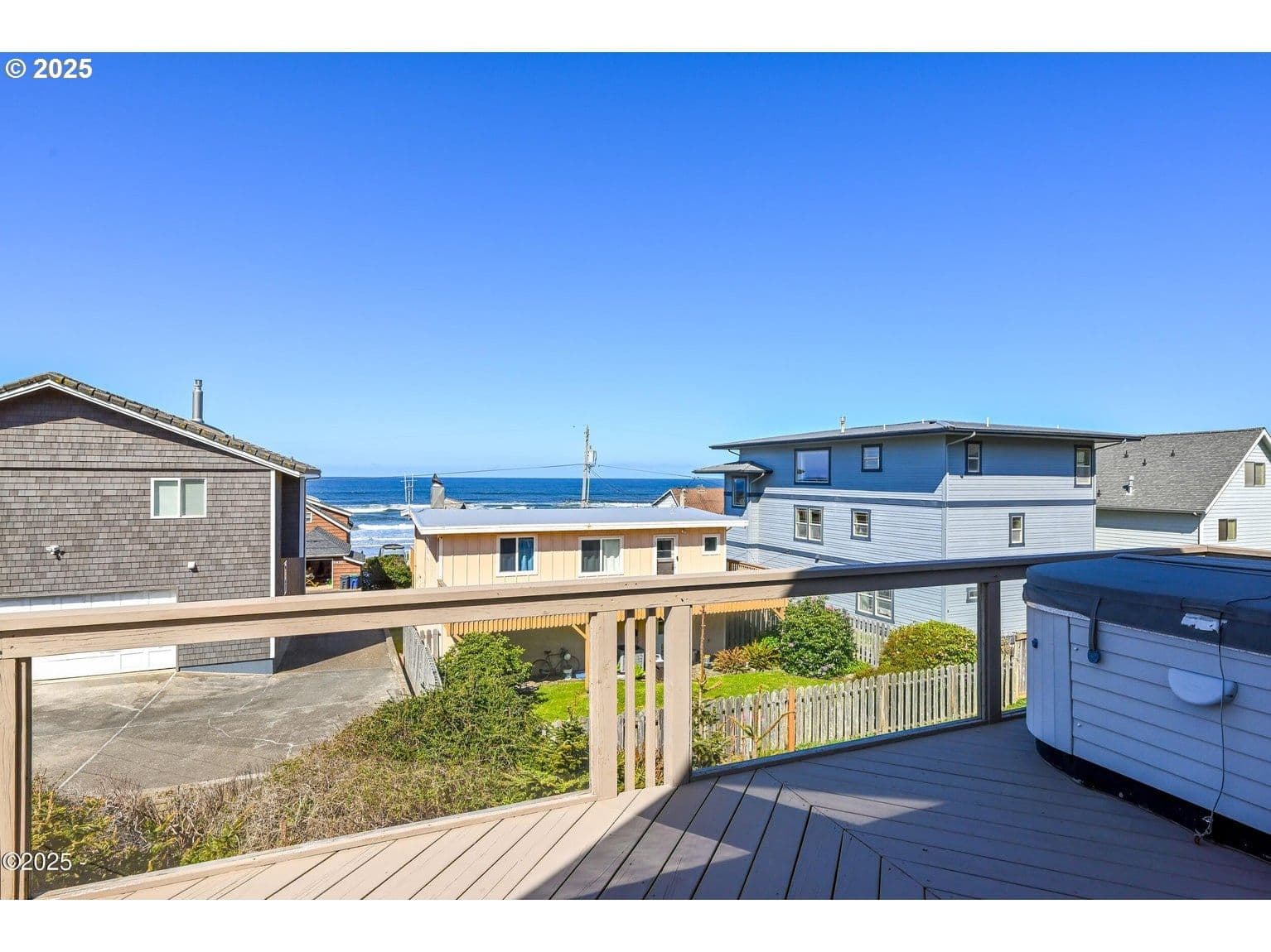 BEAUTIFUL ROADS END BEACH HOUSE Breathtaking Views and one block to the Ocean ! This light and bright, open floor plan has a wall of glass for ocean and wildlife viewing. Comfortable 3- bedroom, 2-full baths with private primary, an oversized attached garage with ample storage for beach toys. Excellent work from home potential with high speed internet. Kitchen includes newer stainless appliances, cozy gas fireplace an Oceanview deck and hot tub for your enjoyment. Updated with a new metal roof, new exterior paint and lighting and new deck paint. Located in the Roads End neighborhood with many walking options out your front door, great restaurants, the Casino and miles of beautiful sandy beach. Don't miss this one!