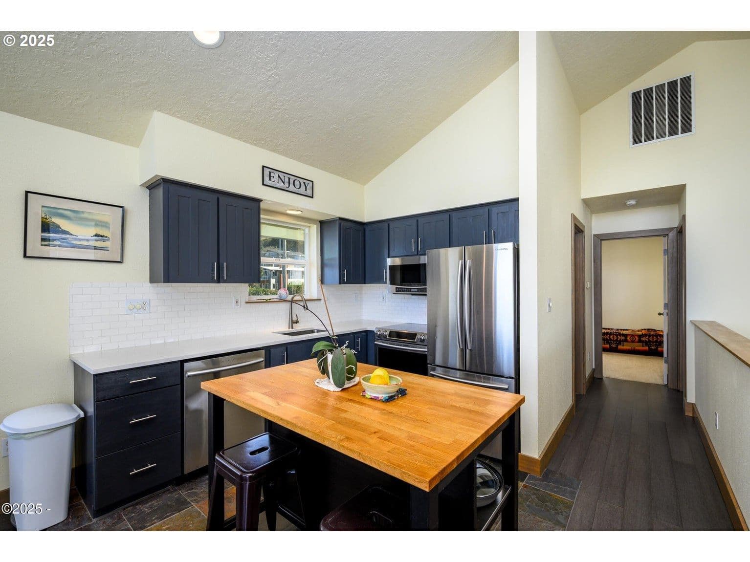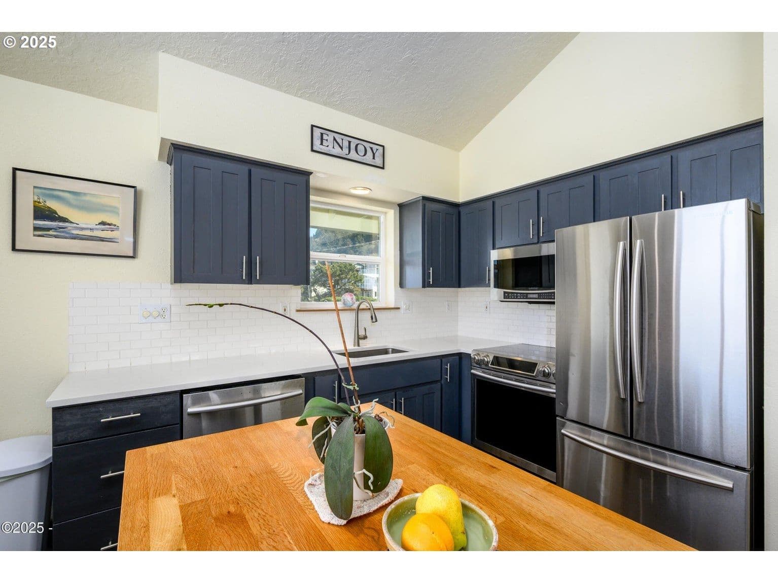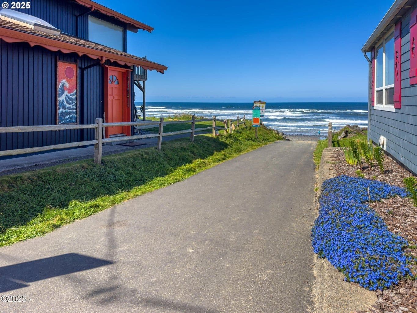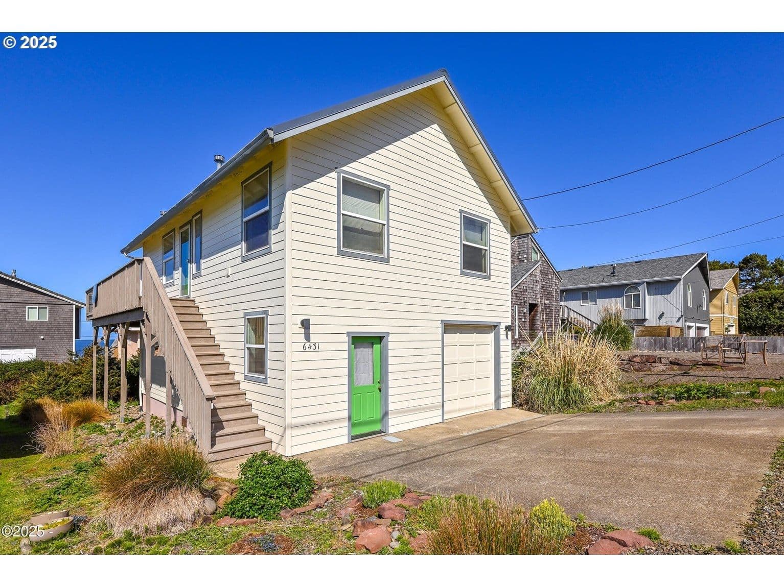 BEAUTIFUL ROADS END BEACH HOUSE Breathtaking Views and one block to the Ocean ! This light and bright, open floor plan has a wall of glass for ocean and wildlife viewing. Comfortable 3- bedroom, 2-full baths with private primary, an oversized attached garage with ample storage for beach toys. Excellent work from home potential with high speed internet. Kitchen includes newer stainless appliances, cozy gas fireplace an Oceanview deck and hot tub for your enjoyment. Updated with a new metal roof, new exterior paint and lighting and new deck paint. Located in the Roads End neighborhood with many walking options out your front door, great restaurants, the Casino and miles of beautiful sandy beach. Don't miss this one!