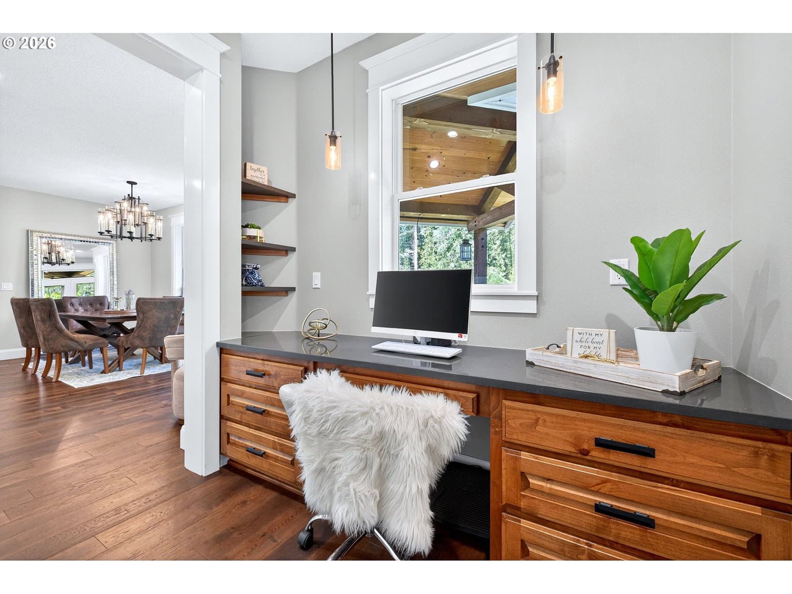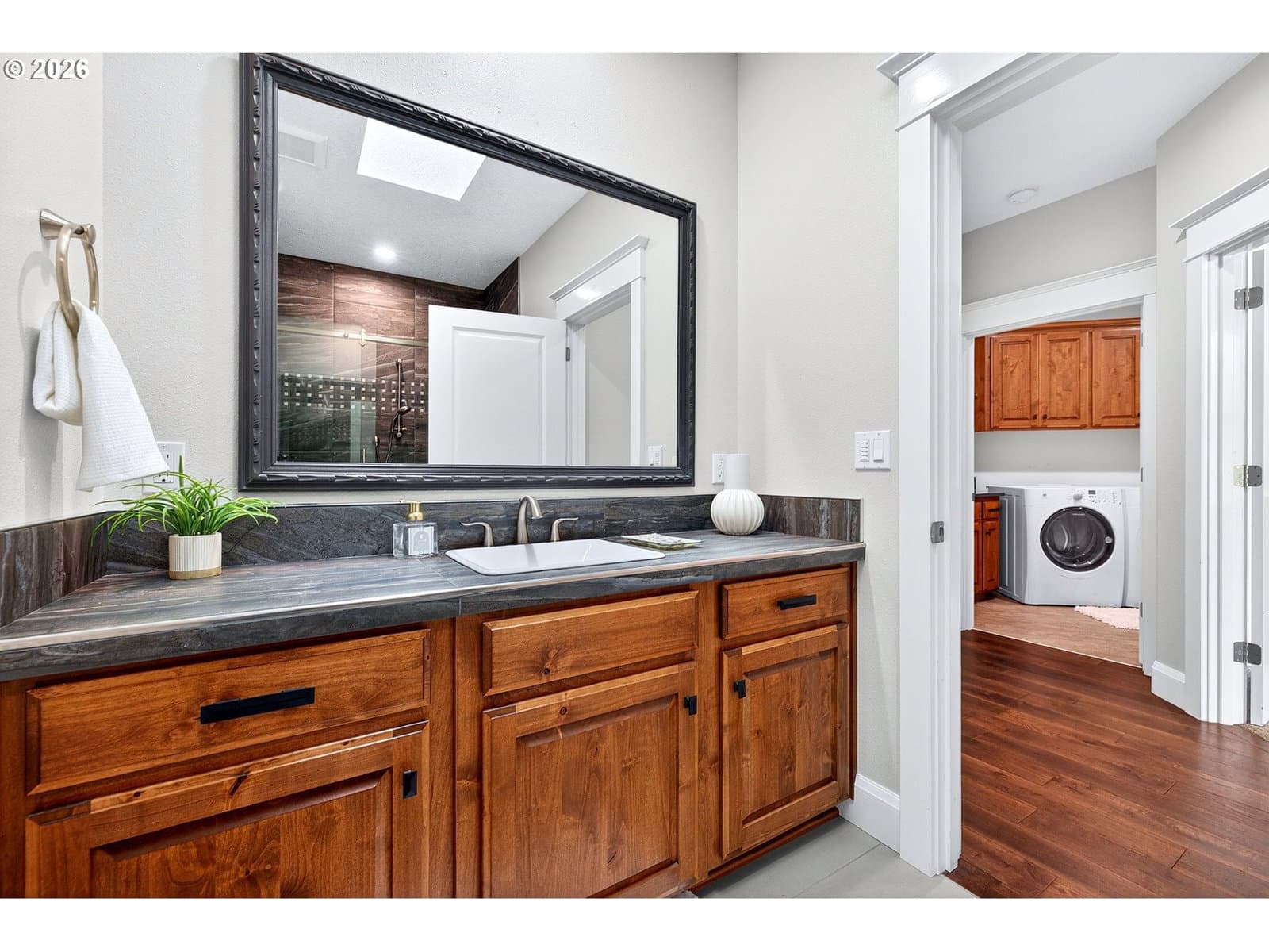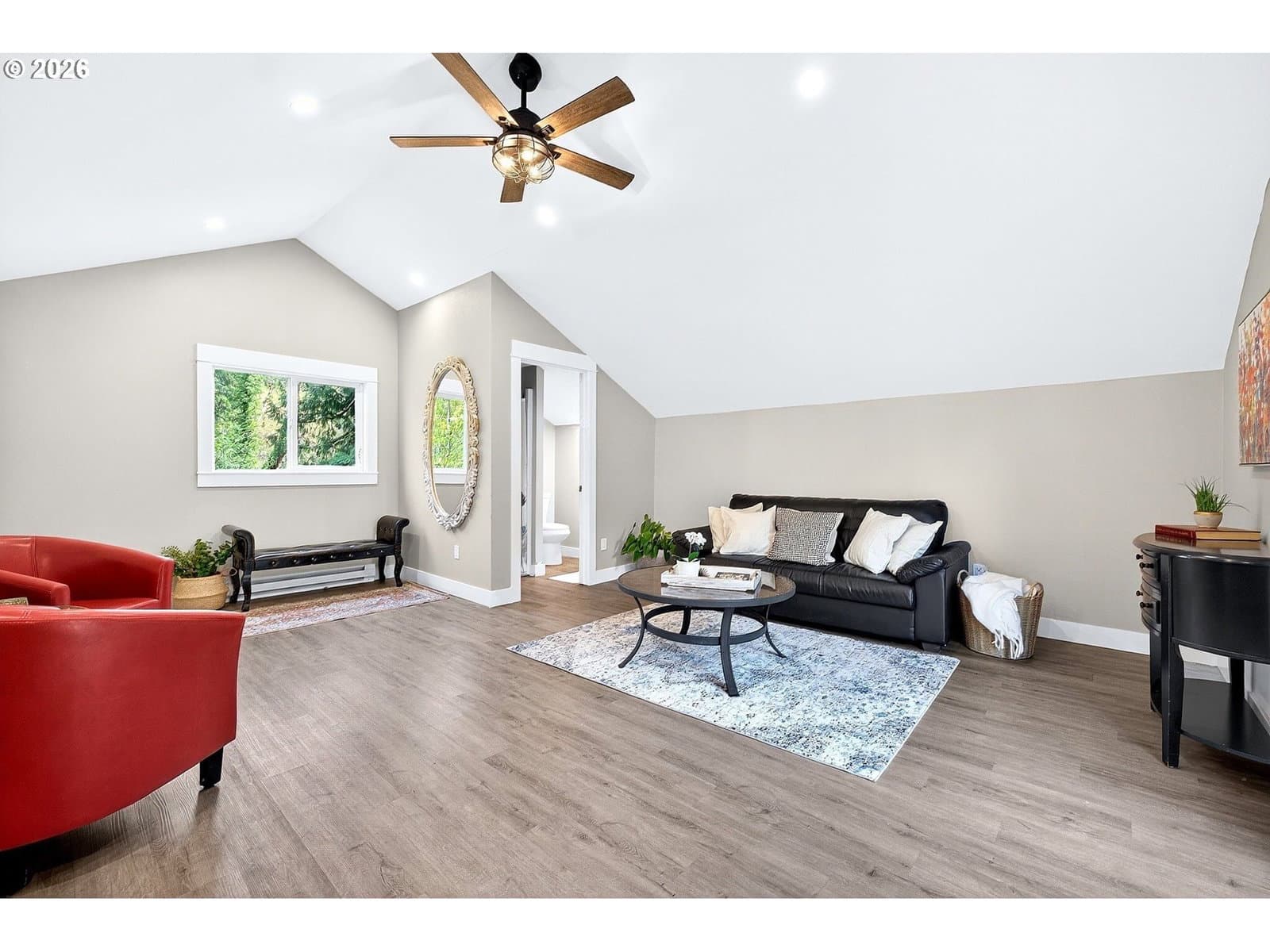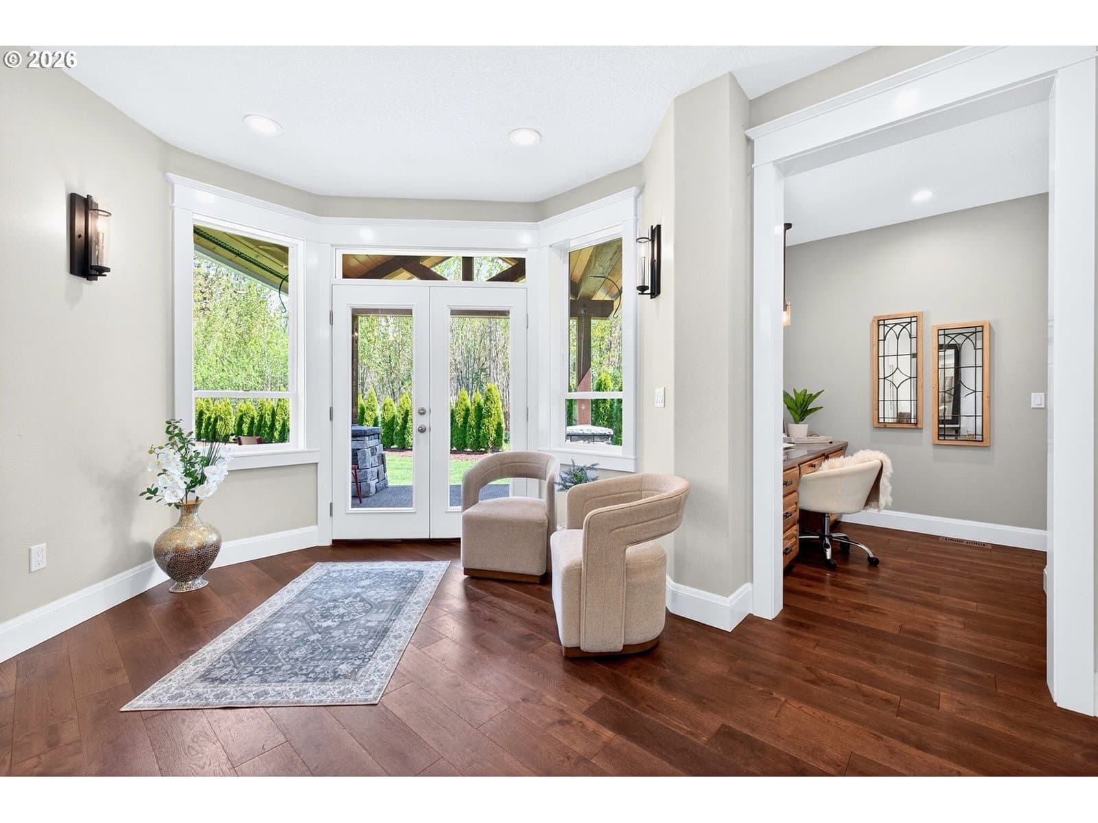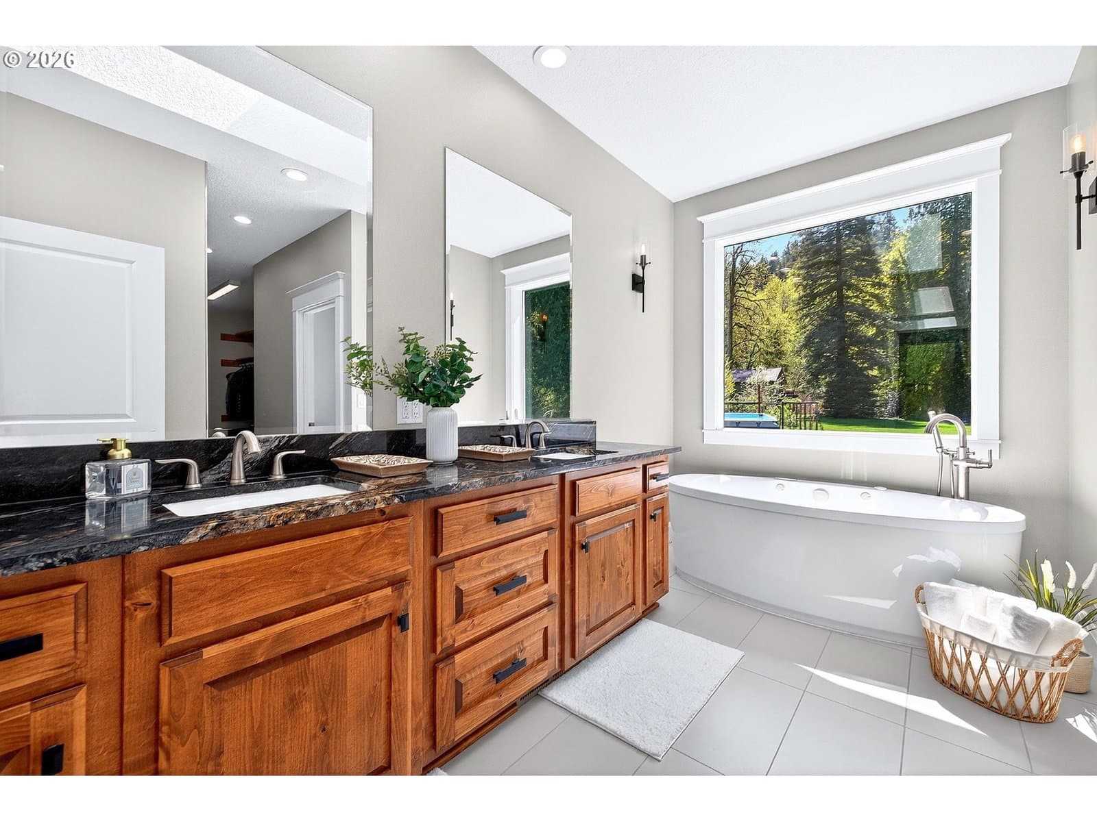 Tucked behind a gated entrance along the tranquil banks of Cedar Creek, this custom-built estate anchored by a picturesque pond offers a truly distinctive setting. Step into an open-concept design filled with natural light, soaring vaulted ceilings, exposed architectural wood beams, espresso-stained white oak hardwood floors, and a stone surround fireplace. The Chef’s kitchen is designed for both daily living and entertaining, showcasing custom knotty alder cabinetry, seamless quartzite slab island, leather granite countertops, double convection ovens, gas range with pot filler, farmhouse sink, second prep sink, dual drawer refrigerators, and a large walk-in pantry. The primary suite features a jetted tub beneath a picture window, an oversized tile walk-in shower, dual vanities, and a spacious walk-in closet with built-ins and closet dresser, and additional laundry hookups. A second ensuite offers flexibility for guests. The third bedroom is complemented by a finished bath with custom cabinetry and stone surfaces. Outdoor living is elevated with both covered and open patio space, featuring tongue-and-groove knotty pine ceiling, wood-burning fireplace, and propane hookup for outdoor cooking. The grounds are thoughtfully designed, featuring a private pond, mature landscaping, fenced garden, fruit trees, and established arborvitae hedges for privacy. Direct Cedar Creek frontage includes both banks and the creek bed with trout fishing. A detached casita perched above a private garage with storage, bathroom, kitchenette, and a balcony overlooking the creek, is ideal for guests, private studio, or multigenerational living. Additional highlights include a three-car garage with convenient half bath, circular paved driveway, and secure gated entry. Close to downtown Sandy along the Mt. Hood corridor, just minutes from world-class skiing, hiking, and year-round recreation, this is a rare opportunity to own an immersive retreat designed for elevated Pacific Northwest living.