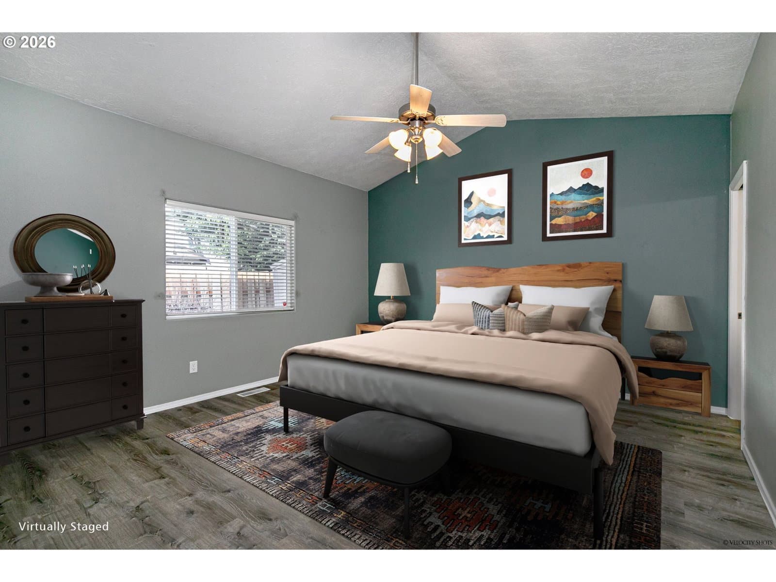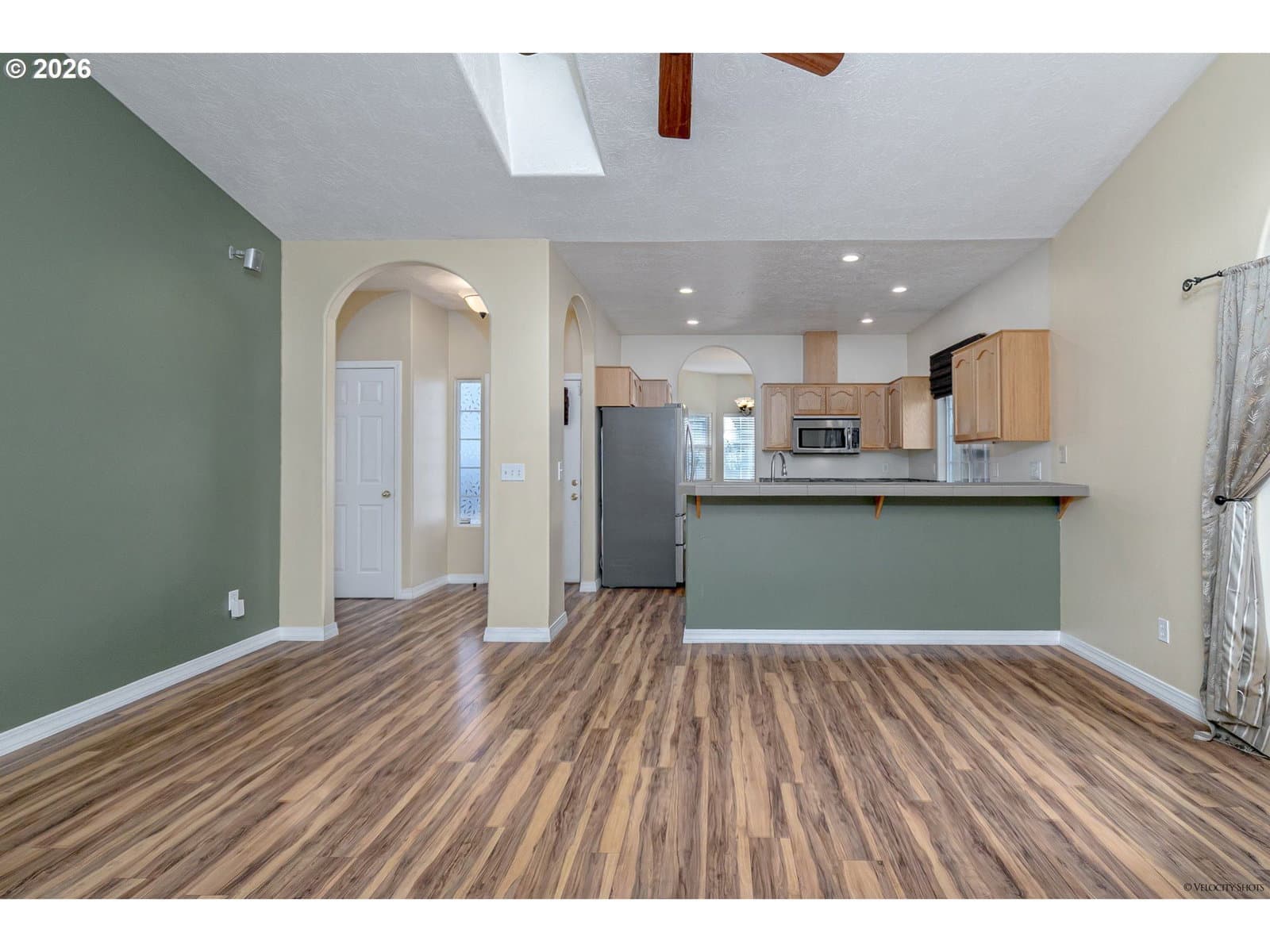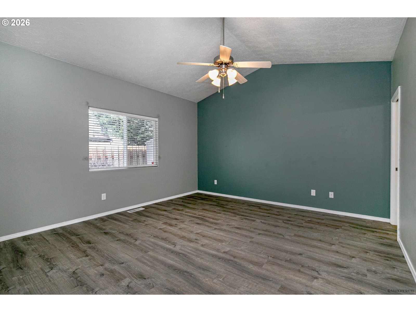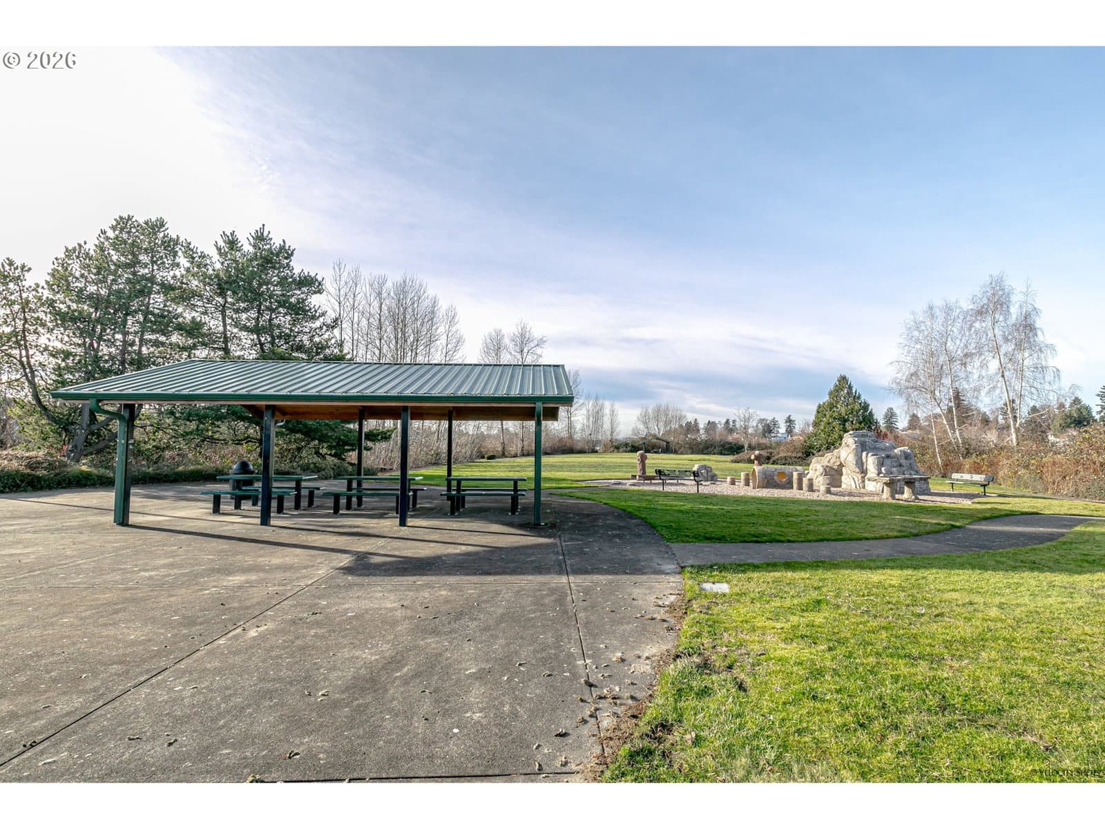 Clean and well-cared-for one-level home featuring a functional floor plan with vaulted ceilings. The living area includes a gas fireplace and is wired for a built-in sound system. Enjoy a private courtyard with a large patio, along with a spacious primary suite offering an attached bathroom and walk-in closet. Conveniently located just blocks from Blue Lake. All appliances are included, including washer, dryer, and refrigerator. The double-car garage features a utility sink. Solar panels help reduce electric costs, and the gas furnace and hot water tank are approximately four years old and recently serviced. Sprinkler systems are installed in both the front and back yards. Recent updates include a new backyard fence and a roof that has been recently treated. HOA maintains the front yard landscaping and subdivision parks