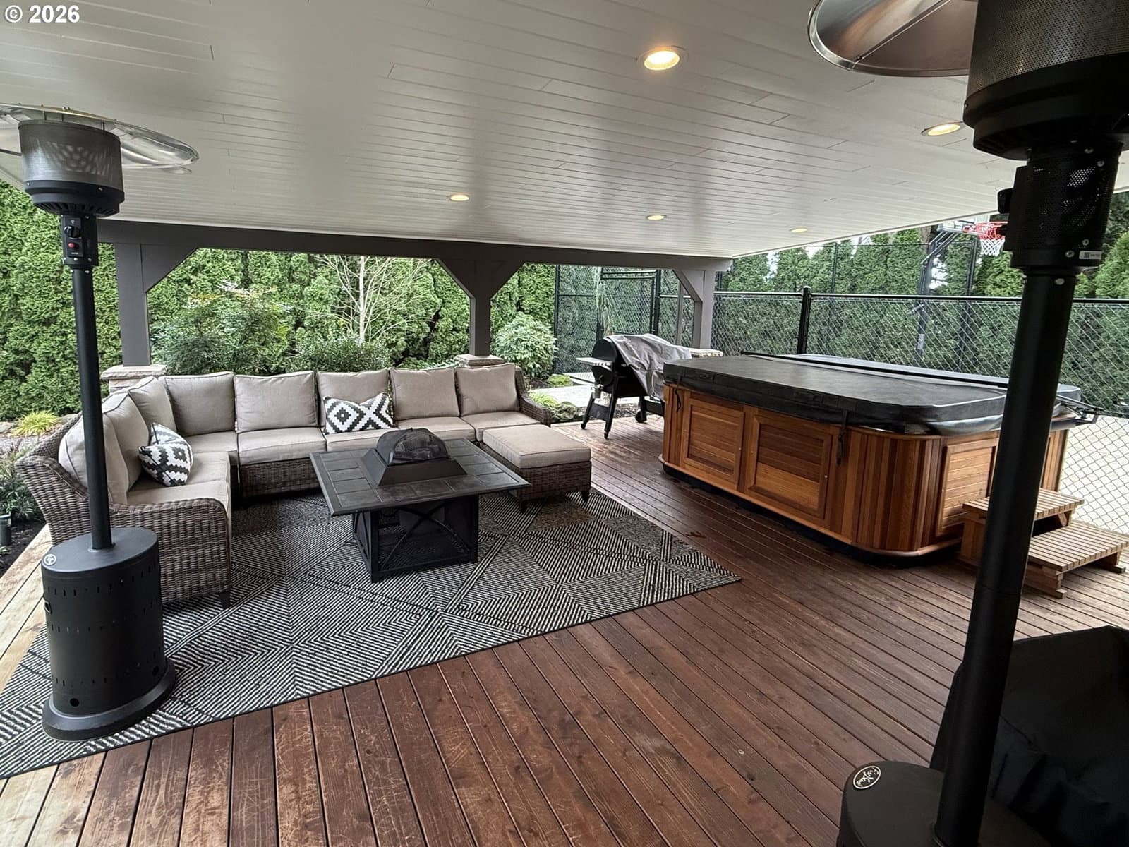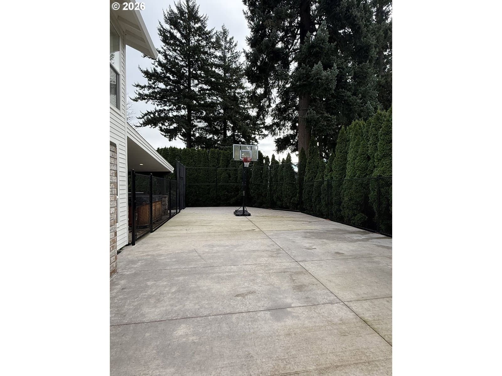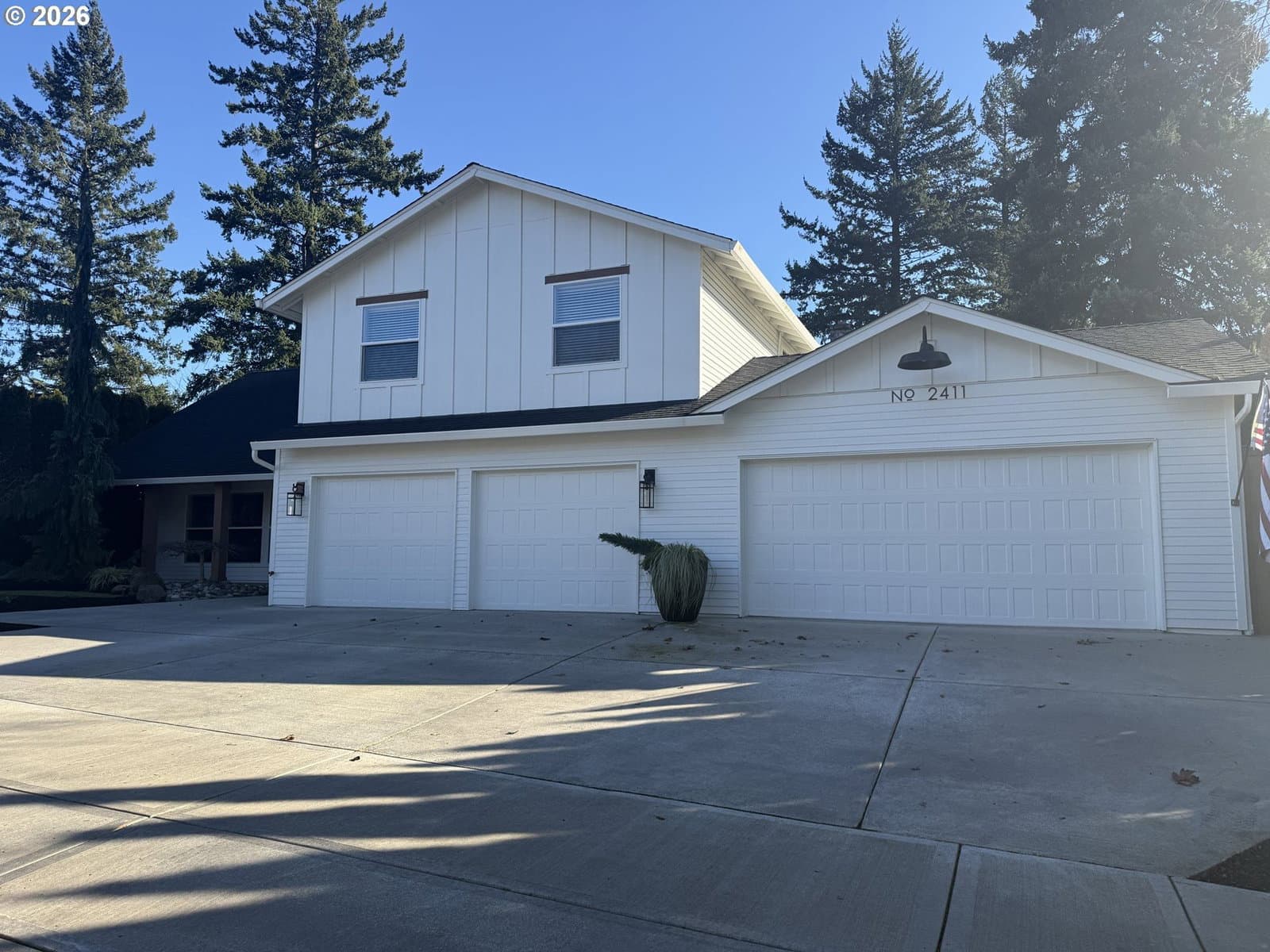 Exceptional curb appeal and standout outdoor living define this 2,958 sq ft two-story home on a private, fully finished quarter-acre lot. A wide 42’ driveway with 36’ approach, high-end professional turf, mature landscaping, low-voltage lighting on timer, and a welcoming covered front porch create an immediate sense of quality and presence. The exterior is further enhanced by new siding, fresh paint, new gutters, and full drip irrigation.Designed for both everyday living and entertaining, the outdoor spaces are exceptional. A 20’ x 25’ covered back deck, accessed by slider off the family room, provides year-round enjoyment and overlooks a professionally hardscaped seating area with a contained fire pit. The entire backyard is thoughtfully framed by 15’ mature arborvitae on drip irrigation, offering rare privacy and a true retreat-like setting.Inside, the main level features a living room, formal dining room, and a kitchen with granite countertops and stainless steel appliances that opens to a spacious family room. A half bath and utility room complete the lower level. Upstairs offers a primary suite with double vanity and walk-in tile shower, three additional bedrooms, a full bath with double vanity, and a large bonus room with walk-in closet. A fully finished four-car garage—configured as two separate two-car spaces—is a rare highlight. The newly added garage functions as a roll-through design with direct access to the 60’ x 24’ sport court enclosed with black chain-link fencing. A 10’ x 6’ storage shed adds convenient outdoor storage.Turn key! Extensive updates include furnace and heat pump (2010), full interior remodel (2012), new roof, skylights, vinyl windows and slider (2019), and major 2024–2025 improvements including garage addition, new driveway and sidewalks, hardscaping, irrigation, professional turf, 400-amp electrical service, new panels, and an 80-gallon commercial-rated hot water tank. dedicated hot tub electric connection.