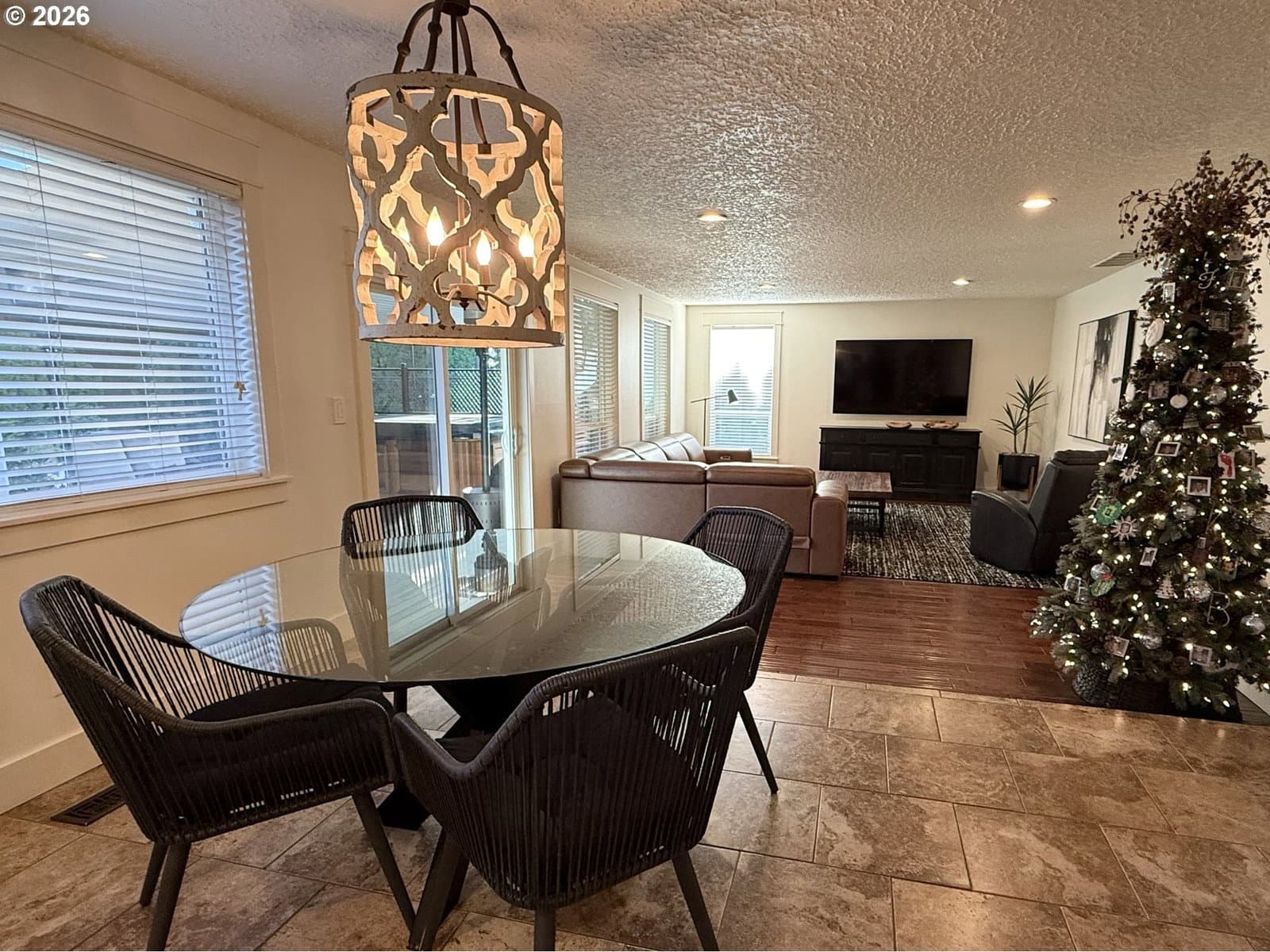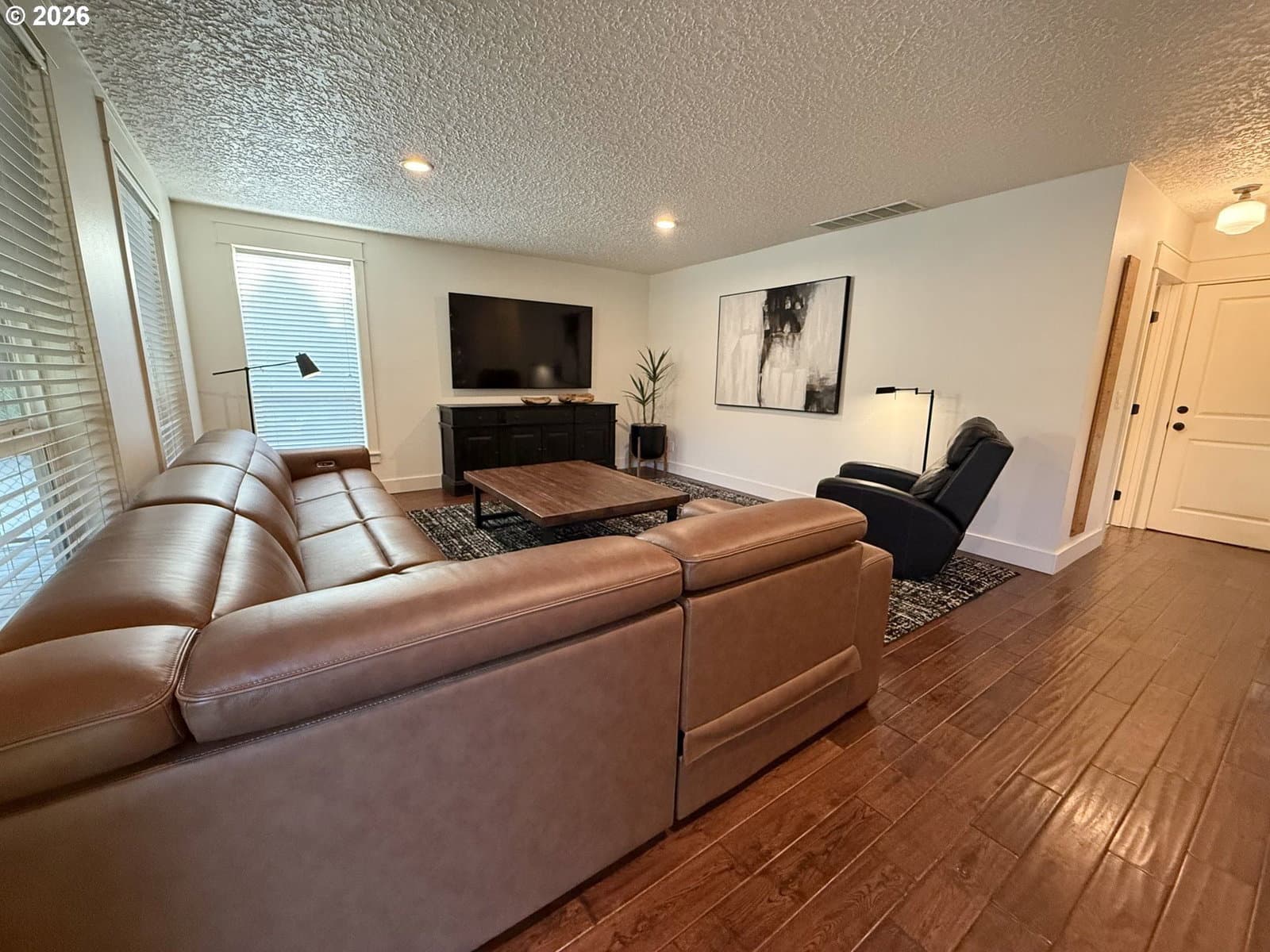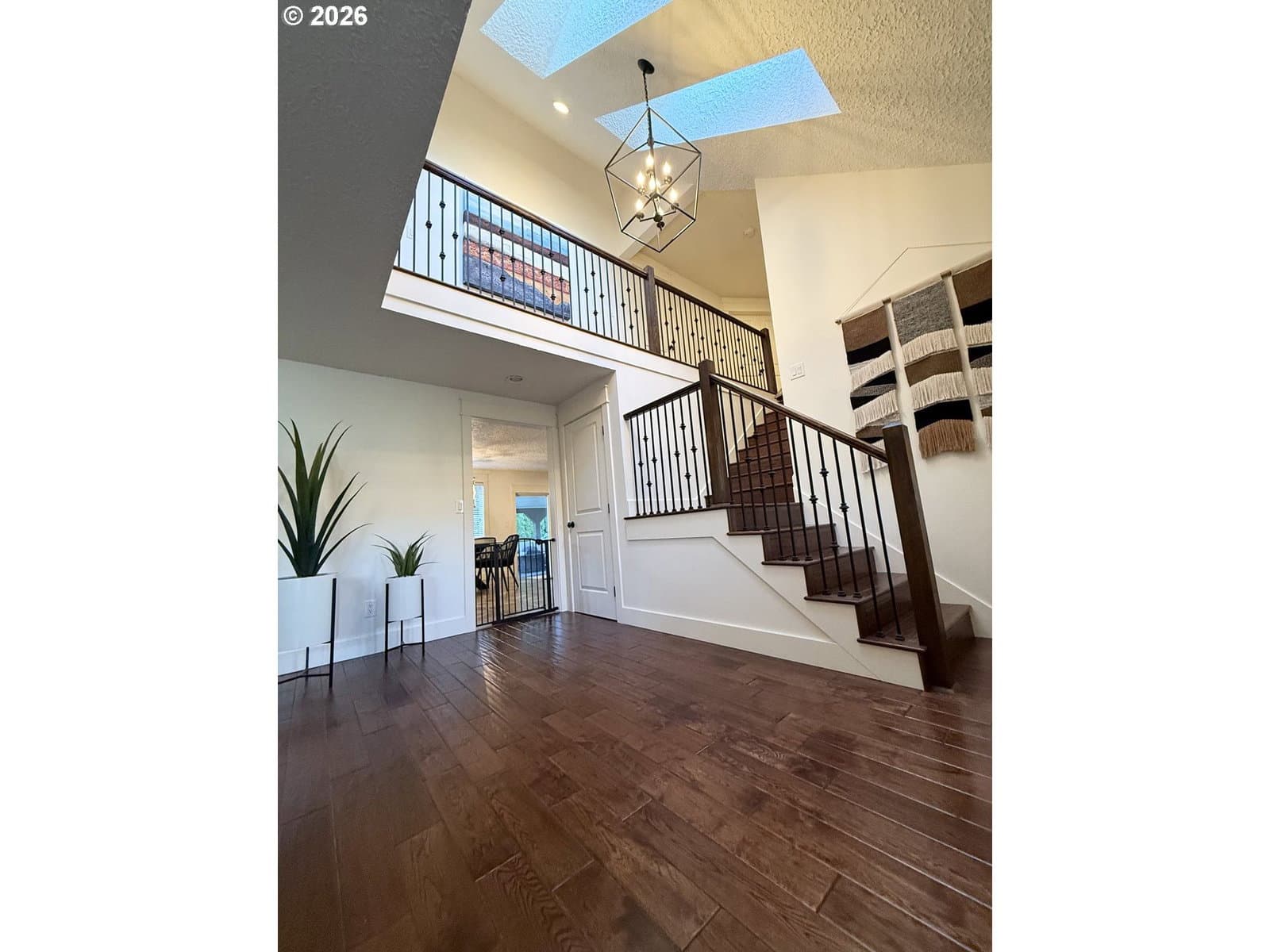 Exceptional curb appeal and standout outdoor living define this 2,958 sq ft two-story home on a private, fully finished quarter-acre lot. A wide 42’ driveway with 36’ approach, high-end professional turf, mature landscaping, low-voltage lighting on timer, and a welcoming covered front porch create an immediate sense of quality and presence. The exterior is further enhanced by new siding, fresh paint, new gutters, and full drip irrigation.Designed for both everyday living and entertaining, the outdoor spaces are exceptional. A 20’ x 25’ covered back deck, accessed by slider off the family room, provides year-round enjoyment and overlooks a professionally hardscaped seating area with a contained fire pit. The entire backyard is thoughtfully framed by 15’ mature arborvitae on drip irrigation, offering rare privacy and a true retreat-like setting.Inside, the main level features a living room, formal dining room, and a kitchen with granite countertops and stainless steel appliances that opens to a spacious family room. A half bath and utility room complete the lower level. Upstairs offers a primary suite with double vanity and walk-in tile shower, three additional bedrooms, a full bath with double vanity, and a large bonus room with walk-in closet. A fully finished four-car garage—configured as two separate two-car spaces—is a rare highlight. The newly added garage functions as a roll-through design with direct access to the 60’ x 24’ sport court enclosed with black chain-link fencing. A 10’ x 6’ storage shed adds convenient outdoor storage.Turn key! Extensive updates include furnace and heat pump (2010), full interior remodel (2012), new roof, skylights, vinyl windows and slider (2019), and major 2024–2025 improvements including garage addition, new driveway and sidewalks, hardscaping, irrigation, professional turf, 400-amp electrical service, new panels, and an 80-gallon commercial-rated hot water tank. dedicated hot tub electric connection.