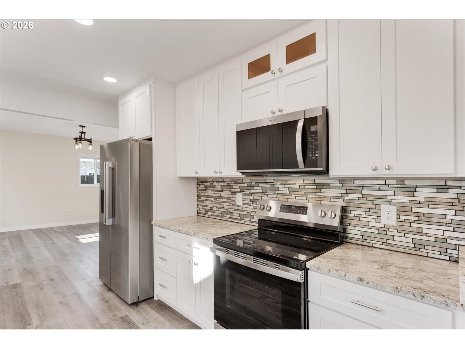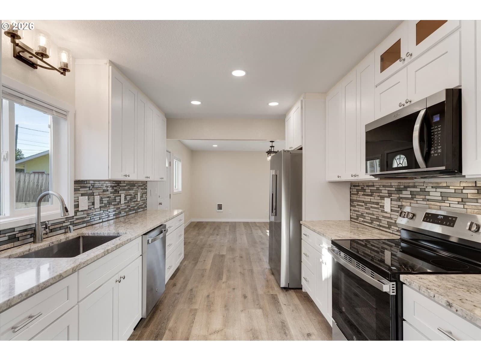 Updated and ready for you! Experience peace of mind in this meticulously renovated 3 bedroom, 2 bathroom gem, located just moments from Lake Sacajawea. 1,444 sq. ft. of beautiful living space, this home offers the reliability of a modern build. The heart of the home is a stunning, fully updated kitchen featuring elegant quartz countertops, new cabinetry, and modern fixtures. No detail has been overlooked; enjoy brand new flooring throughout, updated bathrooms, and significant mechanical upgrades including updated plumbing and wiring. Two Spacious Main Floor Bedrooms. Primary Bedroom has Large Walk-In Closet. Beyond the cosmetic beauty, the detached single car garage provides excellent storage for your vehicle or weekend gear. Skip the "fixer upper" stress—with this fully refreshed home, all that’s left to do is move in and enjoy! Near Shopping, Parks, Basketball Courts, Tennis Courts, Playgrounds, and easy access to I-5.