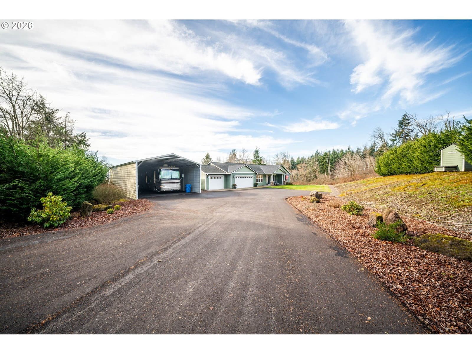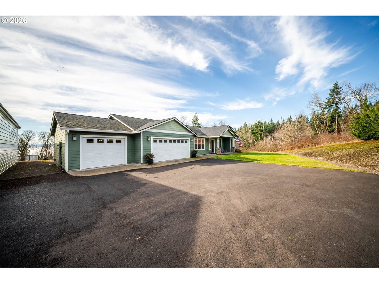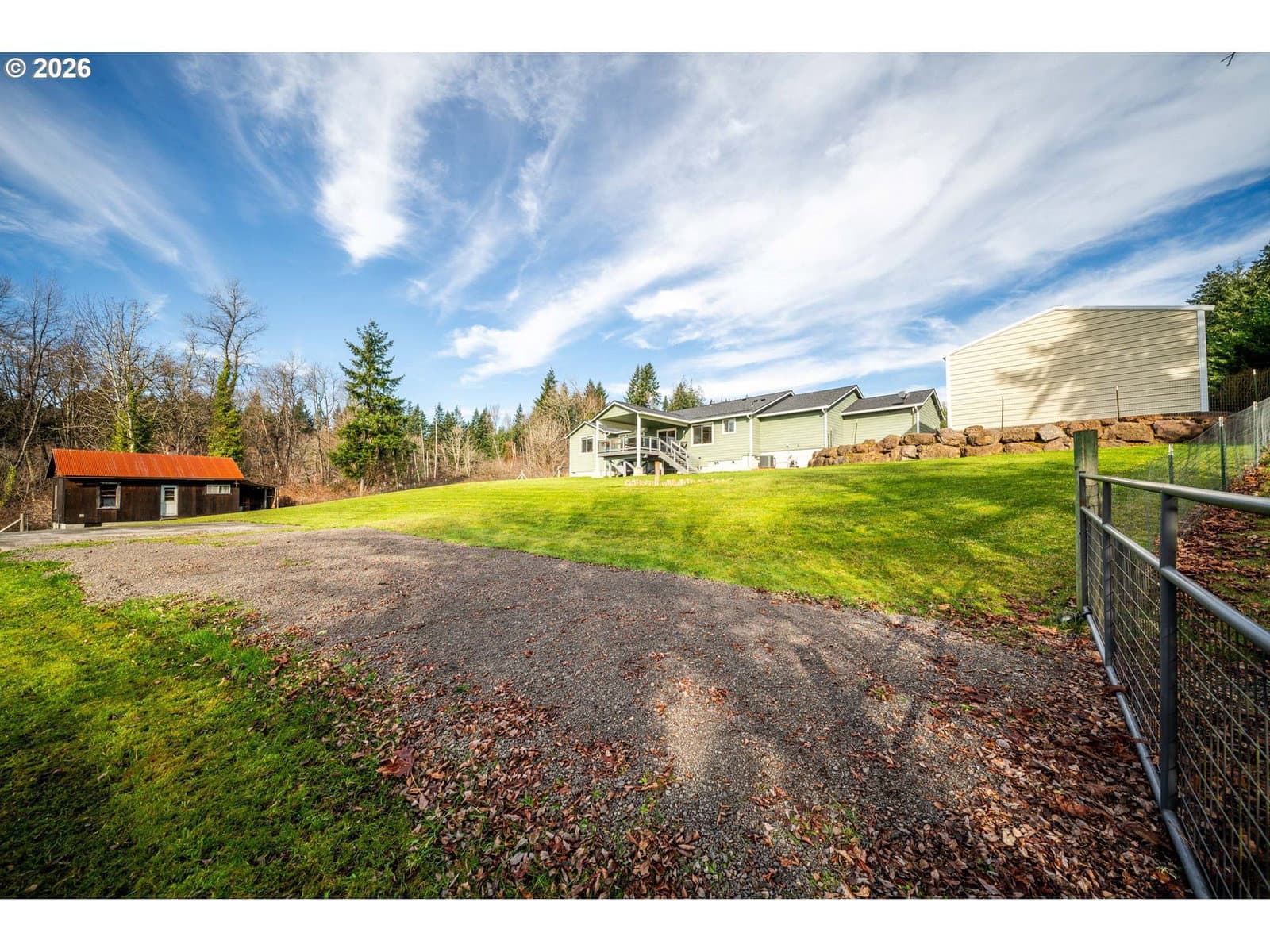 Discover this beautifully maintained single-story home on ~2.67 acres overlooking the Columbia River in the lovely community of Kalama! Step inside to find high ceilings, a spacious dining room and kitchen with granite countertops, stainless appliances, and a corner pantry — perfect for entertaining or comfortable everyday living. Pride of ownership shines throughout with thoughtful finishes, manicured landscaping, and a warm, inviting feel. The home offers a finished 3-car garage with built-in cabinets and custom workshop space, plus an impressive 25x50 detached metal shop with pavement under providing ample space for your boat, tractor, RV, or toys! Outside you'll enjoy loads of paved parking, a stone-accented covered porch entry, a fenced yard, and a covered back deck ideal for relaxing while taking in the view. The property also includes a charming old homestead structure —currently used for storage — with a rustic sauna inside, and three driveway approaches for convenient access. With city water and septic, PLUS a private well for irrigation, this home blends comfort and practicality. A 50-year roof adds peace of mind, and the location offers the perfect balance of privacy and convenience — just minutes from town and freeway access. A rare find combining space, views, and a one-level layout that you don't want to miss!