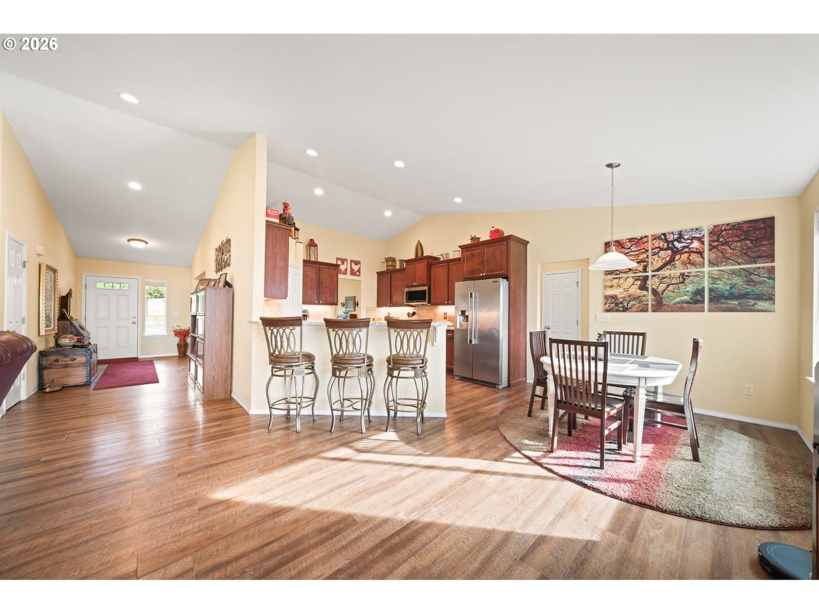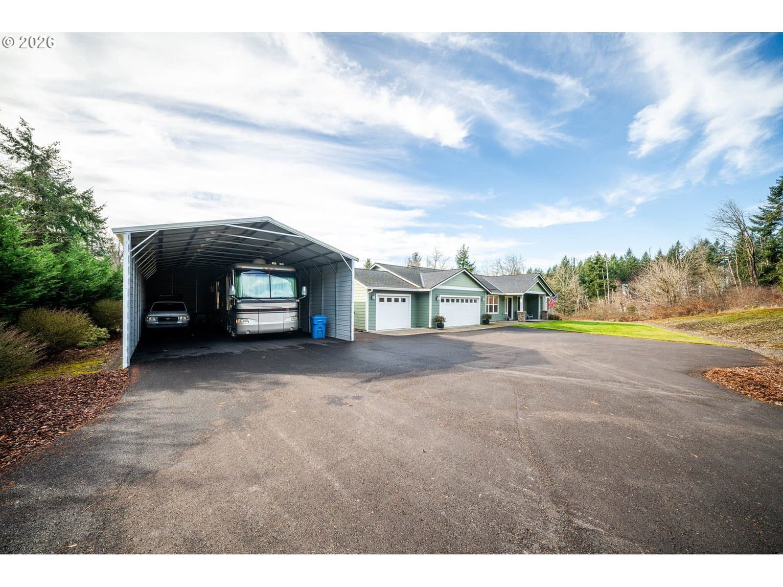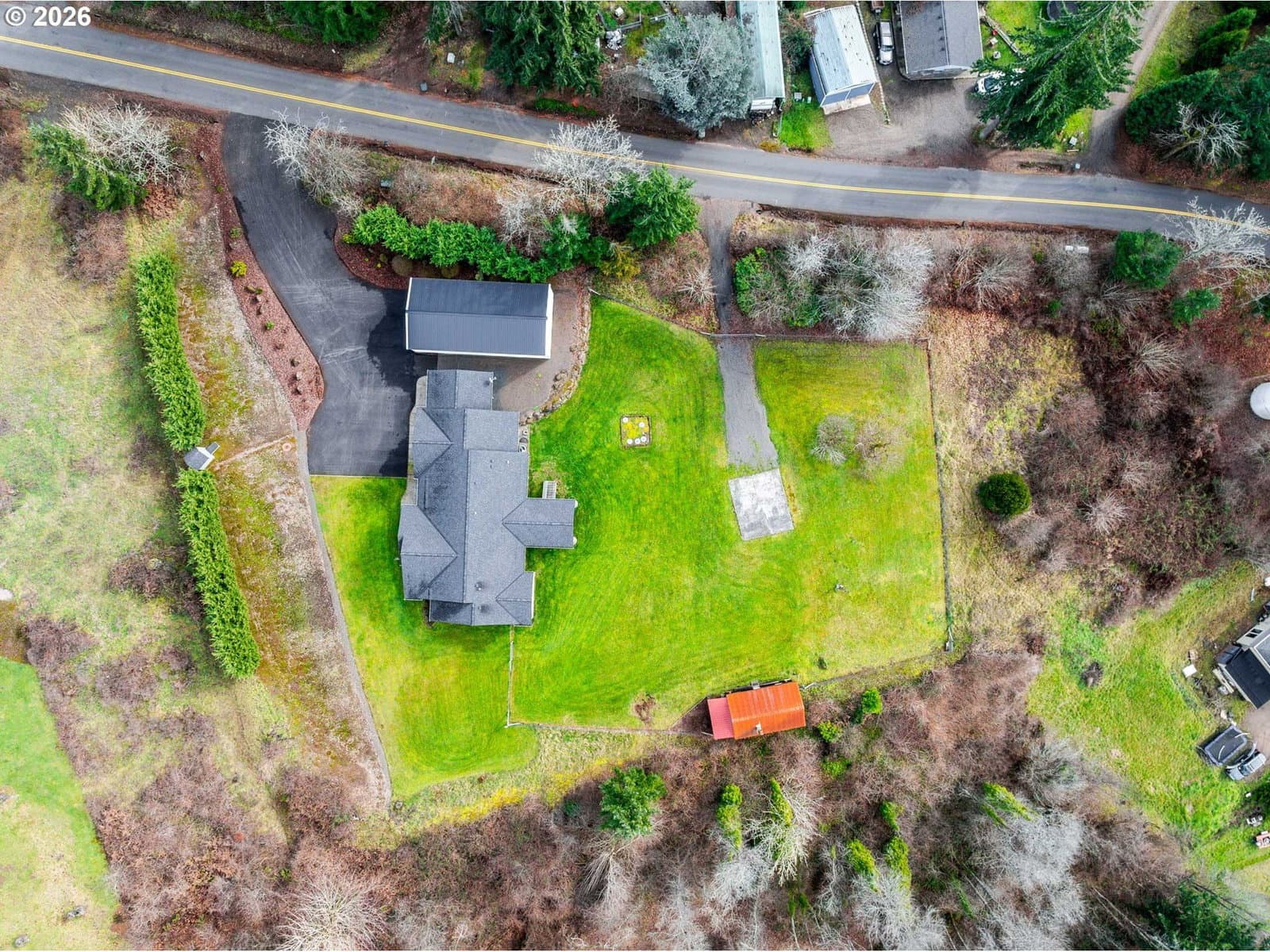Discover this beautifully maintained single-story home on ~2.67 acres overlooking the Columbia River in the lovely community of Kalama! Step inside to find high ceilings, a spacious dining room and kitchen with granite countertops, stainless appliances, and a corner pantry — perfect for entertaining or comfortable everyday living. Pride of ownership shines throughout with thoughtful finishes, manicured landscaping, and a warm, inviting feel. The home offers a finished 3-car garage with built-in cabinets and custom workshop space, plus an impressive 25x50 detached metal shop with pavement under providing ample space for your boat, tractor, RV, or toys! Outside you'll enjoy loads of paved parking, a stone-accented covered porch entry, a fenced yard, and a covered back deck ideal for relaxing while taking in the view. The property also includes a charming old homestead structure —currently used for storage — with a rustic sauna inside, and three driveway approaches for convenient access. With city water and septic, PLUS a private well for irrigation, this home blends comfort and practicality. A 50-year roof adds peace of mind, and the location offers the perfect balance of privacy and convenience — just minutes from town and freeway access. A rare find combining space, views, and a one-level layout that you don't want to miss!