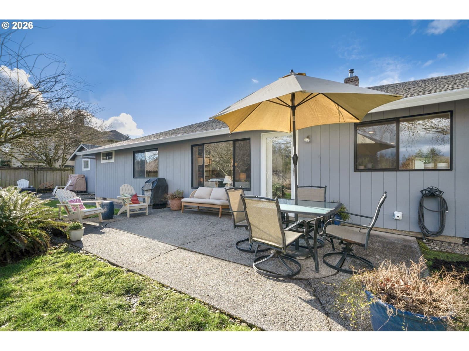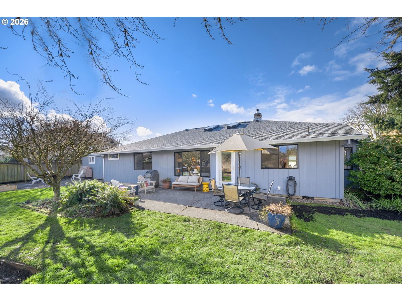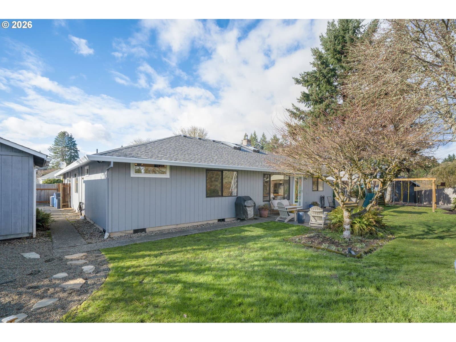 Tucked away at the end of a quiet dead-end street in Ridgefield, this secluded corner-lot retreat sits on a rare, level .31-acre lot and offers the perfect blend of privacy, comfort, and lifestyle. The true showstopper? Direct backyard access to over 6 miles of scenic walking trails. Step outside your gate and instantly connect to miles of winding paths, open green space, and breathtaking views — a daily backdrop for morning walks, sunset strolls, and peaceful outdoor living.From the moment you arrive, manicured landscaping and undeniable curb appeal set the tone. This beautifully maintained single-level home features 3 bedrooms, 2 full baths, and a spacious 2-car garage, thoughtfully designed for effortless living. Inside, lvp floors flow through open-concept living areas, with vaulted ceilings in the great room, and pellet stove create a bright, airy ambiance. The kitchen is both stylish and functional, showcasing striking two-tone cabinetry, white quartz countertops, an inviting eating bar, and a charming breakfast nook. Adding incredible versatility, the detached shop has been thoughtfully converted into a fully finished home office — ideal for remote work, creative space, or a private retreat away from the main home. The side yard offers ample space with potential for boat parking, making this property as practical as it is beautiful. The private primary suite includes an en-suite bath with a walk-in shower, walk in closet creating a clean and comfortable escape. Outside, the oversized patio overlooks a large, level, fully fenced backyard — perfect for gatherings, play, or simply enjoying the quiet surroundings. Rarely does a home combine usable .31-acre space, flexible work-from -home options, parking versatility, and unmatched trail access in one exceptional setting.
