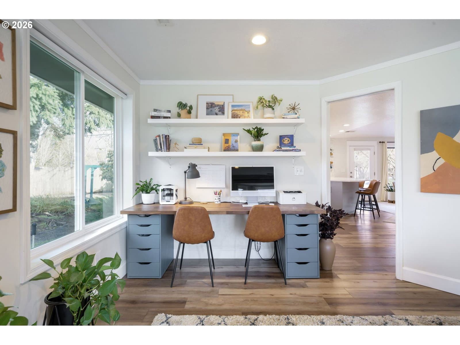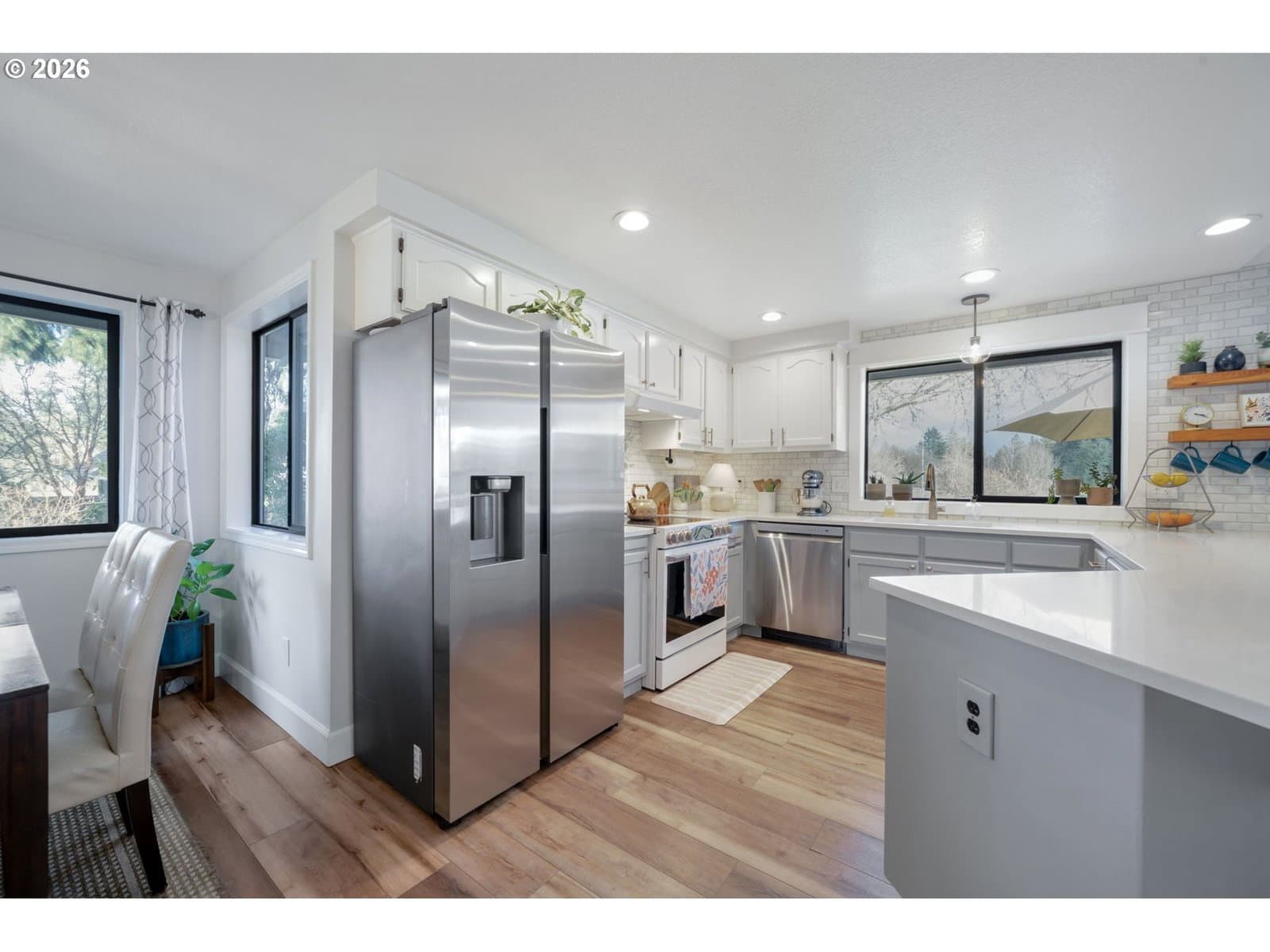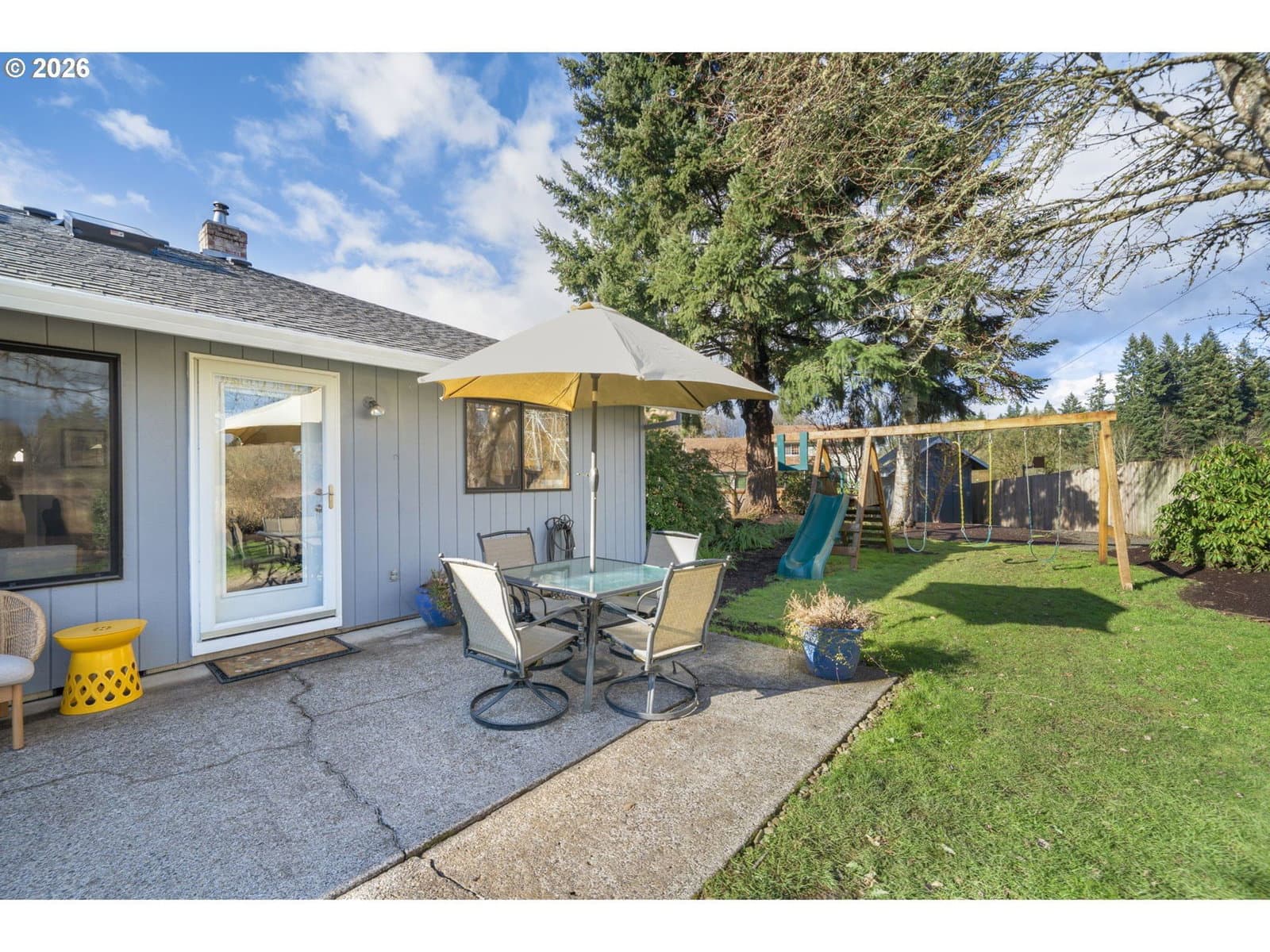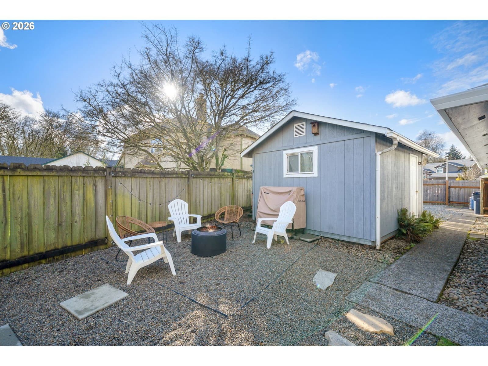 Tucked away at the end of a quiet dead-end street in Ridgefield, this secluded corner-lot retreat sits on a rare, level .31-acre lot and offers the perfect blend of privacy, comfort, and lifestyle. The true showstopper? Direct backyard access to over 6 miles of scenic walking trails. Step outside your gate and instantly connect to miles of winding paths, open green space, and breathtaking views — a daily backdrop for morning walks, sunset strolls, and peaceful outdoor living.From the moment you arrive, manicured landscaping and undeniable curb appeal set the tone. This beautifully maintained single-level home features 3 bedrooms, 2 full baths, and a spacious 2-car garage, thoughtfully designed for effortless living. Inside, lvp floors flow through open-concept living areas, with vaulted ceilings in the great room, and pellet stove create a bright, airy ambiance. The kitchen is both stylish and functional, showcasing striking two-tone cabinetry, white quartz countertops, an inviting eating bar, and a charming breakfast nook. Adding incredible versatility, the detached shop has been thoughtfully converted into a fully finished home office — ideal for remote work, creative space, or a private retreat away from the main home. The side yard offers ample space with potential for boat parking, making this property as practical as it is beautiful. The private primary suite includes an en-suite bath with a walk-in shower, walk in closet creating a clean and comfortable escape. Outside, the oversized patio overlooks a large, level, fully fenced backyard — perfect for gatherings, play, or simply enjoying the quiet surroundings. Rarely does a home combine usable .31-acre space, flexible work-from -home options, parking versatility, and unmatched trail access in one exceptional setting.