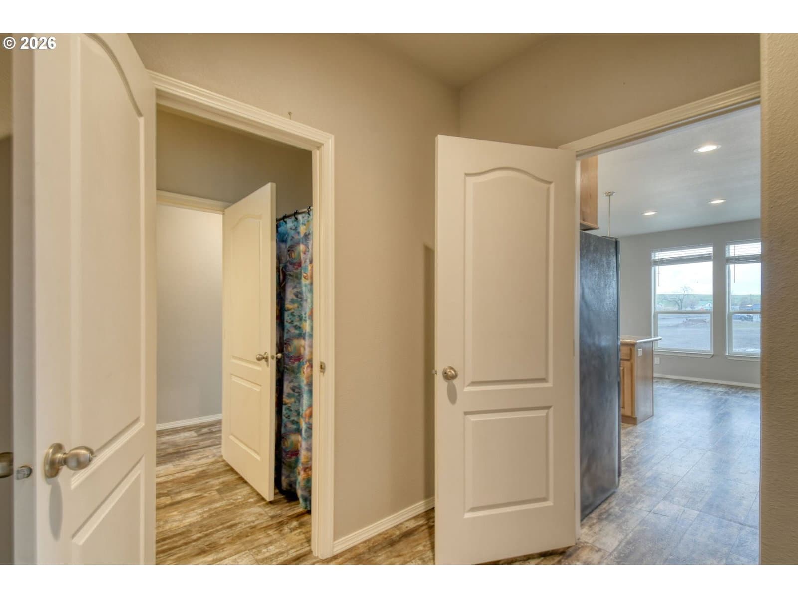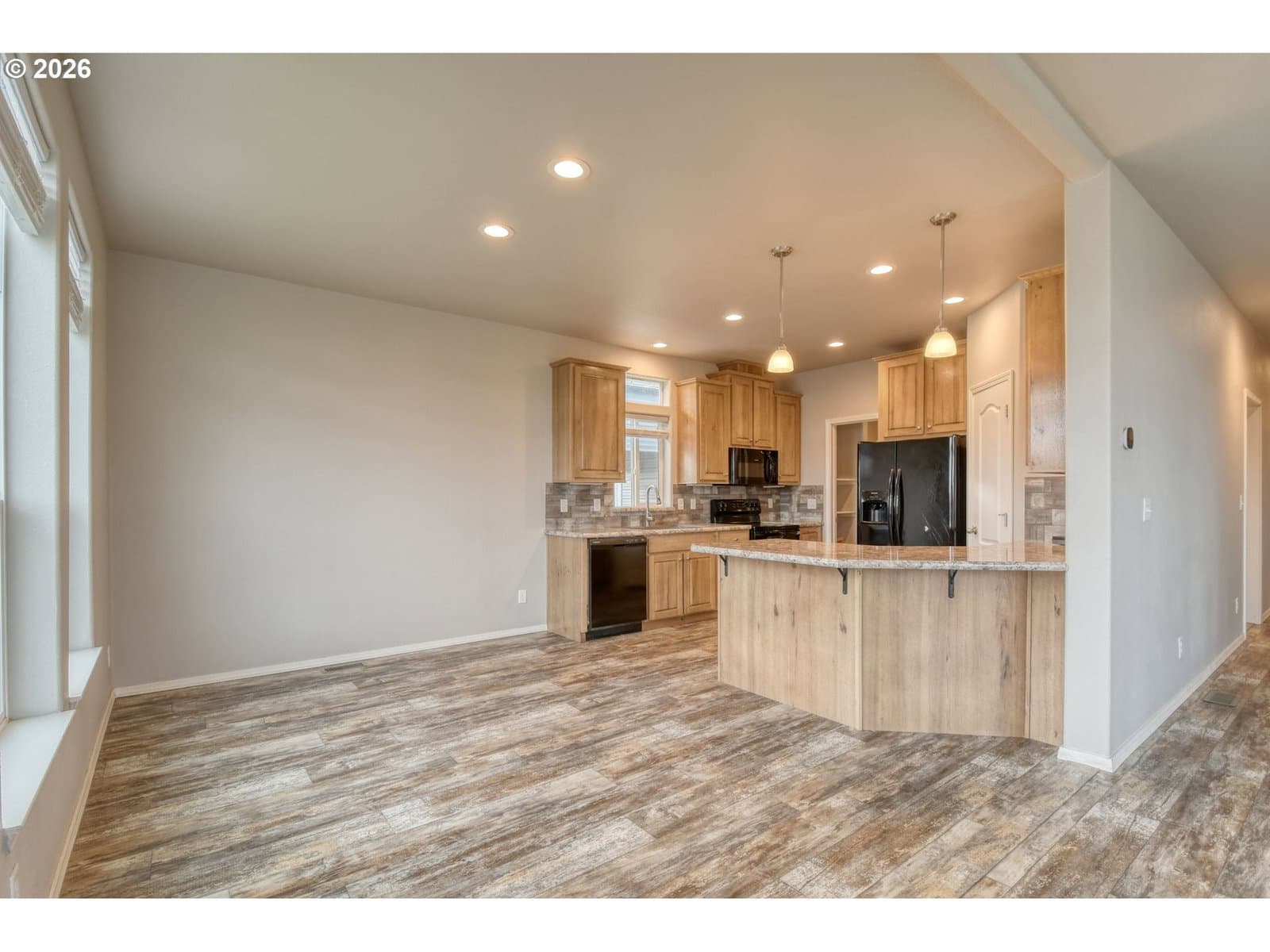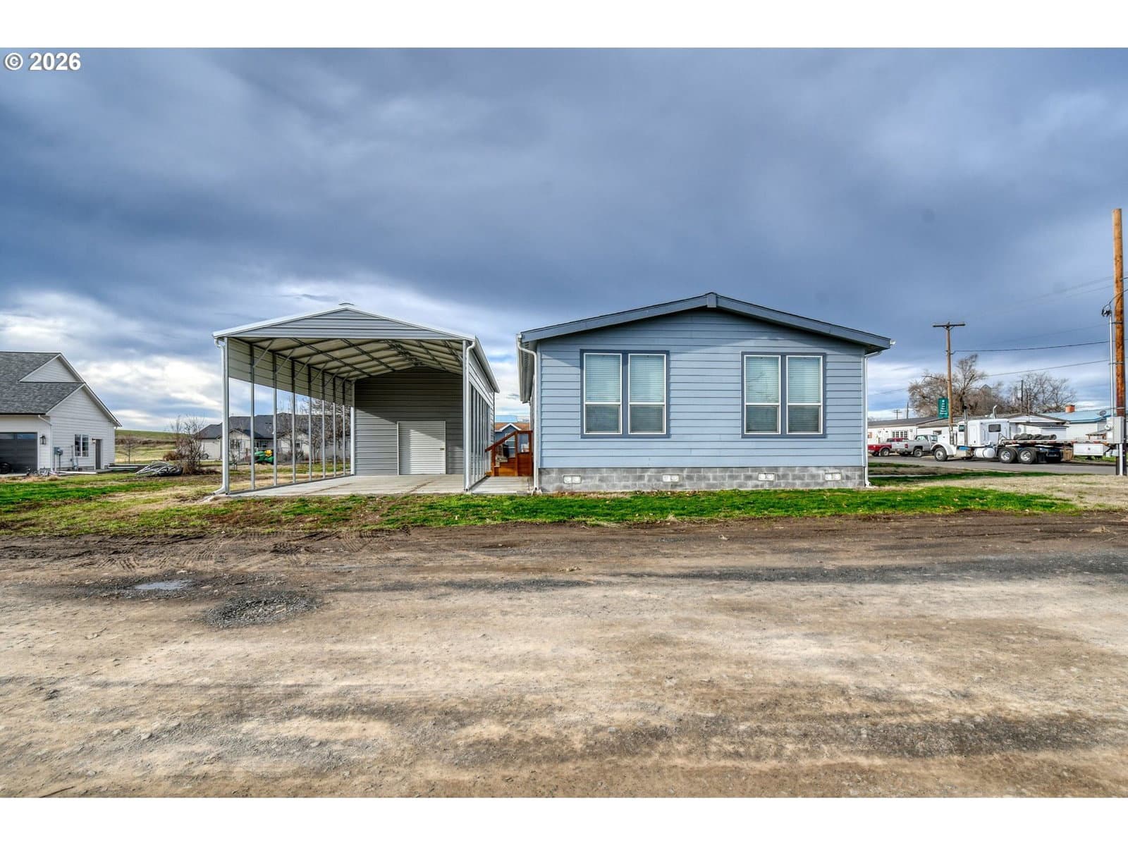 HELIX/RARE. Located in the peaceful town of Helix, OR which invites you to slow down and connect with community. Just a few blocks from the renown Helix School. Step inside and be pleasantly surprised by the openness and inviting charm of this beautiful home. The tile faced fireplace in the living room is great for cozy winter evenings. The kitchen features a stylish tile backsplash, warm wood cabinetry, built-in microwave hood and glass top stove. Abundant, oversized windows fill the space with natural light that is accentuated by the 9 foot ceilings. The den could be used as a third bedroom. The primary suite features a private bathroom with walk-in shower. 3rd bedroom does not have a closet. The exterior provides an over-sized carport with secure storage, fiber cement lap siding and an extra lot for expansion or other future needs. The home was placed and completed with great care and design.
