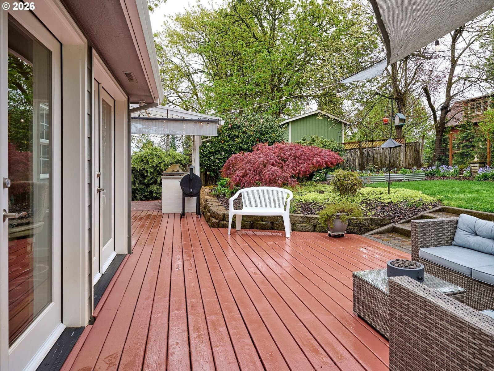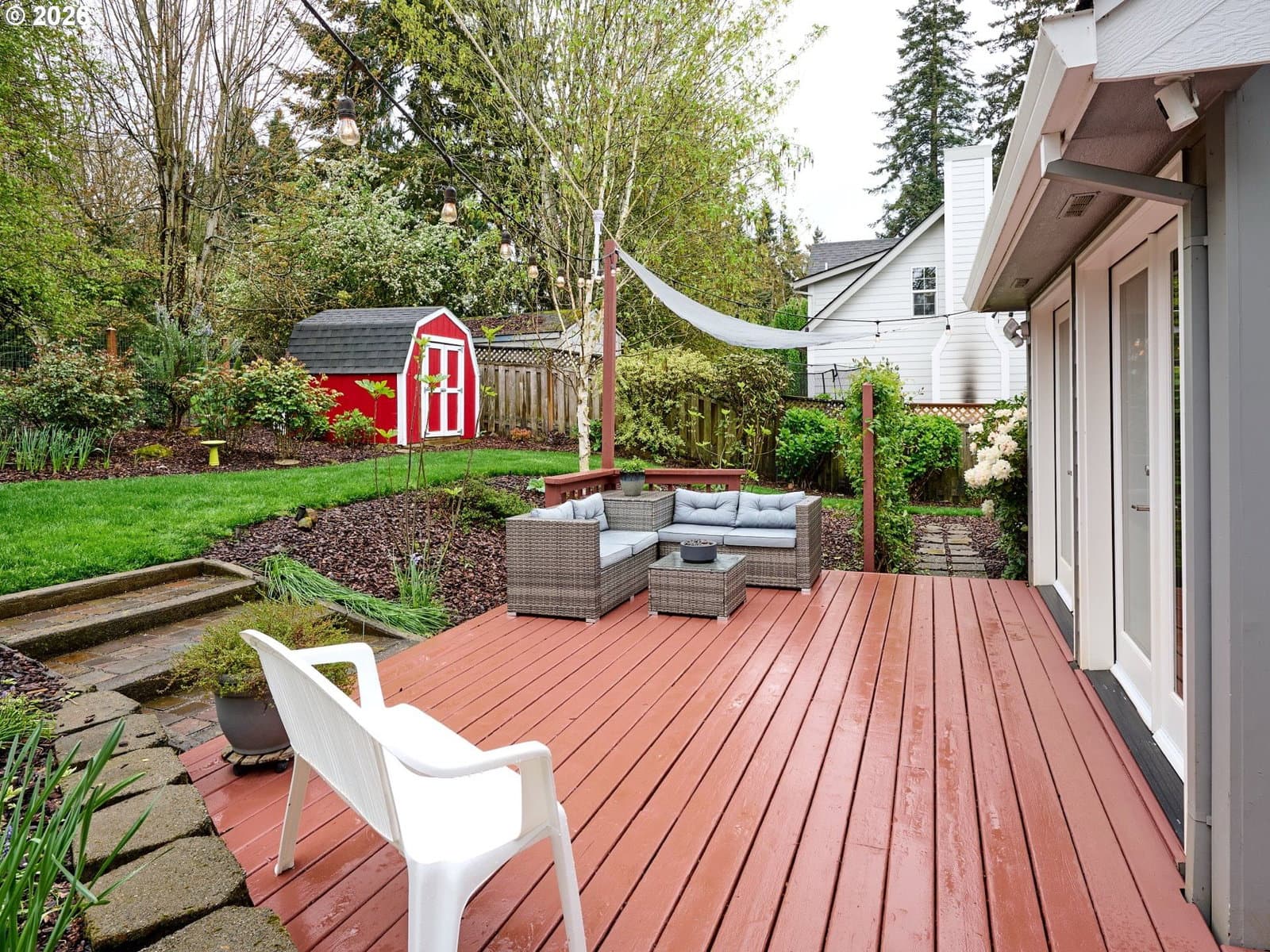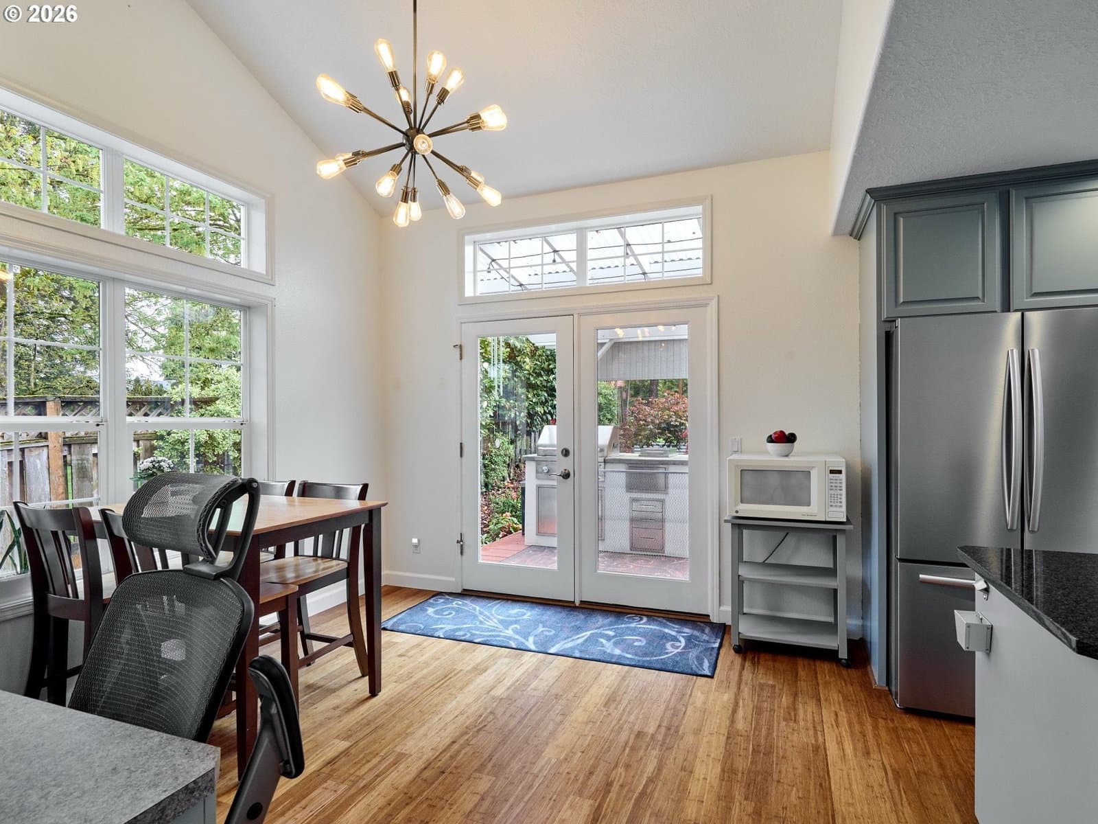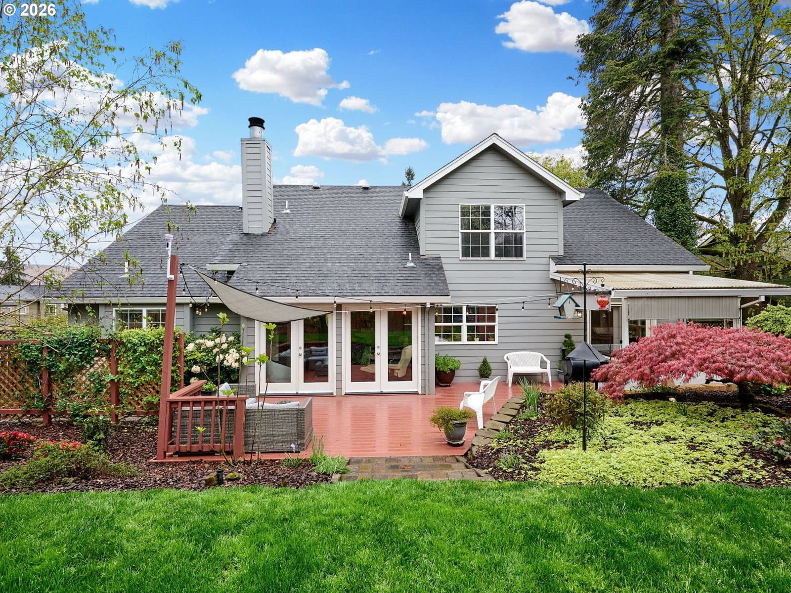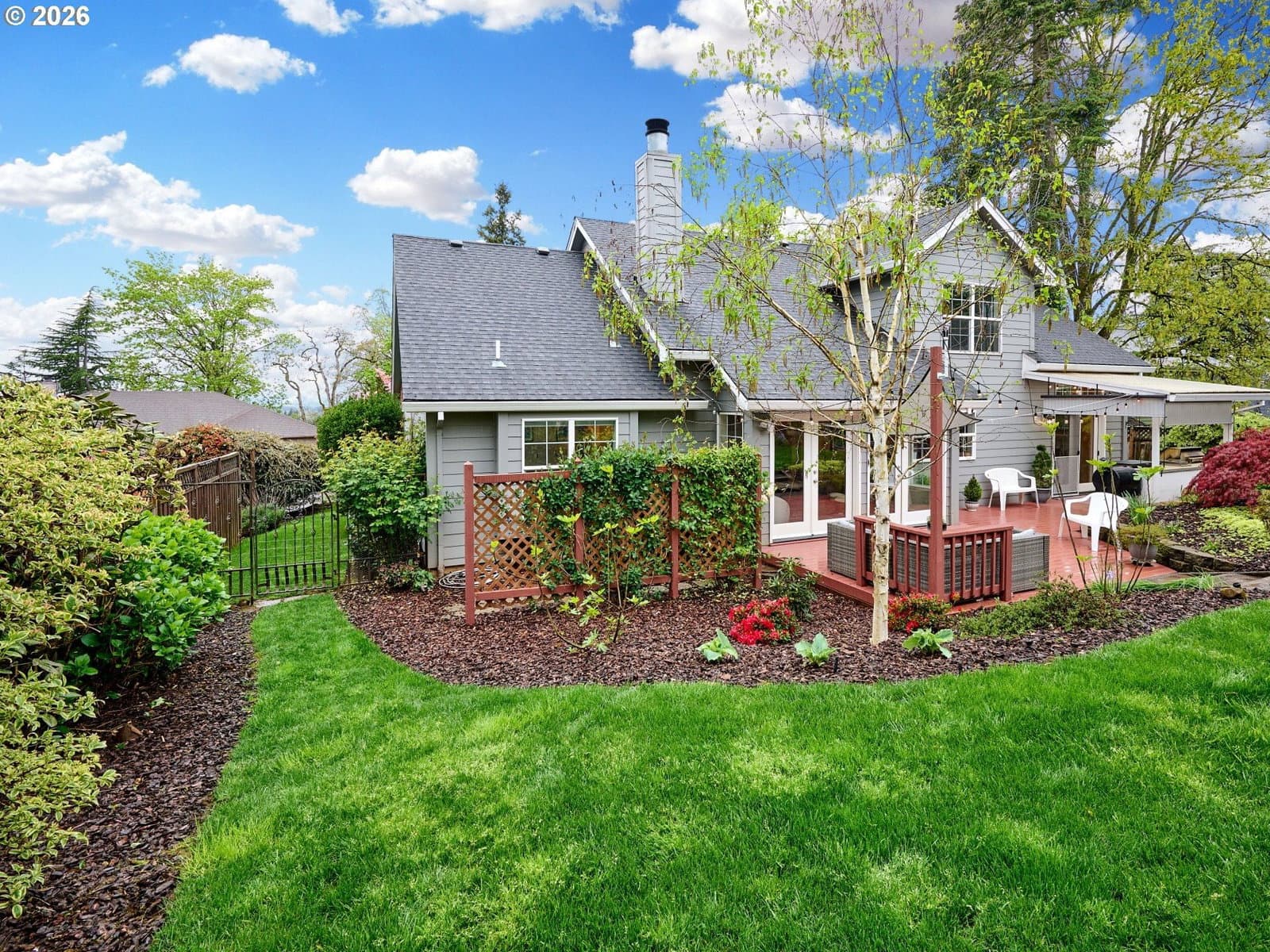 Located on quiet Silverton cul-de-sac, this stately 2-story, 3 bed, 2½ bath home rests on gently sloping .20-acre lot w/ lovely views & has a great layout for easy living. The main level features a primary suite w/ jetted soaking tub & tile surround, walk-in shower, double sinks & a spacious walk-in closet. New highly-durable Fossilized® Cali bamboo flooring flows through the kitchen, living room, dining room, ½ bath & laundry room, creating a cohesive feel throughout. A gas fireplace anchors the living room, where French doors open to the backyard, filling the space w/ natural light & extending the living area in a strong indoor-outdoor connection. The kitchen’s cooking island w/ new glass cooktop, double ovens, stainless steel appliances, water purifier, wine cooler & walk-in pantry support both daily routines & entertaining. In addition to the formal dining room, a breakfast nook & built-in desk/work station sit just off the kitchen, w/ additional French doors leading outside, further connecting the home to the fully-fenced backyard & beautiful garden surroundings. As the weather warms, life naturally expands to the covered outdoor kitchen, where a grill, griddle, burner & gas hookup make outdoor cooking & gathering a breeze. Raised garden beds, arched trellis & two fig trees provide fresh seasonal produce at your doorstep, while established landscaping adds color, sweet fragrance & privacy. Upstairs, 2 more large bedrooms w/ big closets & a second full bath provide flexible space for guests, work or additional living needs. Other great aspects are the high ceilings throughout, fast internet, central air, forced air heating & double-pane vinyl windows. The 2-car garage is EV-ready & includes a large storage loft & air compressor. The property also offers a nice covered front porch, in-ground sprinkler system & tool shed. No HOA. A clean, well-designed home where daily life flows easily & outdoor spaces are just as enjoyable as what's inside.