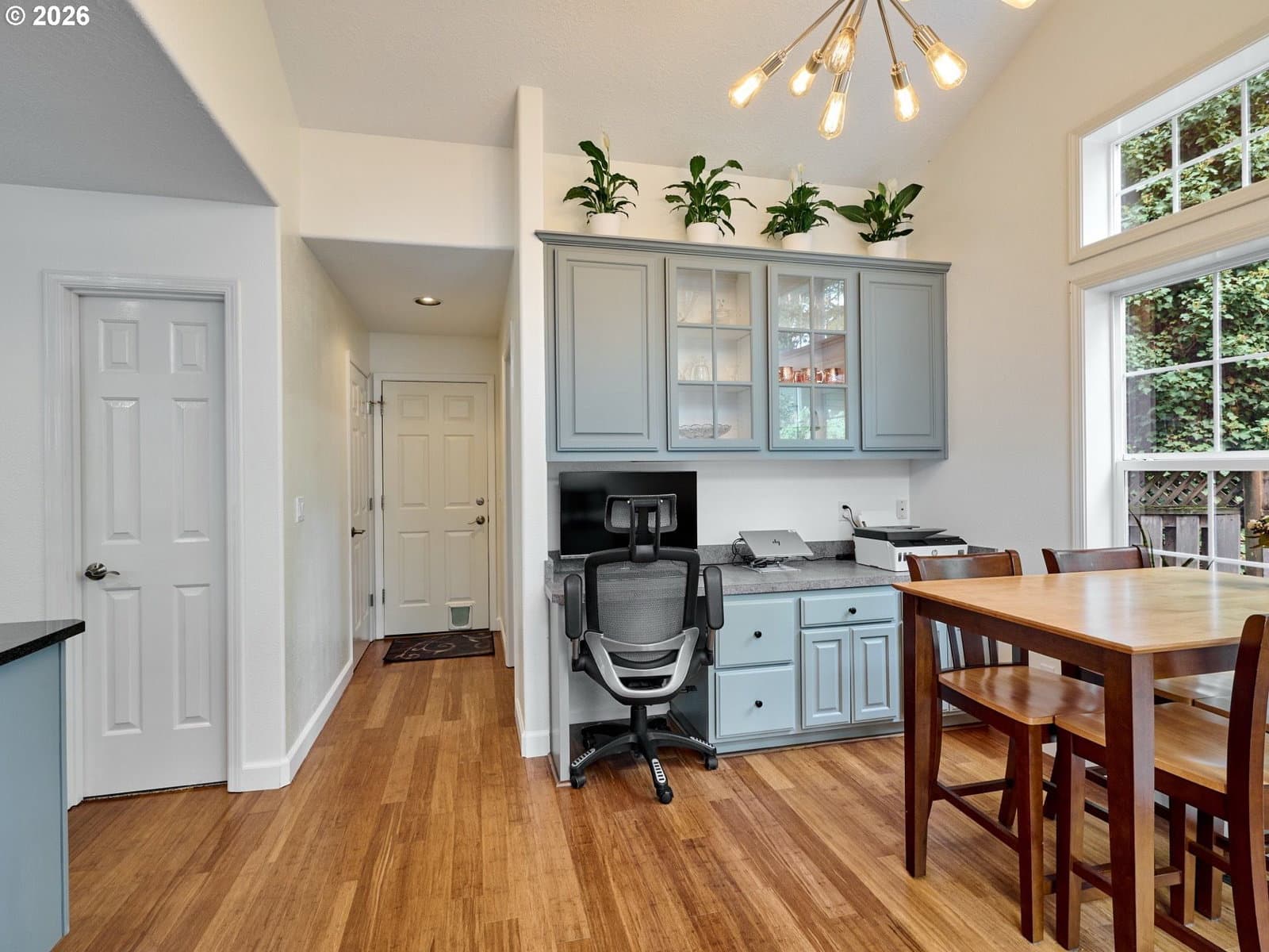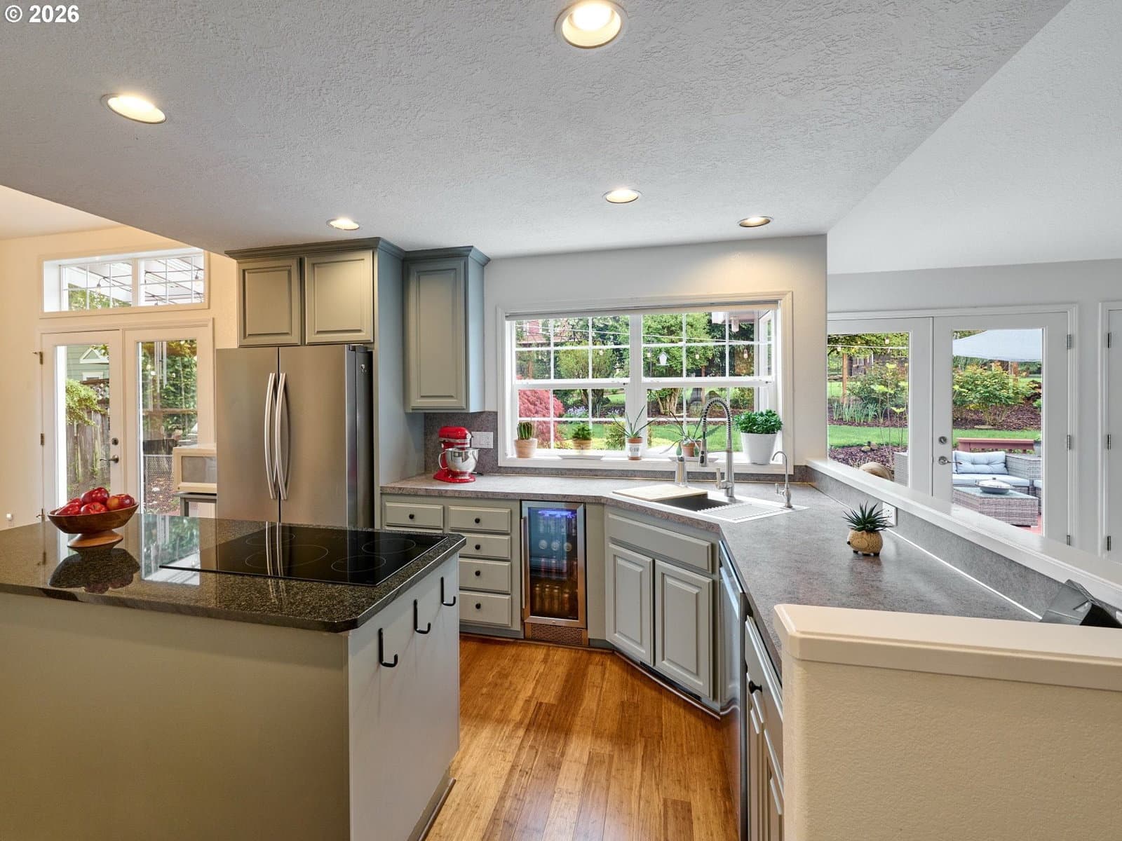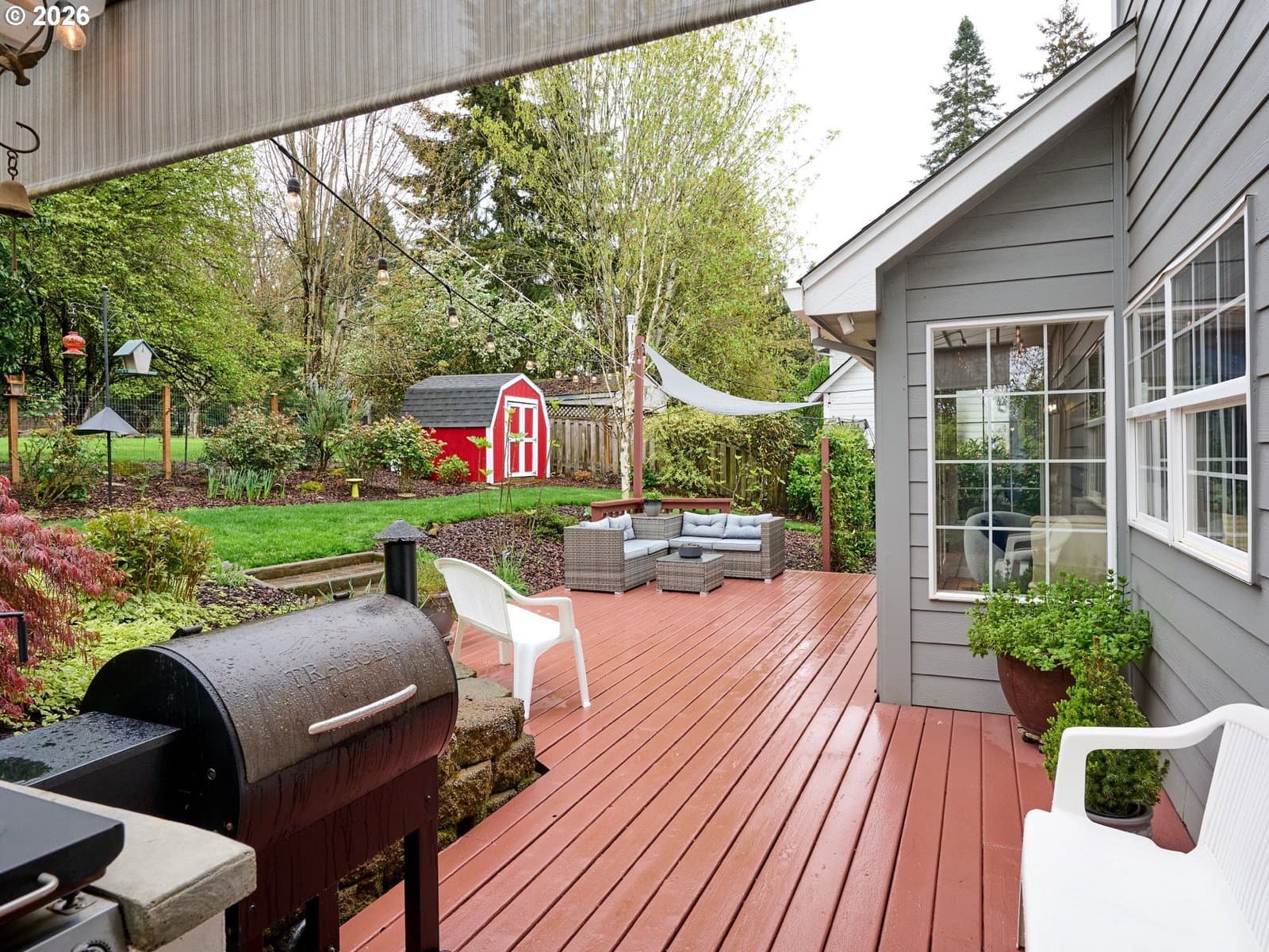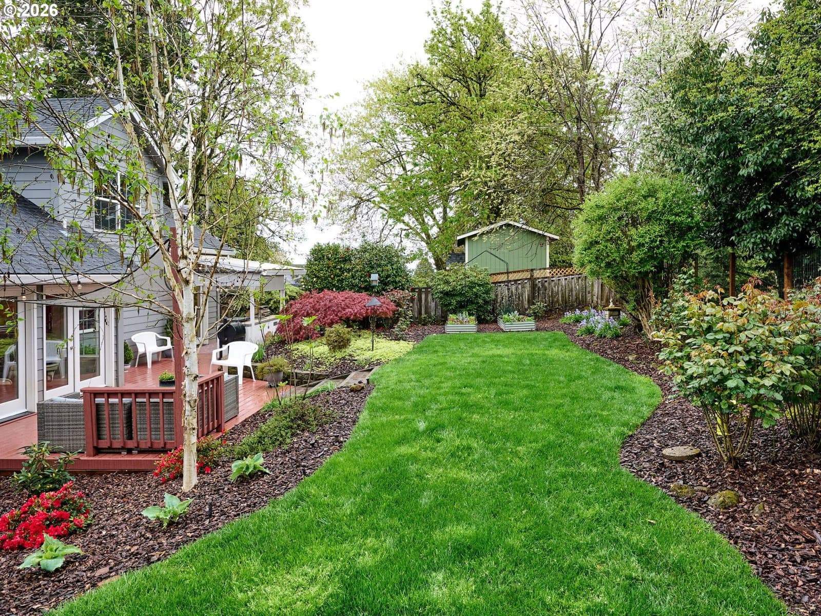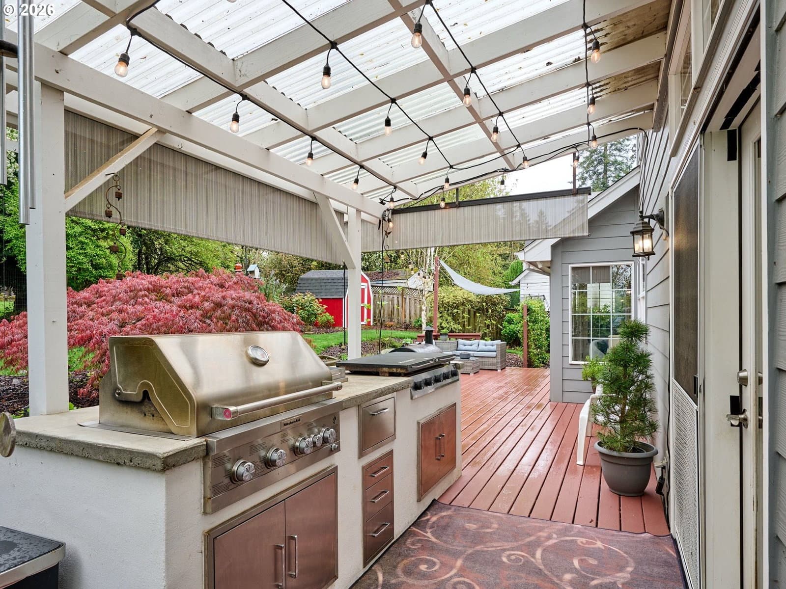Located on quiet Silverton cul-de-sac, this stately 2-story, 3 bed, 2½ bath home rests on gently sloping .20-acre lot w/ lovely views & has a great layout for easy living. The main level features a primary suite w/ jetted soaking tub & tile surround, walk-in shower, double sinks & a spacious walk-in closet. New highly-durable Fossilized® Cali bamboo flooring flows through the kitchen, living room, dining room, ½ bath & laundry room, creating a cohesive feel throughout. A gas fireplace anchors the living room, where French doors open to the backyard, filling the space w/ natural light & extending the living area in a strong indoor-outdoor connection. The kitchen’s cooking island w/ new glass cooktop, double ovens, stainless steel appliances, water purifier, wine cooler & walk-in pantry support both daily routines & entertaining. In addition to the formal dining room, a breakfast nook & built-in desk/work station sit just off the kitchen, w/ additional French doors leading outside, further connecting the home to the fully-fenced backyard & beautiful garden surroundings. As the weather warms, life naturally expands to the covered outdoor kitchen, where a grill, griddle, burner & gas hookup make outdoor cooking & gathering a breeze. Raised garden beds, arched trellis & two fig trees provide fresh seasonal produce at your doorstep, while established landscaping adds color, sweet fragrance & privacy. Upstairs, 2 more large bedrooms w/ big closets & a second full bath provide flexible space for guests, work or additional living needs. Other great aspects are the high ceilings throughout, fast internet, central air, forced air heating & double-pane vinyl windows. The 2-car garage is EV-ready & includes a large storage loft & air compressor. The property also offers a nice covered front porch, in-ground sprinkler system & tool shed. No HOA. A clean, well-designed home where daily life flows easily & outdoor spaces are just as enjoyable as what's inside.