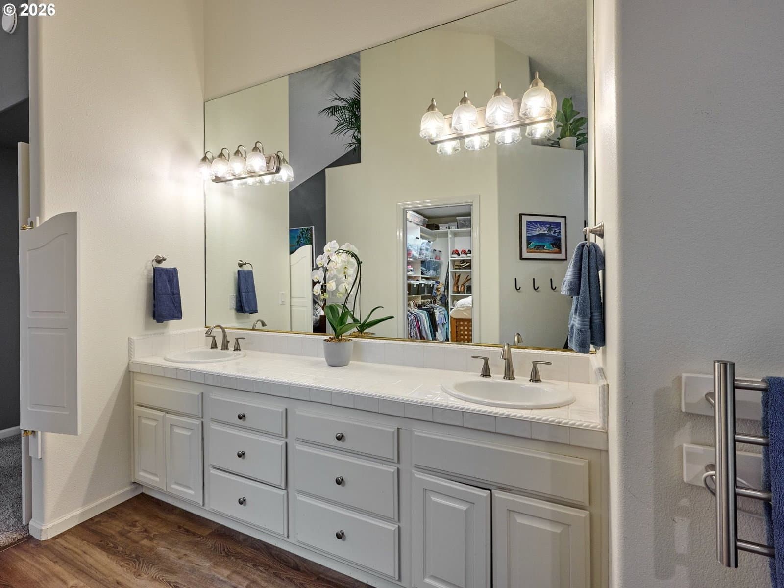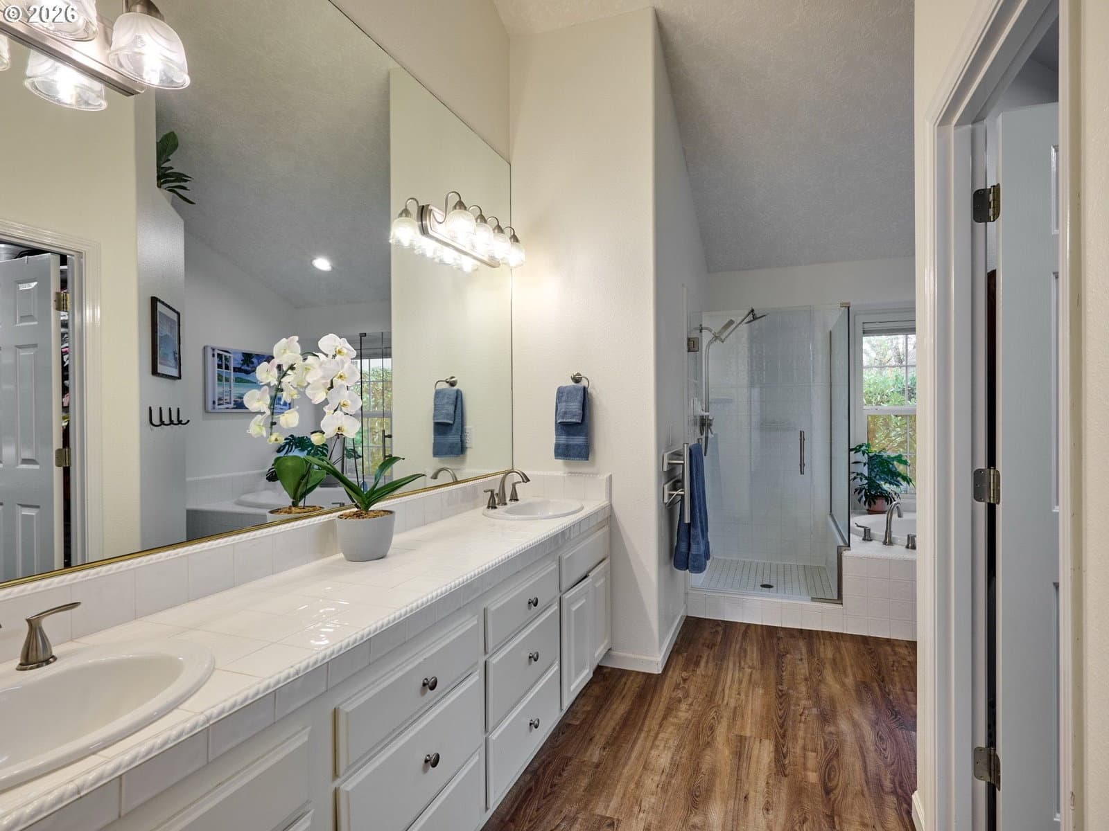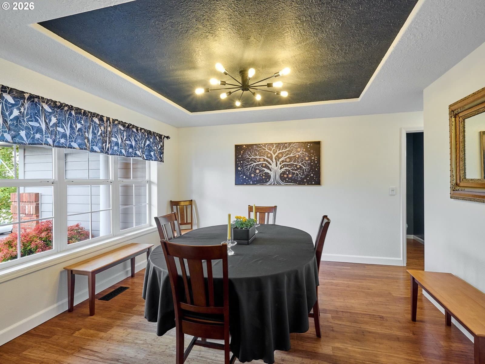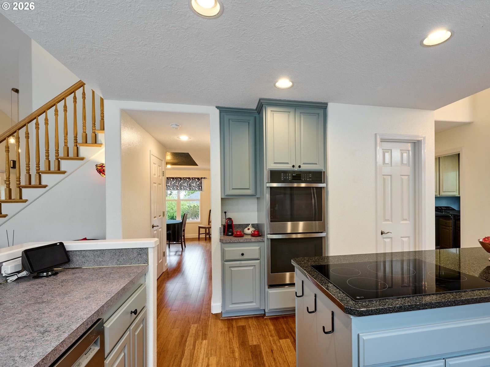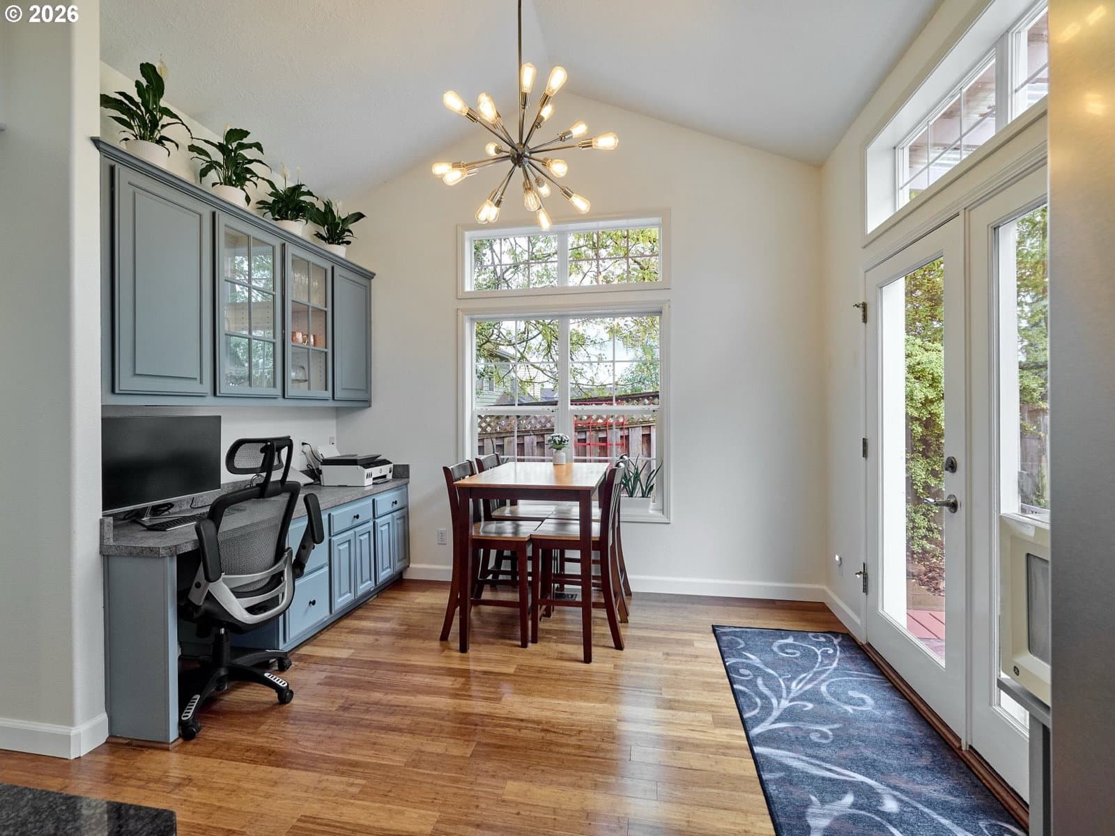 Located on quiet Silverton cul-de-sac, this stately 2-story, 3 bed, 2½ bath home rests on gently sloping .20-acre lot w/ lovely views & has a great layout for easy living. The main level features a primary suite w/ jetted soaking tub & tile surround, walk-in shower, double sinks & a spacious walk-in closet. New highly-durable Fossilized® Cali bamboo flooring flows through the kitchen, living room, dining room, ½ bath & laundry room, creating a cohesive feel throughout. A gas fireplace anchors the living room, where French doors open to the backyard, filling the space w/ natural light & extending the living area in a strong indoor-outdoor connection. The kitchen’s cooking island w/ new glass cooktop, double ovens, stainless steel appliances, water purifier, wine cooler & walk-in pantry support both daily routines & entertaining. In addition to the formal dining room, a breakfast nook & built-in desk/work station sit just off the kitchen, w/ additional French doors leading outside, further connecting the home to the fully-fenced backyard & beautiful garden surroundings. As the weather warms, life naturally expands to the covered outdoor kitchen, where a grill, griddle, burner & gas hookup make outdoor cooking & gathering a breeze. Raised garden beds, arched trellis & two fig trees provide fresh seasonal produce at your doorstep, while established landscaping adds color, sweet fragrance & privacy. Upstairs, 2 more large bedrooms w/ big closets & a second full bath provide flexible space for guests, work or additional living needs. Other great aspects are the high ceilings throughout, fast internet, central air, forced air heating & double-pane vinyl windows. The 2-car garage is EV-ready & includes a large storage loft & air compressor. The property also offers a nice covered front porch, in-ground sprinkler system & tool shed. No HOA. A clean, well-designed home where daily life flows easily & outdoor spaces are just as enjoyable as what's inside.