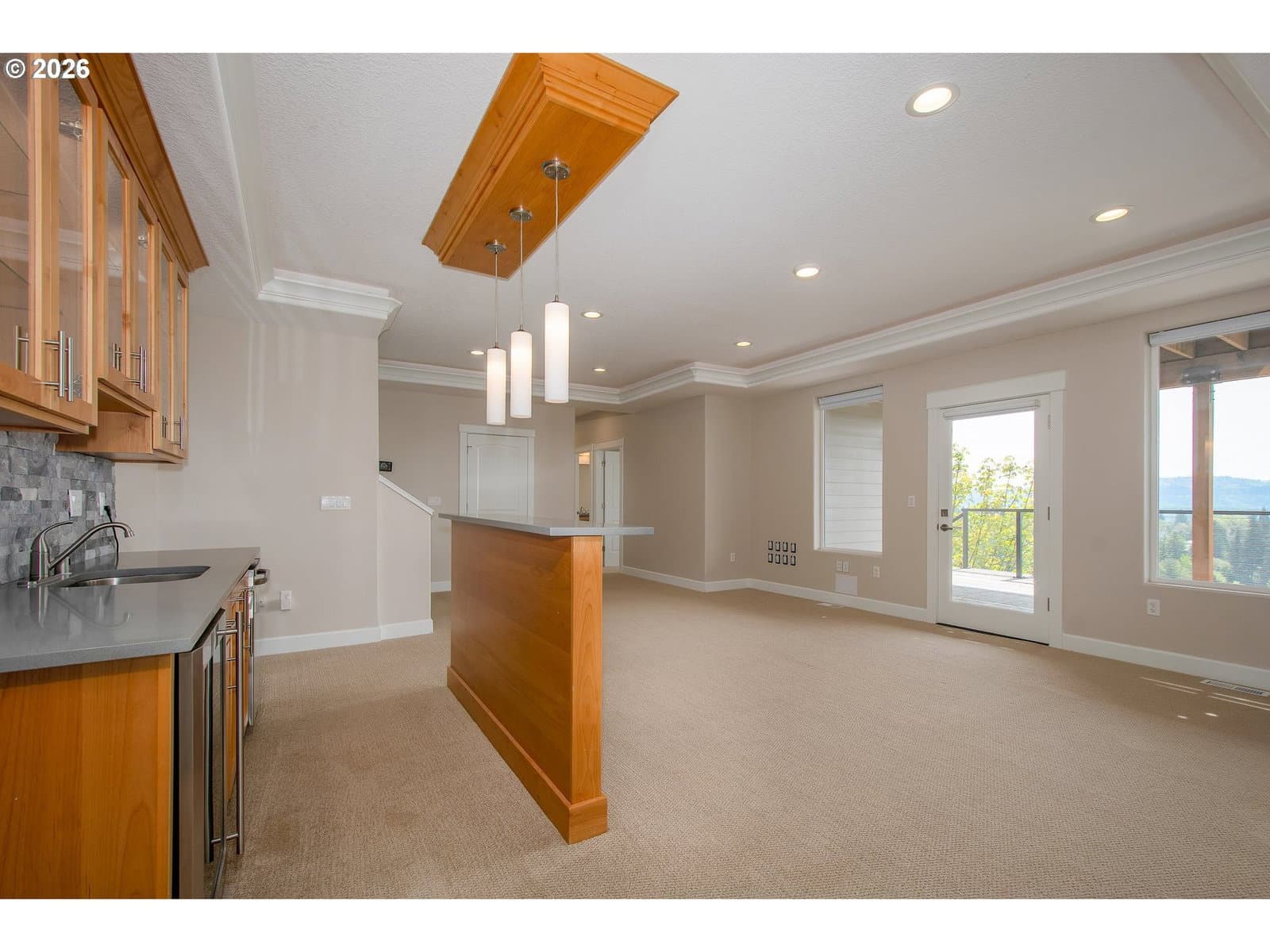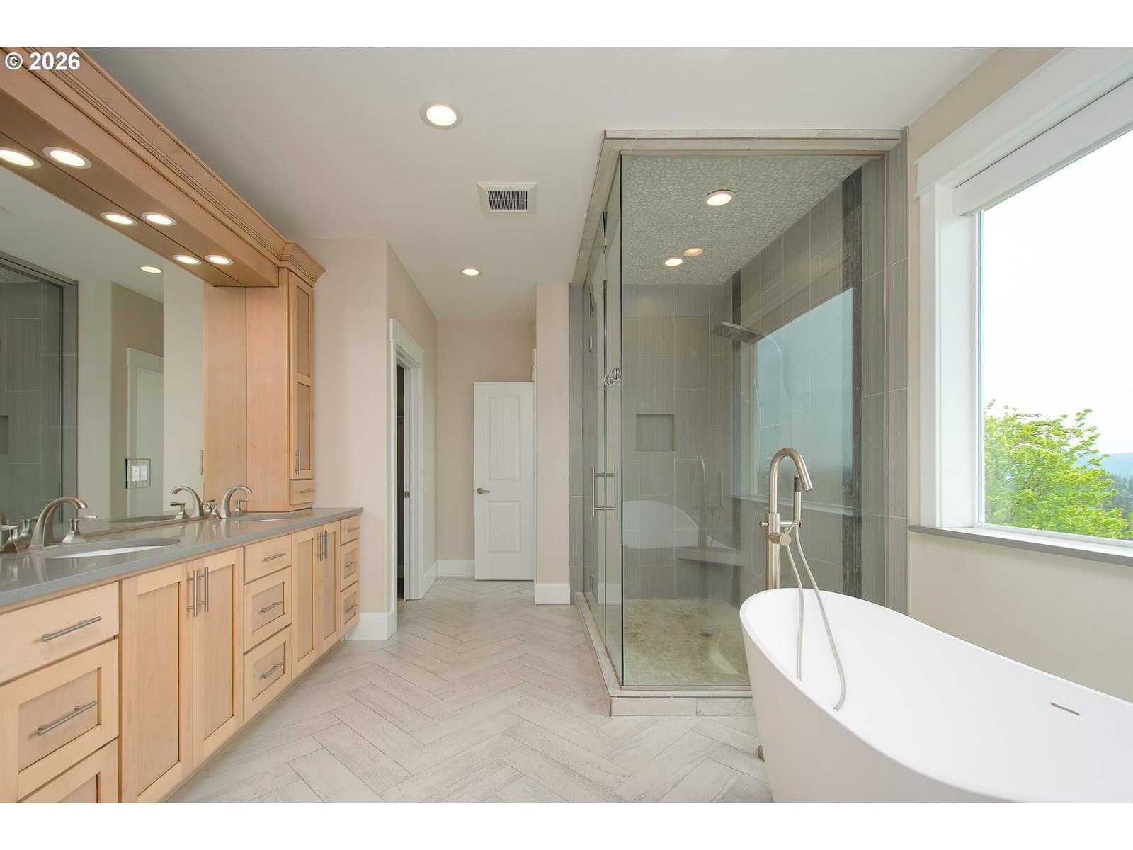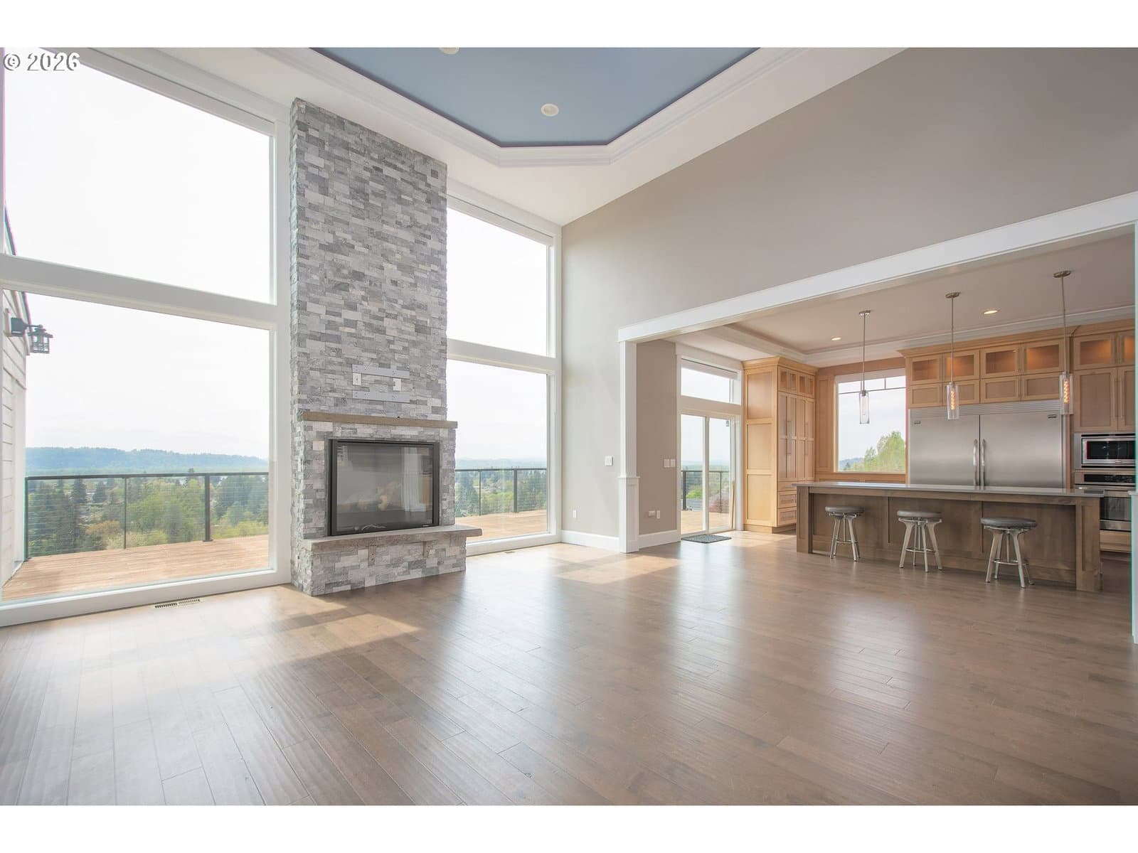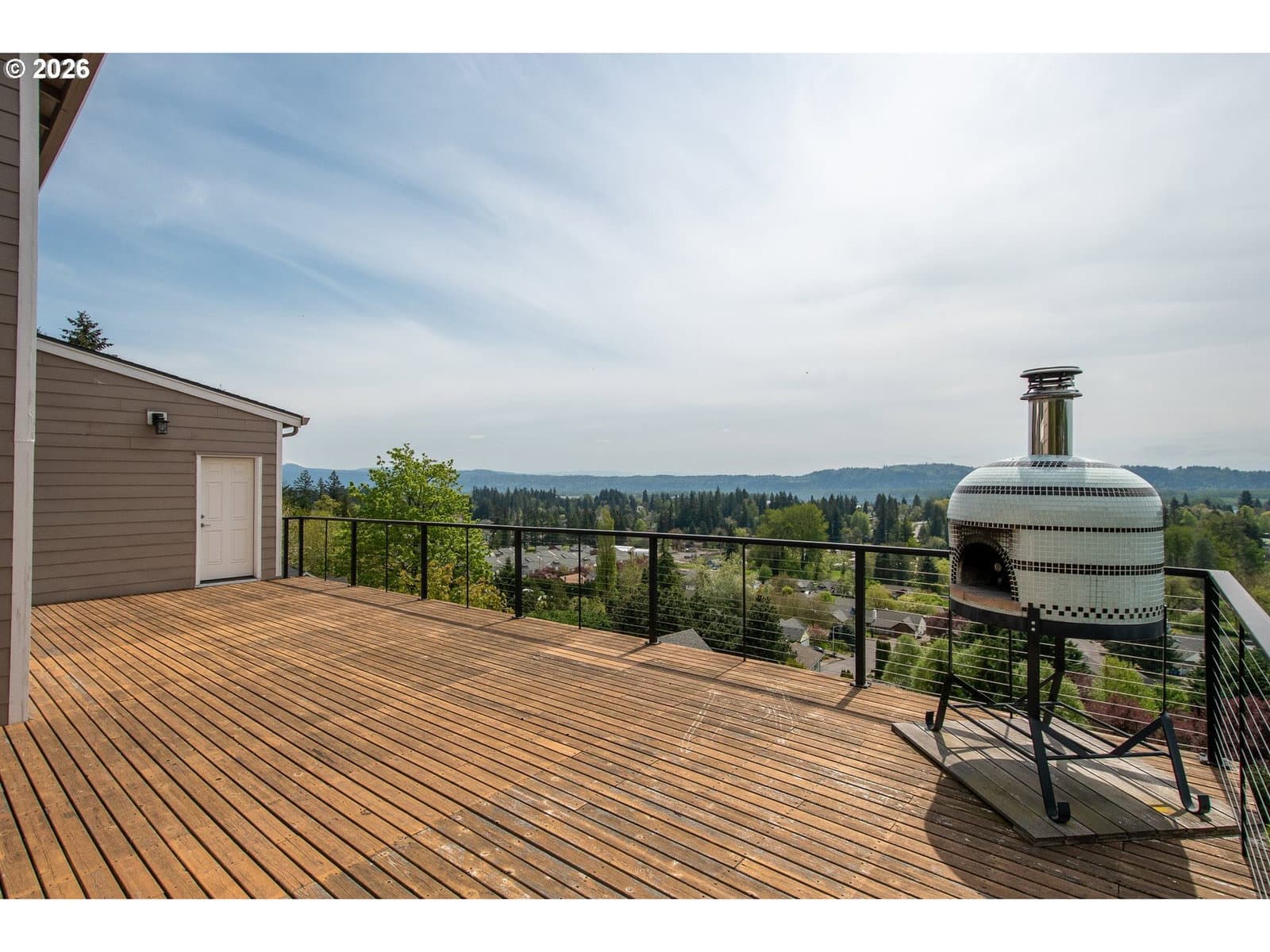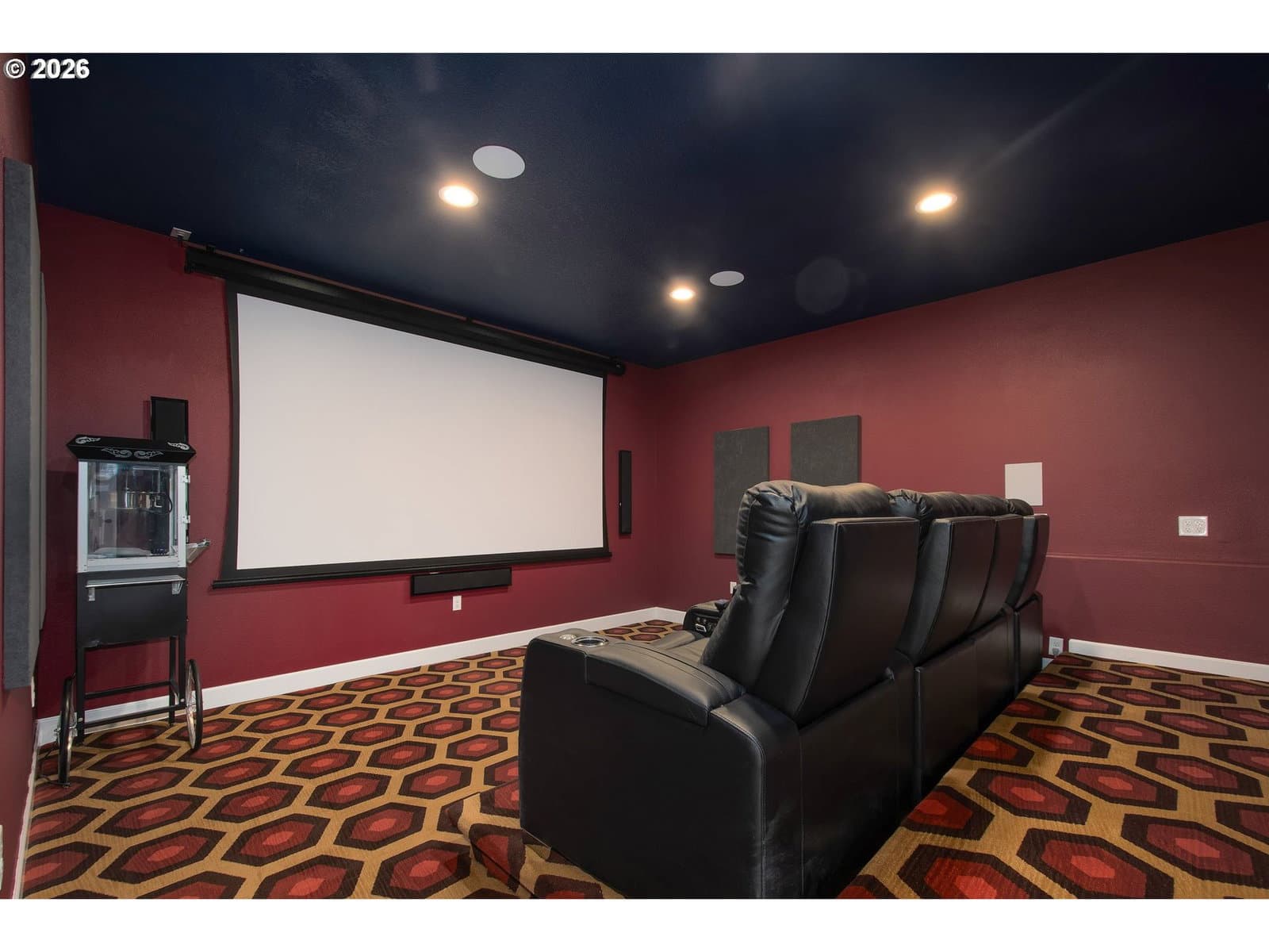 Stunning custom contemporary home perched atop the hill will with dramatic sweeping mountain, river and city views! Sprawling great room with floor to ceiling window and stone gas fireplace. Master on main, with steam shower, heated tile floors and free standing stone tub. Chefs dream kitchen, solid wood, cabinets, quarts, soft close. Wet bar and private theater with stadium seating downstair. High efficiency touches throughtout. Close to food, shopping Spectacular view of Columbia River and Mt. Hood Fully equipped theather Bonus room for gym