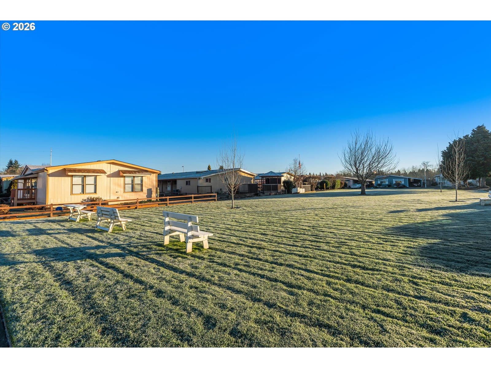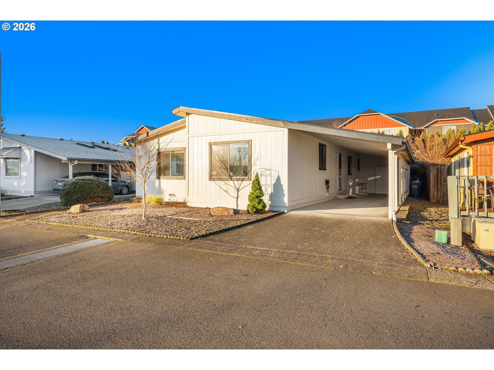 With a gorgeous park view from the front window, this well-maintained 3-bedroom, 2-bath home in the Meadows Verde 55+ community offers 1,422 square feet of thoughtfully updated living space. Recent 2023 updates include a new roof, new flooring, new carpet, and fresh paint, giving the home a clean, modern feel. The open, light-filled floor plan enhances everyday living and entertaining. The kitchen and laundry area feature newer appliances, with the washer and dryer included. The primary suite offers a new Kohler walk-in bathtub for added comfort and ADA accessibility. An oversized carport provides covered parking along with a lockable storage area. The home sits on a premium lot overlooking the park, offering beautiful views and a peaceful setting, making it a standout opportunity within the community. **Come tour this beautiful home at our Open House Saturday 1/24 from 12-2pm!**