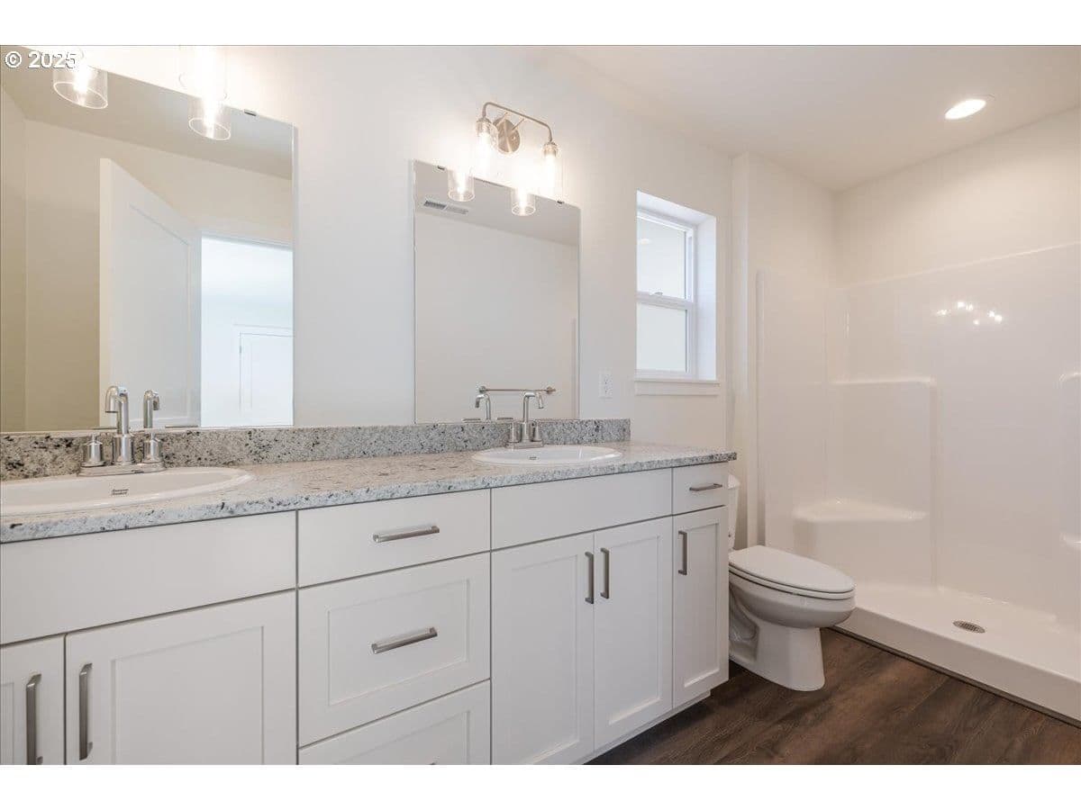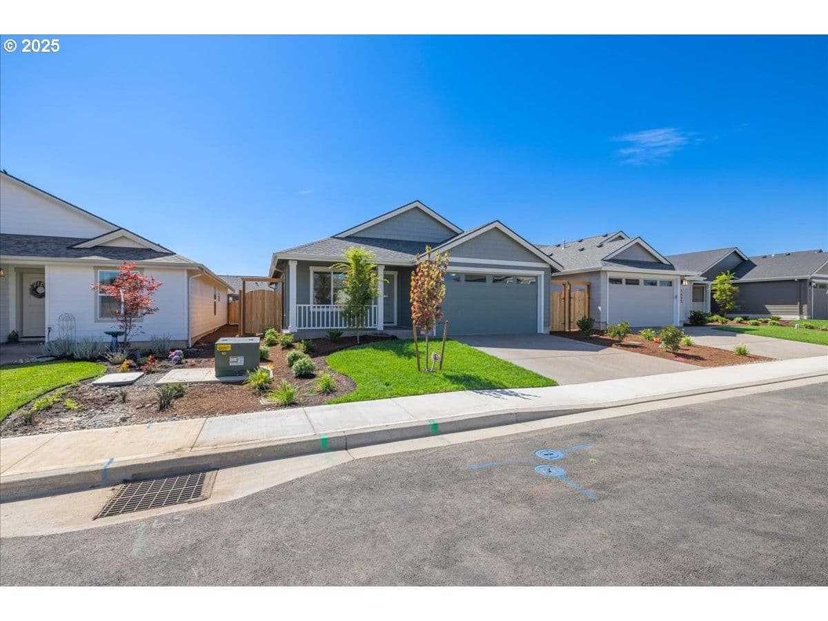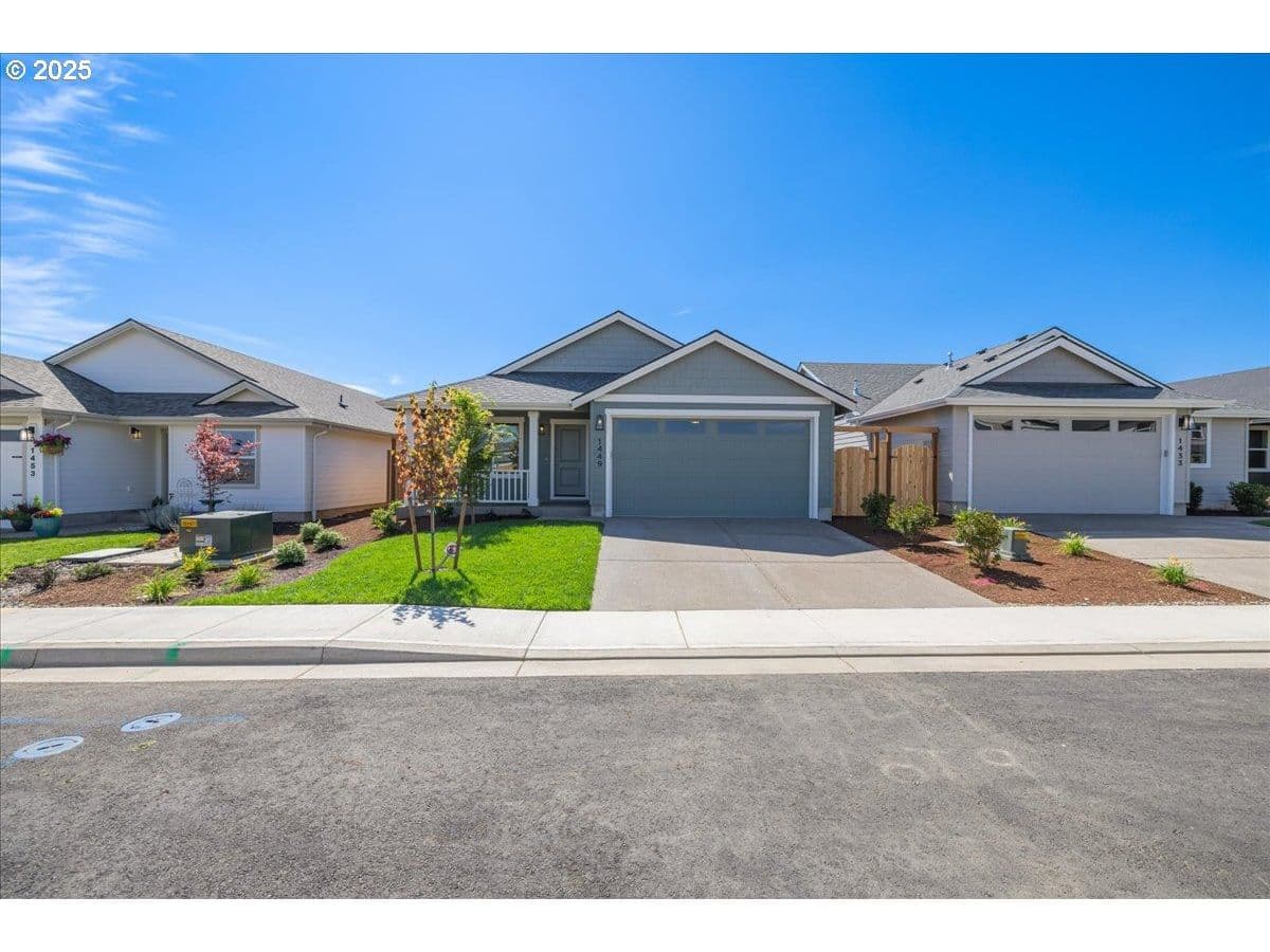 This 1,306 sq. ft. single-level 3-bed, 2-bath home offers a vaulted great room and dining area, island kitchen with shaker cabinets, granite counters, LVP flooring, SS gas range, and corner pantry. Pass-through to great room adds convenience. Primary suite features double vanity, walk-in closet, and extra closet. Fenced & landscaped backyard, A/C included. LA related to seller. Completed construction.