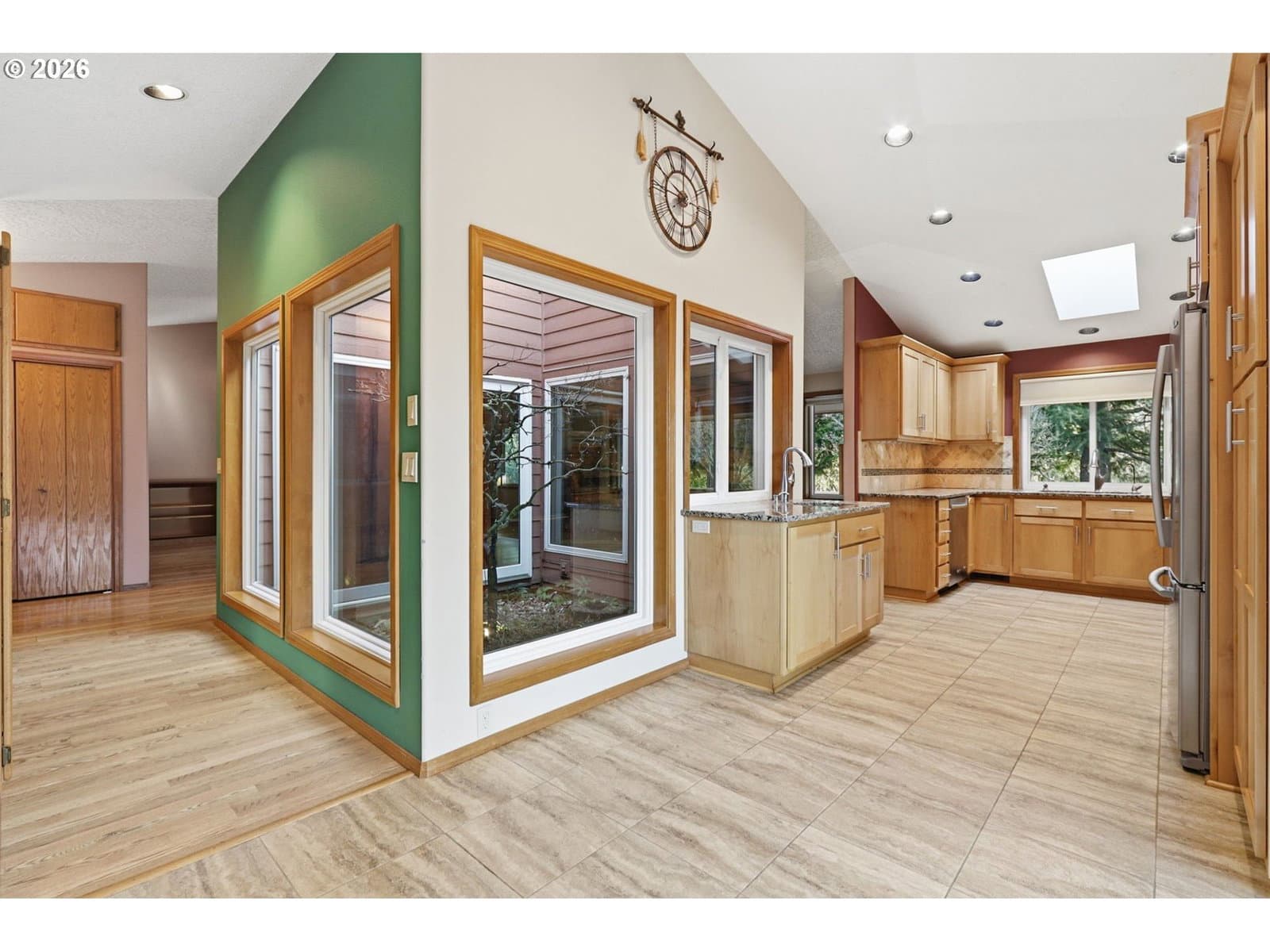 Single level living, Located in a quiet cul-de-sac, this beautiful 3-bedroom, 2-bathroom home offers over 2,000 square feet of spacious, light-filled living in the heart of Washougal. The moment you step inside, you are greeted by soaring vaulted ceilings and an expansive open-concept layout that flows seamlessly from the formal living and dining areas into the heart of the home. A unique Atrium is a show-stopper! The updated chef’s kitchen features a functional cook island and a casual eating nook with slider access to the deck, making it the perfect setup for indoor-outdoor entertaining. Relax by the wood-burning fireplace or retreat to the oversized primary suite, complete with a private bath with a zero step walk in glass shower, and generous walk-in closet. The Primary bedroom also features a slider leading to the large deck, a sanctuary to unwind and enjoy nature. Wander through the yard through your own private access gate to walking trails.The exterior is just as impressive as the interior, situated on a rare quarter-acre lot that backs up to a peaceful greenbelt. The covered back deck is an entertainer's dream, offering a year-round space to enjoy views of the surrounding park-like setting and peek-a-boo mountain vistas. With a low-maintenance yard, and an oversized 2-car garage, there is plenty of room for all your PNW gear. Second sun deck located on the front of the home. This house has so many unique touches! Located just minutes from the Washougal River, local parks, and the Gateway to the Gorge, this home combines the serenity of a private retreat with easy access to Highway 14 and downtown amenities. Don't miss your chance to own in this sought-after neighborhood—schedule your showing today!