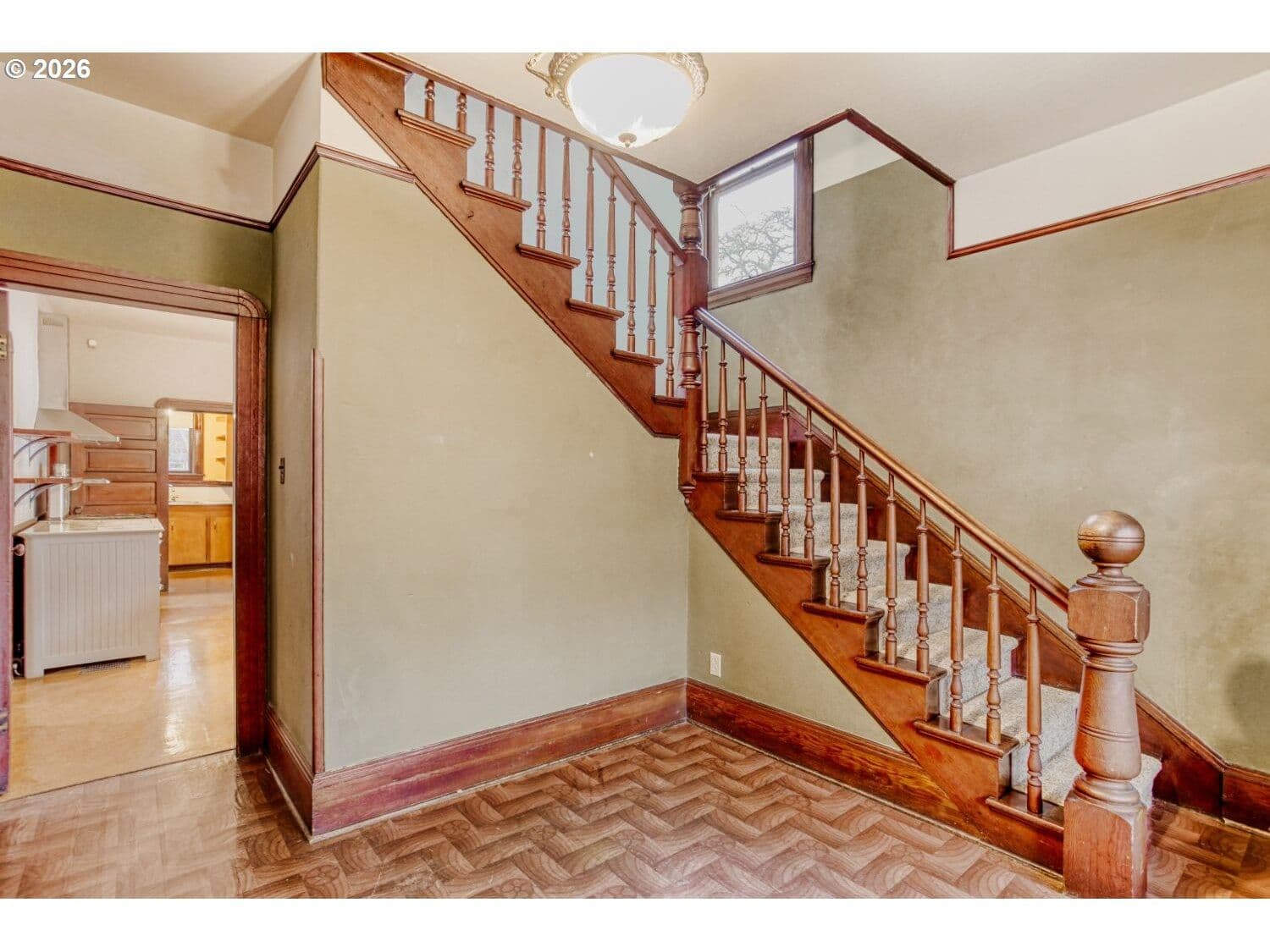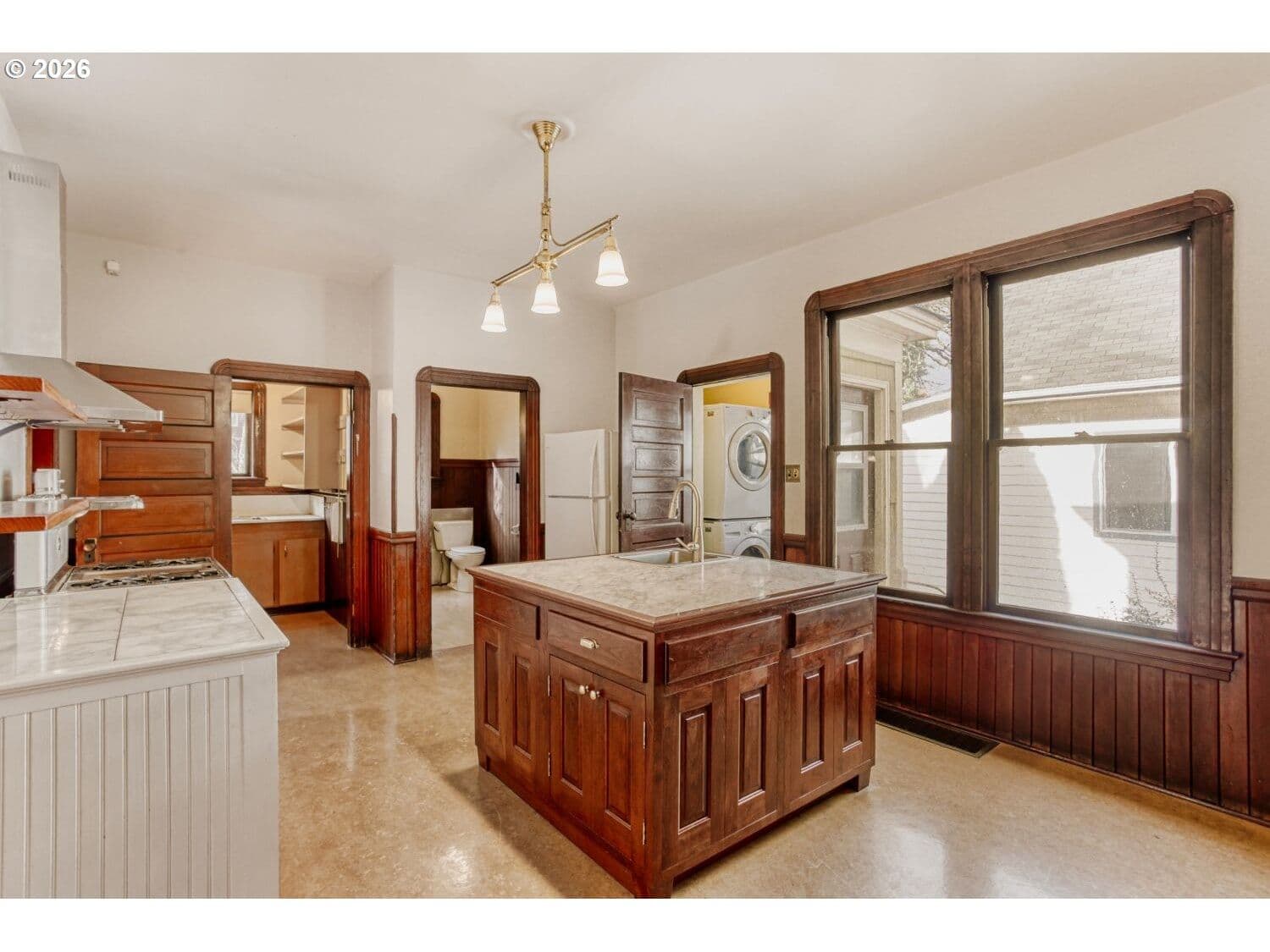 Ahoy there! Who wants to be the next captain of an 1908 boarding house which housed ship builders from Swan Island? There are four large bedrooms upstairs, including a double room primary suite! On the main floor are three large living rooms plus the oversized kitchen and walk-in pantry, likely used to feed all those hungry workers over a century ago. And so many of the original details remain, like the tall pocket doors, dark varnished wood, and even the buzzer system up to each of the bedrooms. Original hardwoods grace many of the rooms, with marmoleum and vintage vinyl flooring overlays. The basement has a few more rooms, including a potential theater dark room and a second laundry area. And there is a large unfinished attic, perhaps for future expansion on a 4th floor? The back yard has raised garden beds to keep your bulbs dry, and a brick patio for yard furniture. The long driveway can hold three cars, plus maybe a rowboat? The King neighborhood is a walking and biking paradise - Walk Score=95, Bike Score=100. MLK is just one block to the east, providing easy access to the trade routes around you! And if you are seeking to avoid the King’s taxes, check out these low property taxes! Most of the mechanical systems have been upgraded during the current owners 25 year history: new roof in 2021, UST decommissioning and new 96% furnace and a/c in 2006, plus newer electric panel and plumbing upgrades. Come check it out this weekend! [Home Energy Score = 1. HES Report at https://rpt.greenbuildingregistry.com/hes/OR10244838]