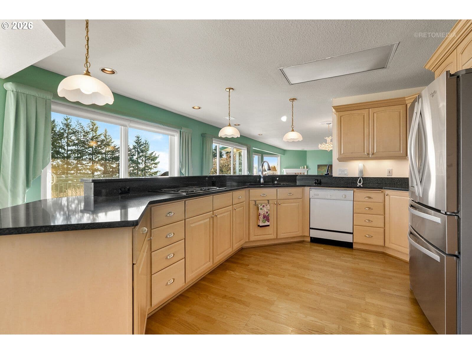 Custom built to take advantage of every view. 2700 SF of main level living with an additional 1191 SF of unfinished daylight basement that is rough plumbed for a bathroom and bar sink. Gorgeous mountains and valley open to morning sunrises. Huge Primary on the main floor with walk in shower, soaking tub, large vanity and walk in closet. 3 additional flexible rooms for family, guests or office. Updates include: new roof 2020, garage door opener, kitchen quartz counters, exterior paint. Super efficient geo thermal heating system, 100 gallon propane tank behind garage, wired 220 at gazebo area, 1191 SF of unfinished daylight basement rough plumbed for bathroom and bar sink and adds extra square footage instantly. Please request architectural renderings. 3 car garage has handy sink, LA water for quality inexpensive water. 2006 septic tank replaced. 2014 updated cooktop and refrigerator.