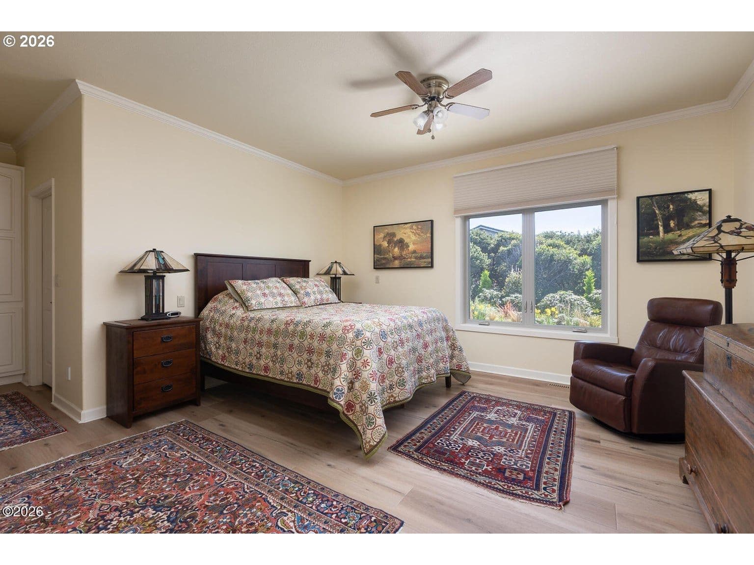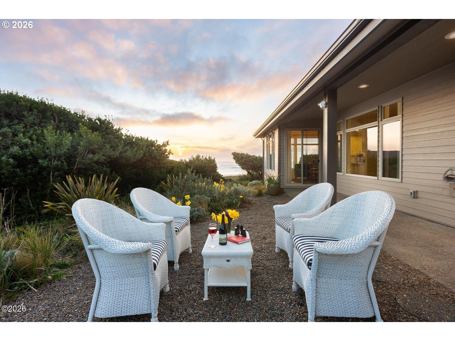 Expansive Pacific Ocean horizon views from a desirable, set-back position, elevated craftsmanship, and over $350,000 in recent improvements define this exceptional one-level residence in the gated Sandpiper Shores community. Originally crafted and masterfully renovated in 2023 by renowned CP Carlson Builders, the home is a showcase of refined coastal design and enduring quality. Thoughtfully designed for effortless living, the residence captures dramatic sunsets and seasonal storm views while offering seamless access to deeded beach entry and the private Hidden Lake park and trail system. Spanning approximately 1,989 square feet, the home features two bedrooms, a dedicated office, and light-filled interiors that frame the ocean horizon. The gourmet kitchen is appointed with quartz countertops, a JennAir cooktop, and a KitchenAid combination microwave and oven—blending everyday functionality with elevated style. Extensive exterior enhancements—including a cement tile roof, Hardie cement siding, new house wrap, gutters, Milgard windows and doors, a Wayne Dalton fiberglass garage door, and a mahogany entry—create a striking, low-maintenance coastal exterior. Inside, refined finishes include Cortec luxury vinyl plank flooring, fresh interior paint, updated LED lighting, and beautifully renovated kitchen and baths with quartz surfaces. A redesigned fireplace anchors the living room, adding warmth and architectural presence. A Mitsubishi ducted heat pump system (2022) ensures year-round comfort. With private gated access, maintained grounds, Hidden Lake trails, and close proximity to the beach, this home offers a rare opportunity to experience luxury coastal living on the Oregon Coast.