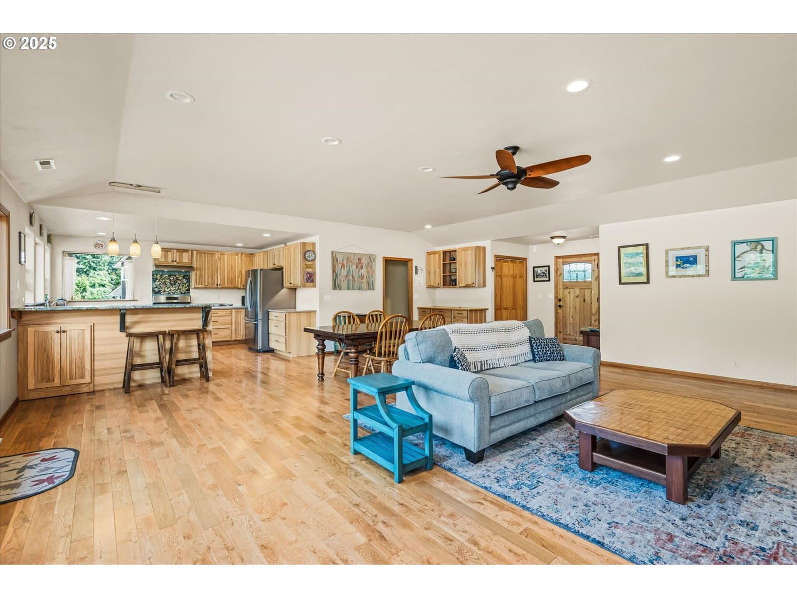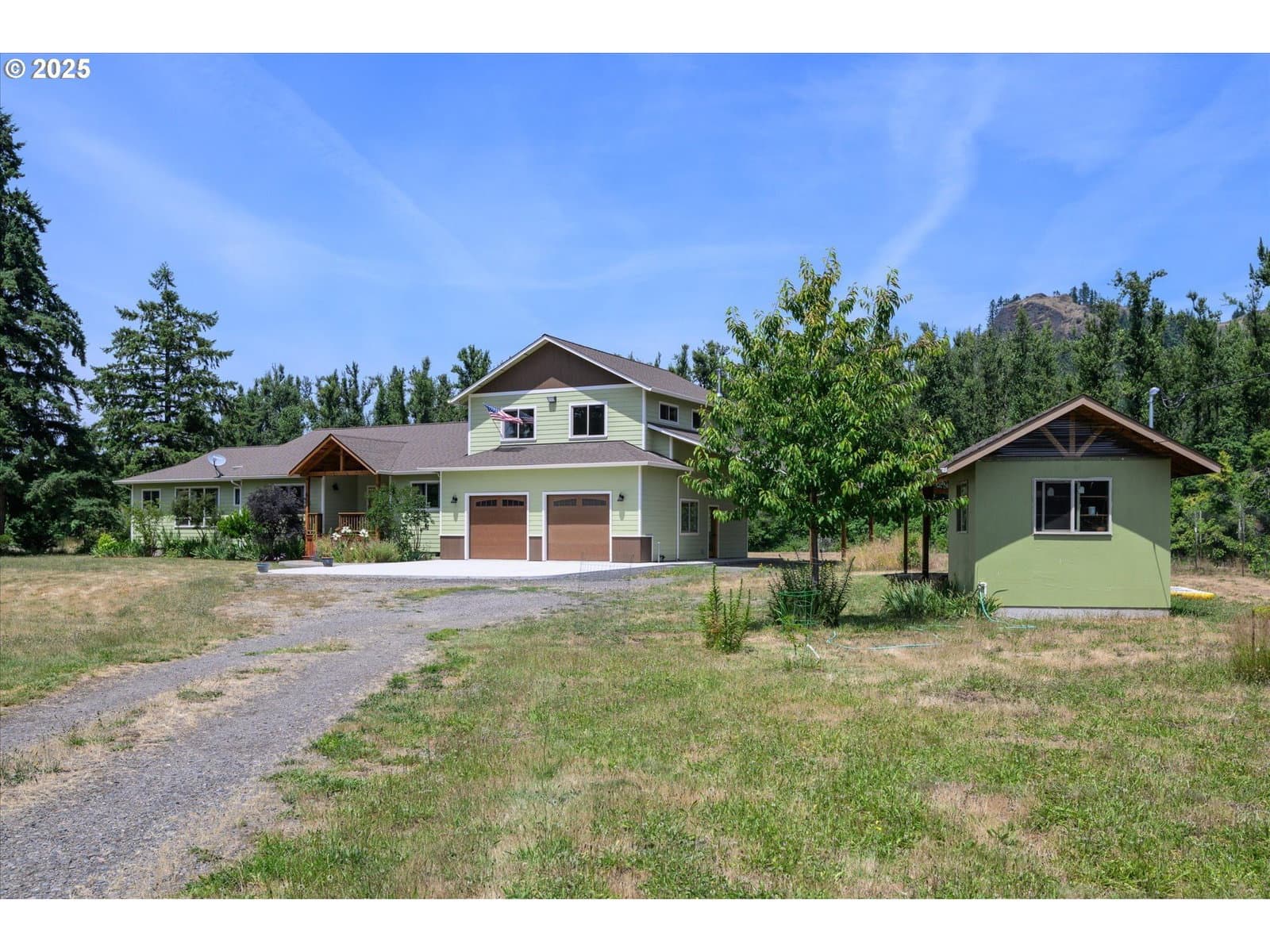 New Price Improvement! Now aligned with a recent independent appraisal. This captivating riverfront retreat offers privacy, comfort, and rare access to the river on 3.31 private acres. With 3,087 sq. ft. of custom design and craftsmanship, this home features 4 bedrooms, 3.5 baths, and stunning, ever-changing views from nearly every room. Sunlight fills the inviting sunroom and open great room, creating a warm, seamless space for everyday living or memorable gatherings. The serene primary suite includes a private office and slider to a covered deck, where river breezes and gentle water sounds set a peaceful tone. Upstairs, a spacious 780 sq. ft. suite offers exceptional flexibility—ideal as a second primary, guest quarters, home office, or multi-generational living space—with a full bath, private balcony overlooking the river and mountains, and both interior and exterior access for added privacy.Enjoy year-round outdoor living on the expansive covered deck or tend to the large fenced garden with raised beds. Additional highlights include an attached carport with RV/boat parking, an oversized garage with built-ins, a covered patio, and a powered shop for hobbies or storage. Sellers do not pay for flood insurance, reflecting the home’s favorable elevation and thoughtful riverfront design. All this in a tranquil setting just 15–20 minutes from downtown Eugene and the University of Oregon—where seclusion meets convenience and every day feels like a retreat. Secure your riverfront paradise today—priced to move!